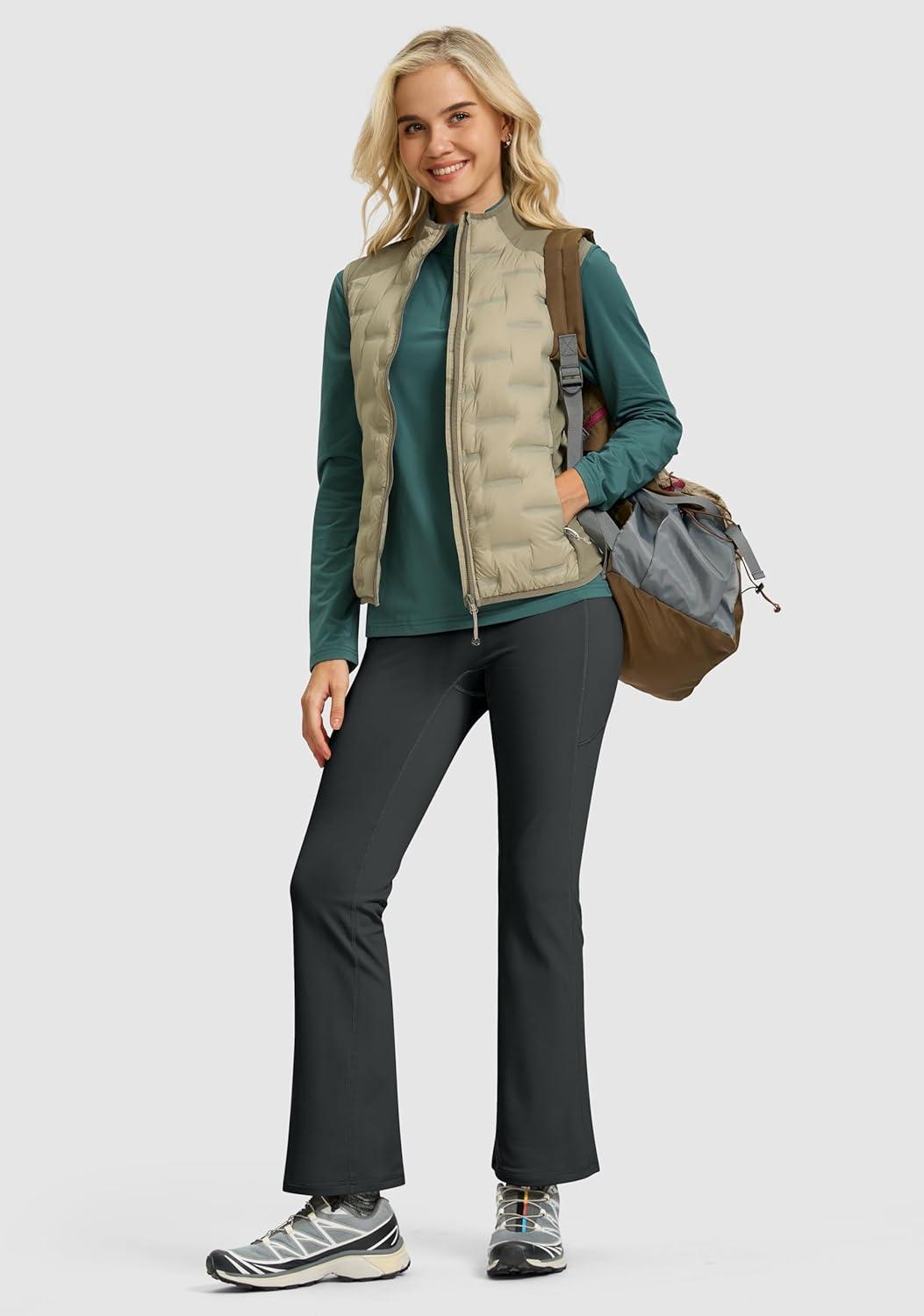 G Gradual Fleece Lined Leggings for Women No Front Seam High Waist Thermal Flare Pants with Pockets for Winter, Hiking, Yoga(Khaki)