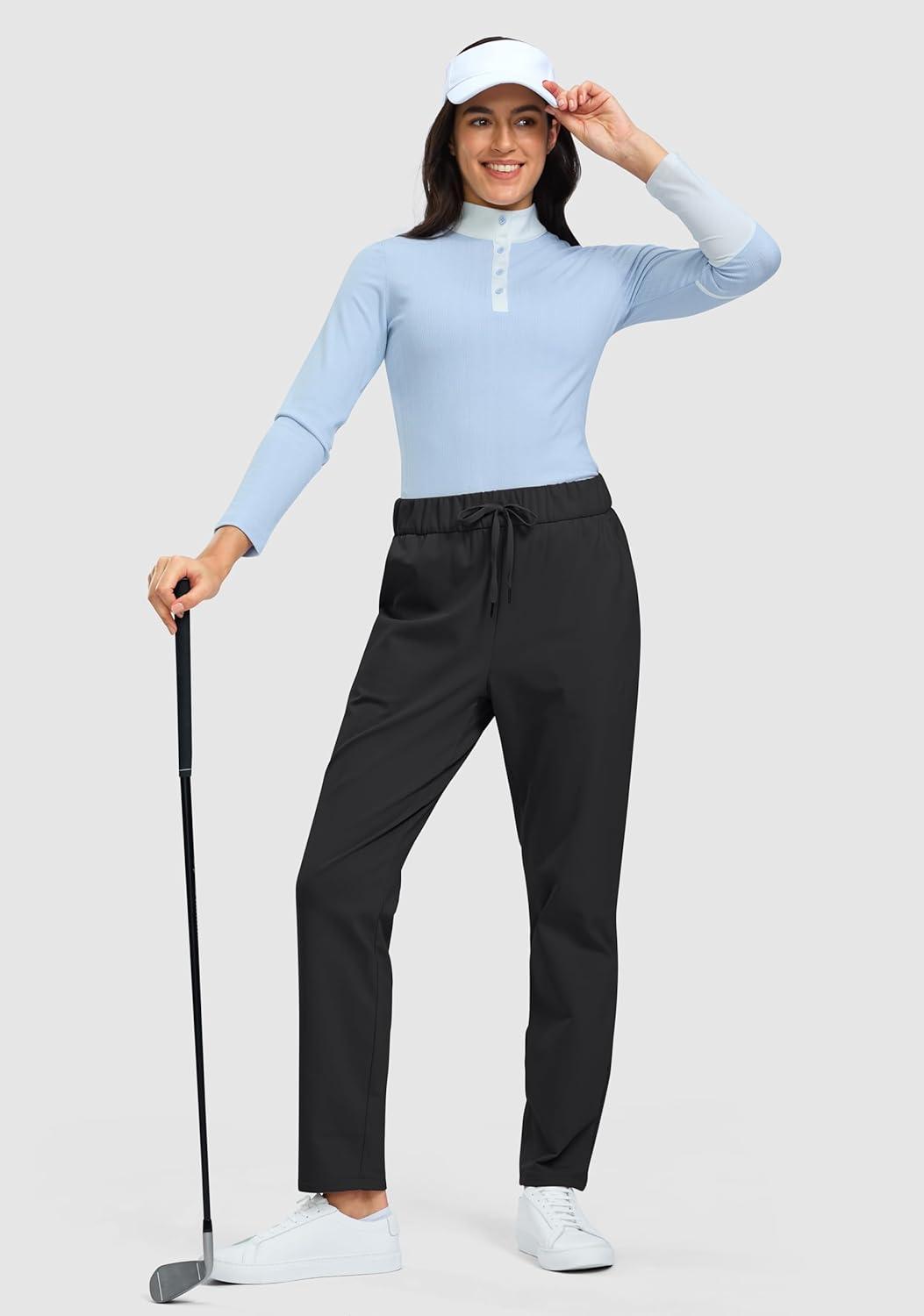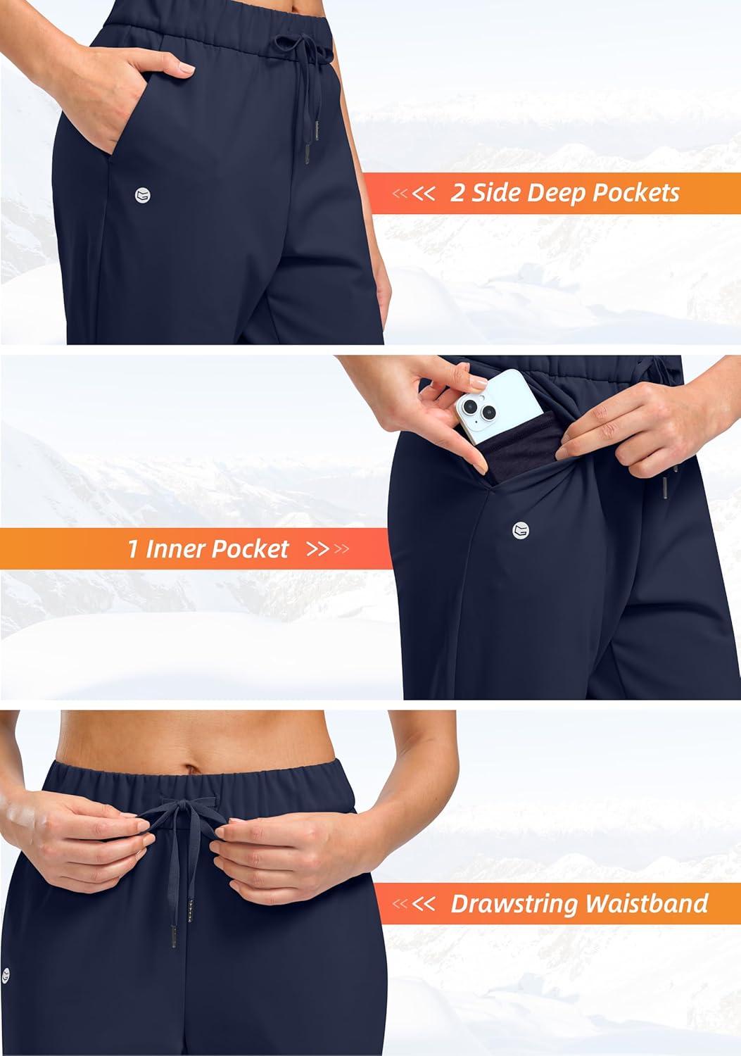 G Gradual Fleece Lined Pants Women 27.5″/29″ Golf Pants 3 Pockets Water Resistant Warm Sweatpants for Cold Weather(Navy)
