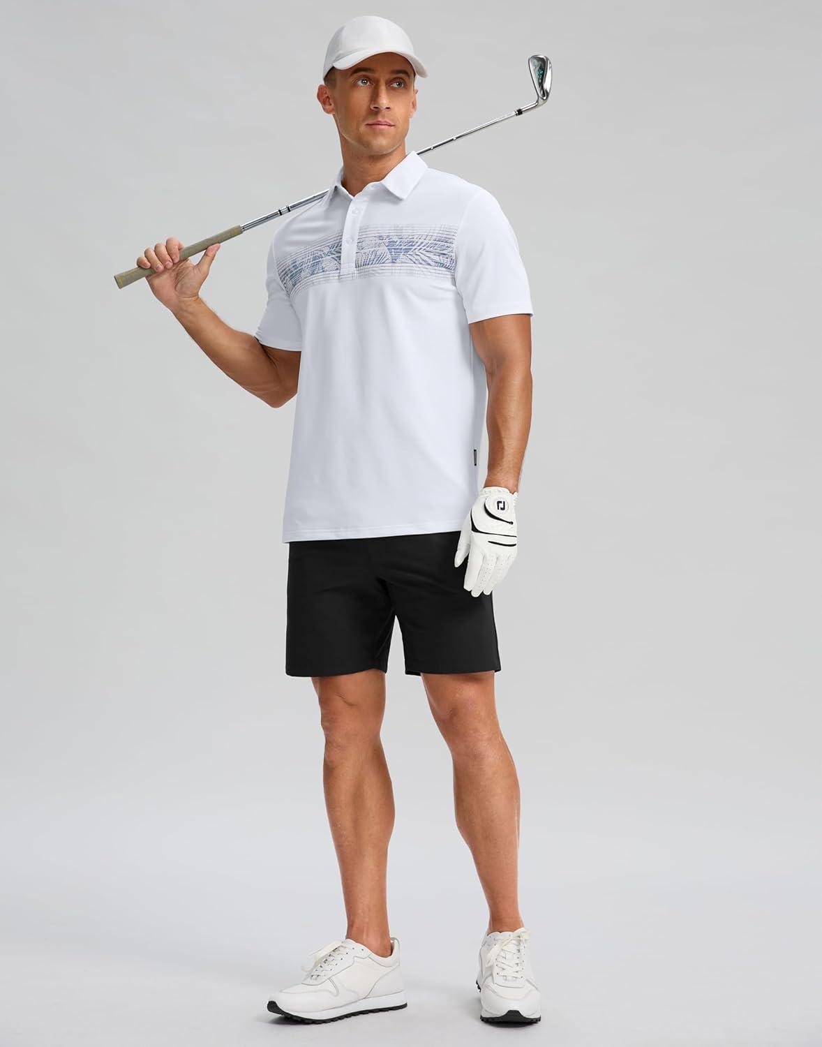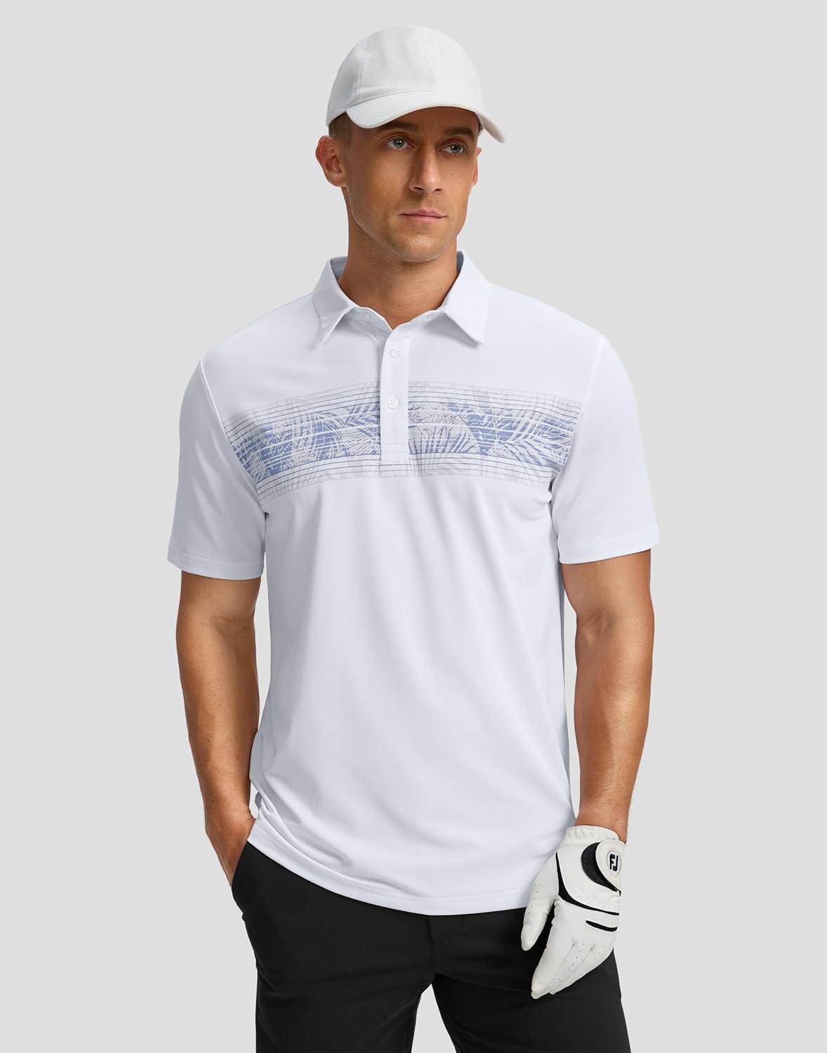 G Gradual Golf Shirts Short Sleeve Quick Dry Performance Moisture Wicking Collared Heather Polo Casual Athletic Business(B-white Leaves)