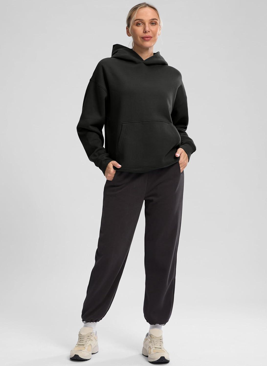 G Gradual Hoodies for Women Oversized Fleece Sweatshirt with Pocket Loose Fit Casual Athletic Workout Pullover(Black)