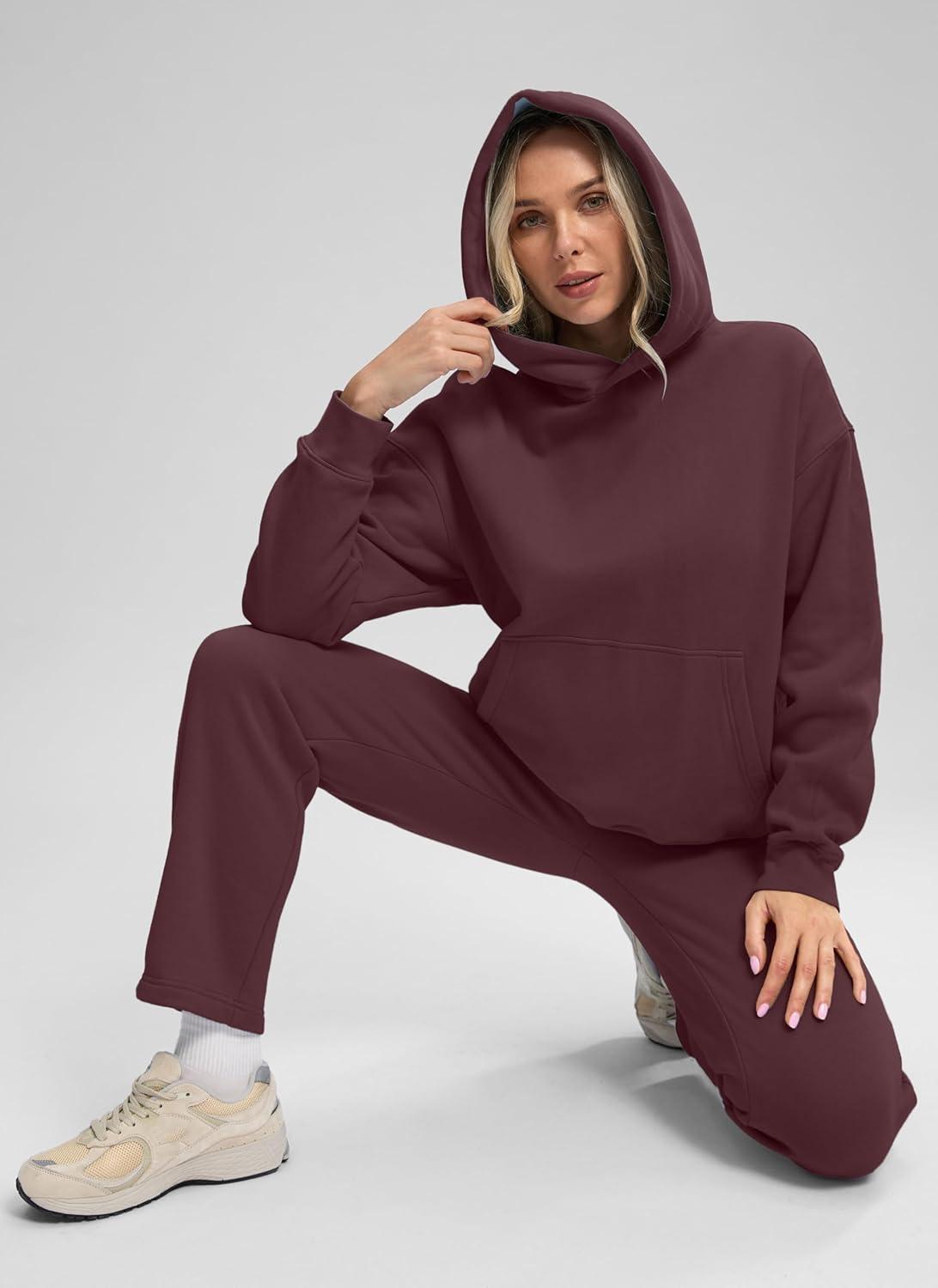 G Gradual Hoodies for Women Oversized Fleece Sweatshirt with Pocket Loose Fit Casual Athletic Workout Pullover(Wine)