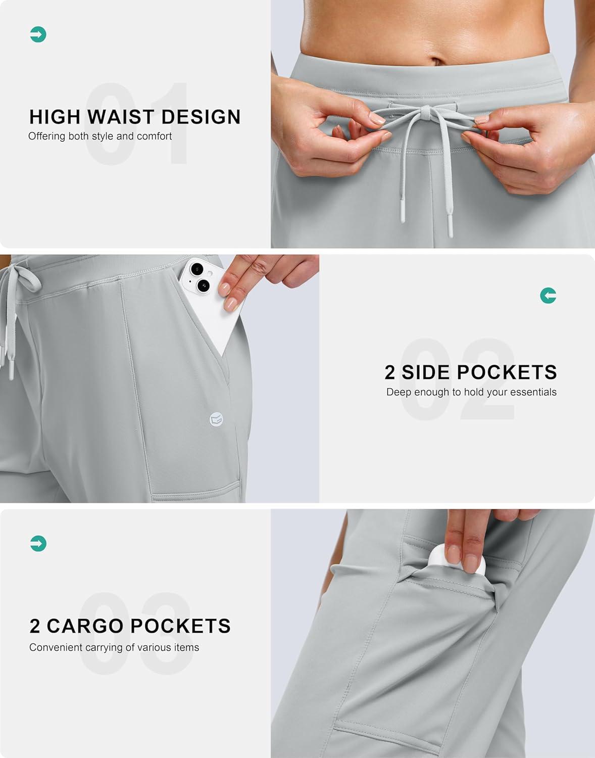 G Gradual Joggers for Women 4 Pockets High Waisted Athletic Jogger Pants Soft Sweatpants for Workout Running Travel(Bright Grey)