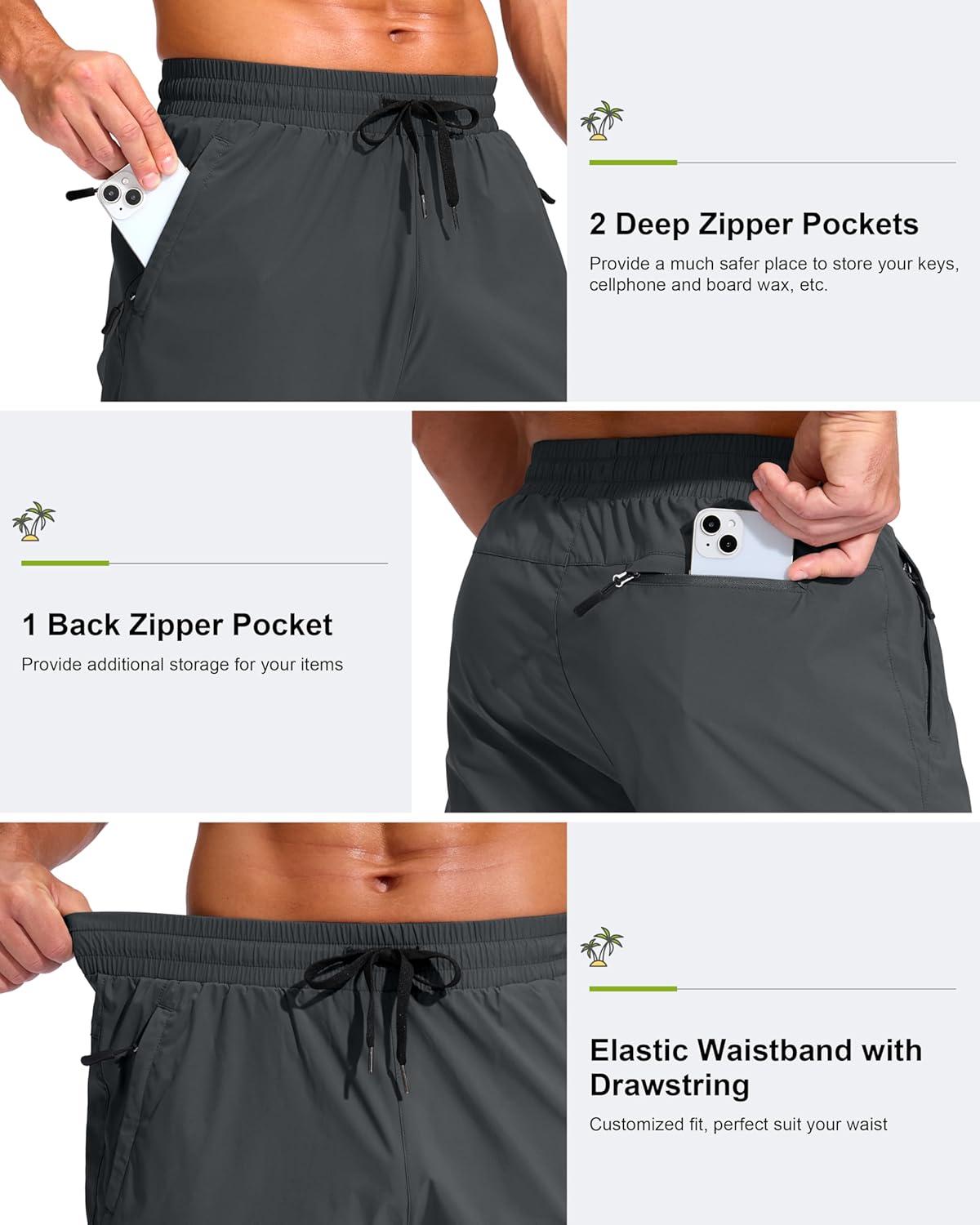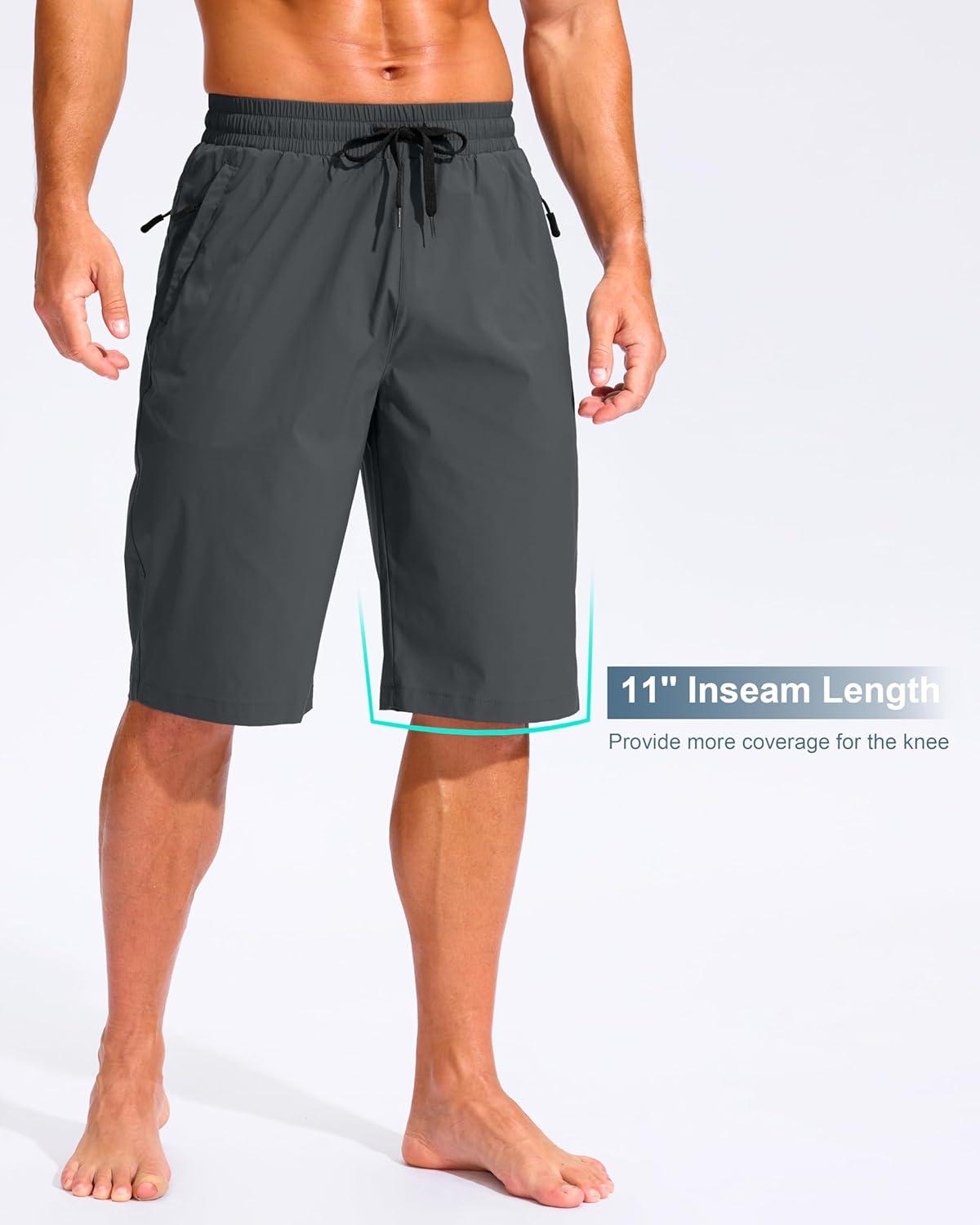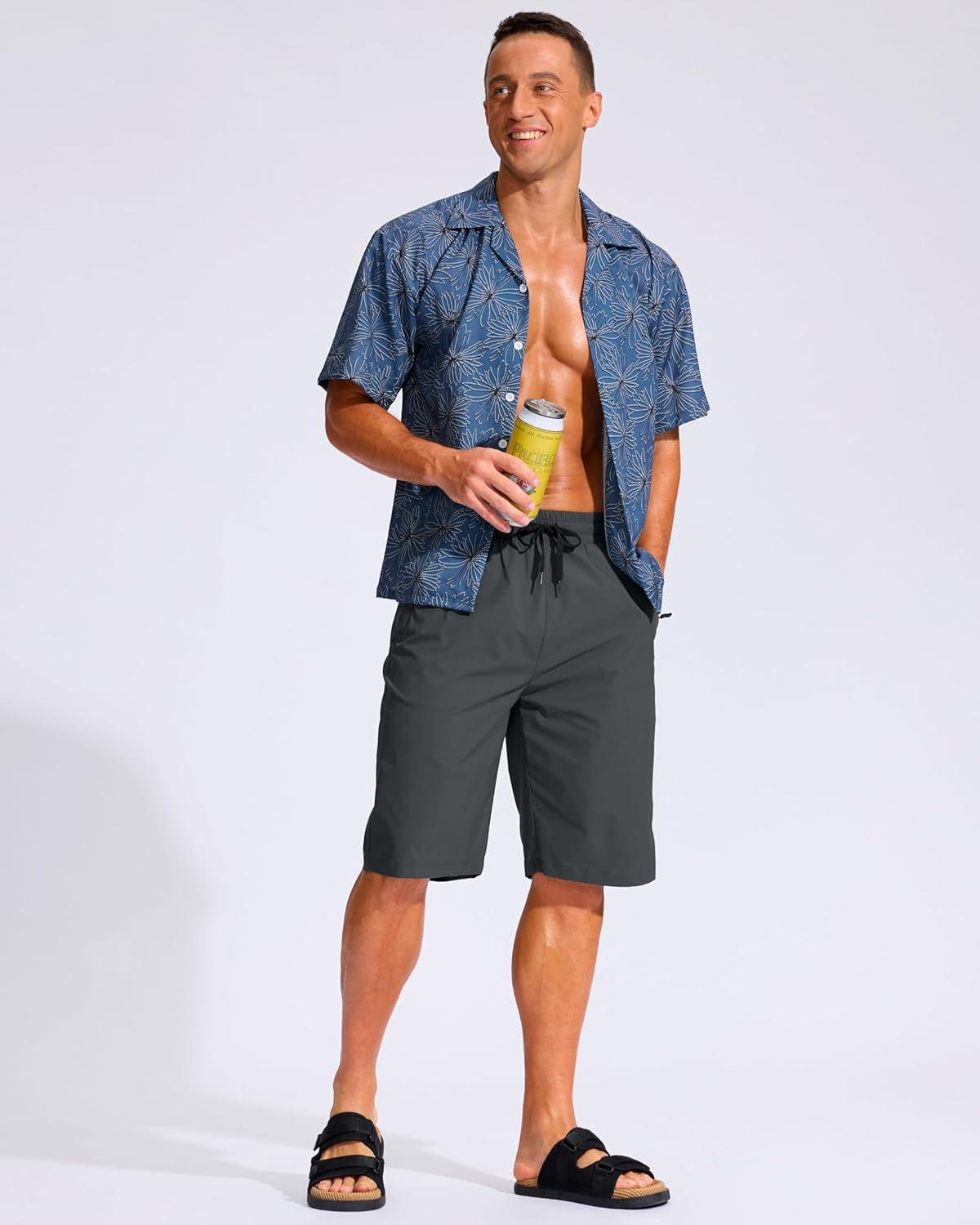G Gradual Men’s 11″ Board Shorts with 3 Zipper Pockets Long Swim Trunks Quick Dry Bathing Suit Swimwear Beach Shorts No Liner(Dark Grey)
