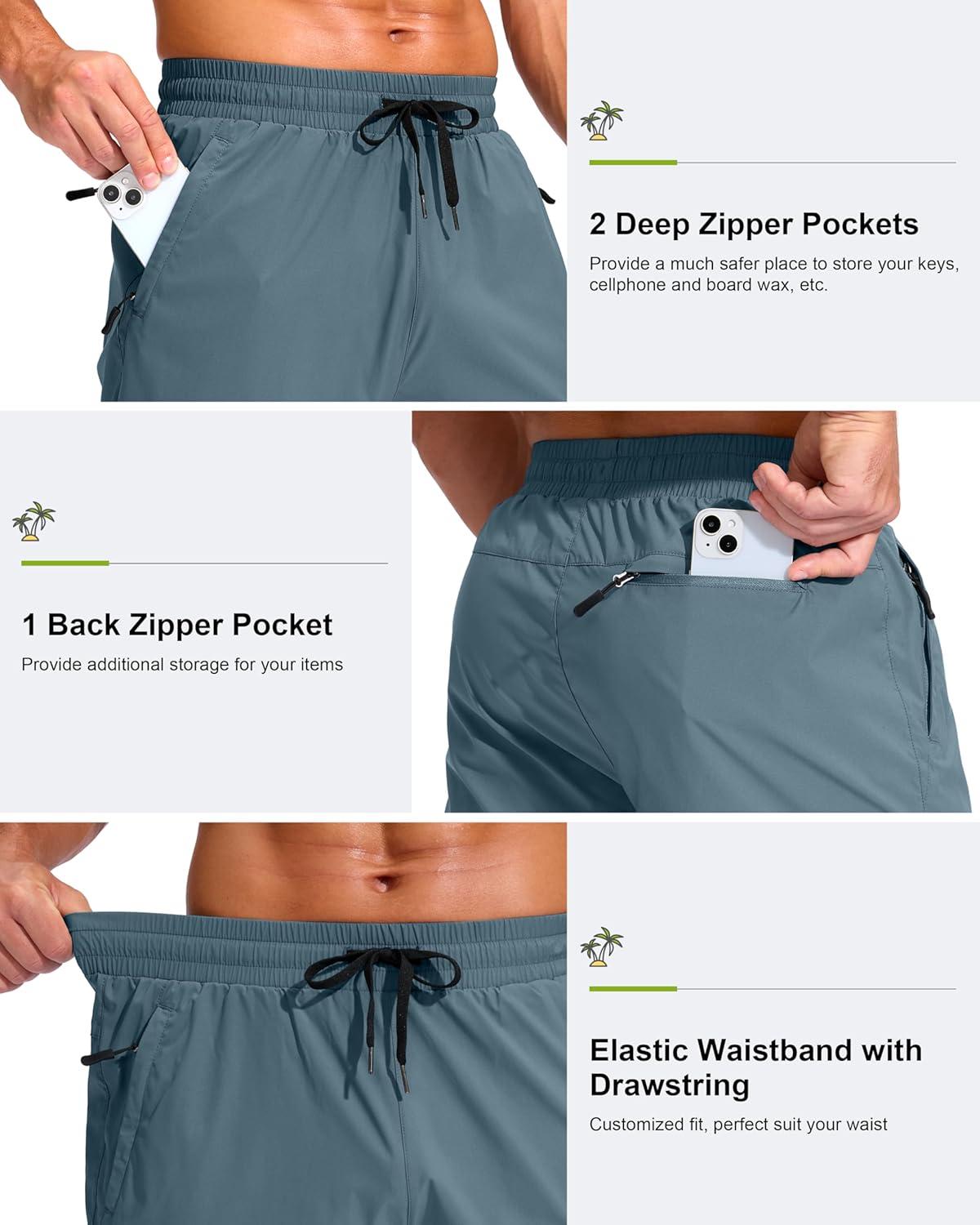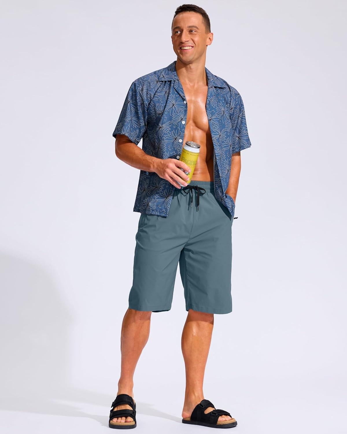 G Gradual Men’s 11″ Board Shorts with 3 Zipper Pockets Long Swim Trunks Quick Dry Bathing Suit Swimwear Beach Shorts No Liner(Dusty Blue)