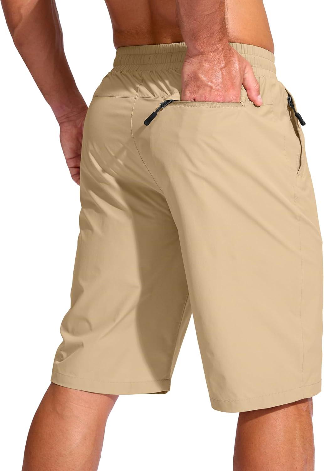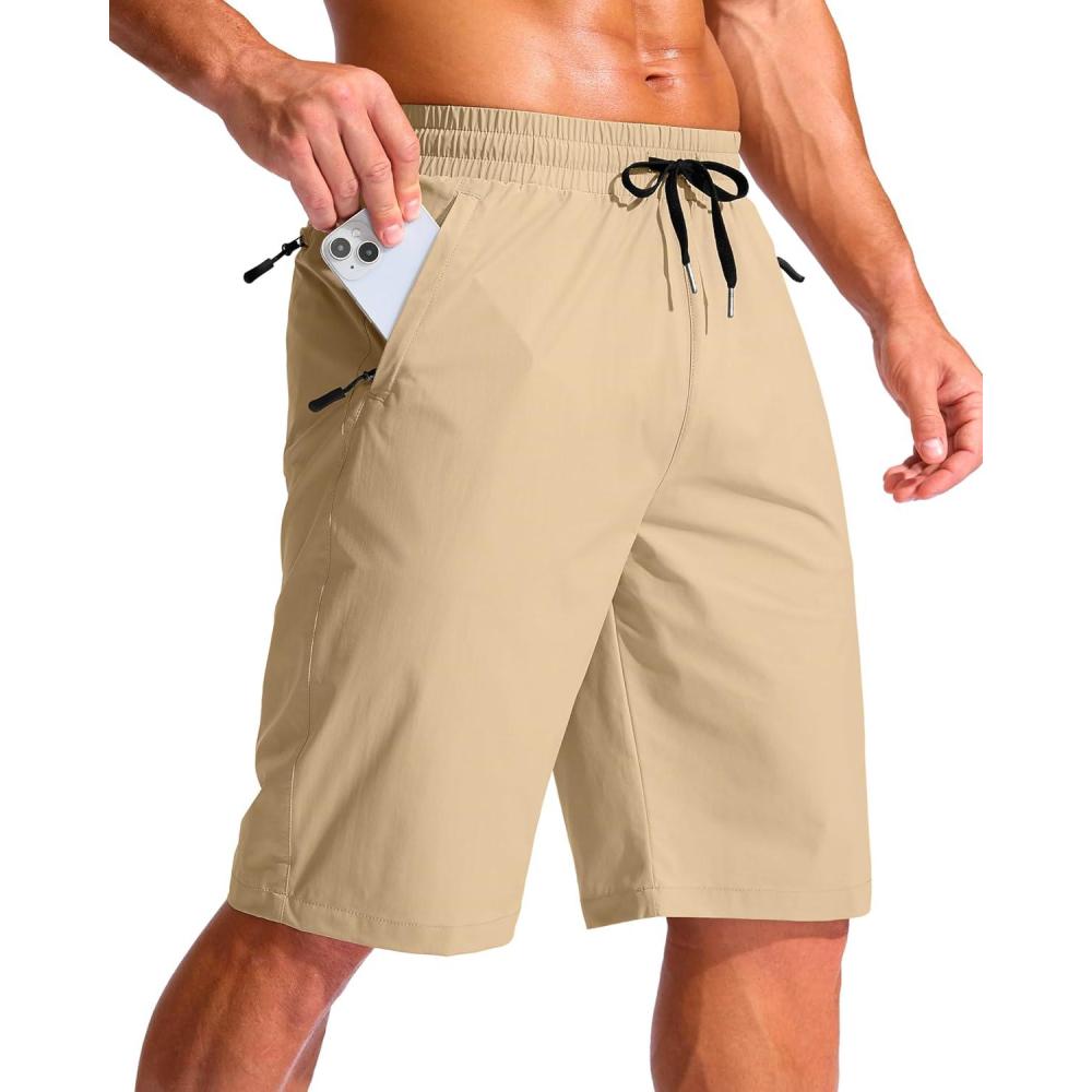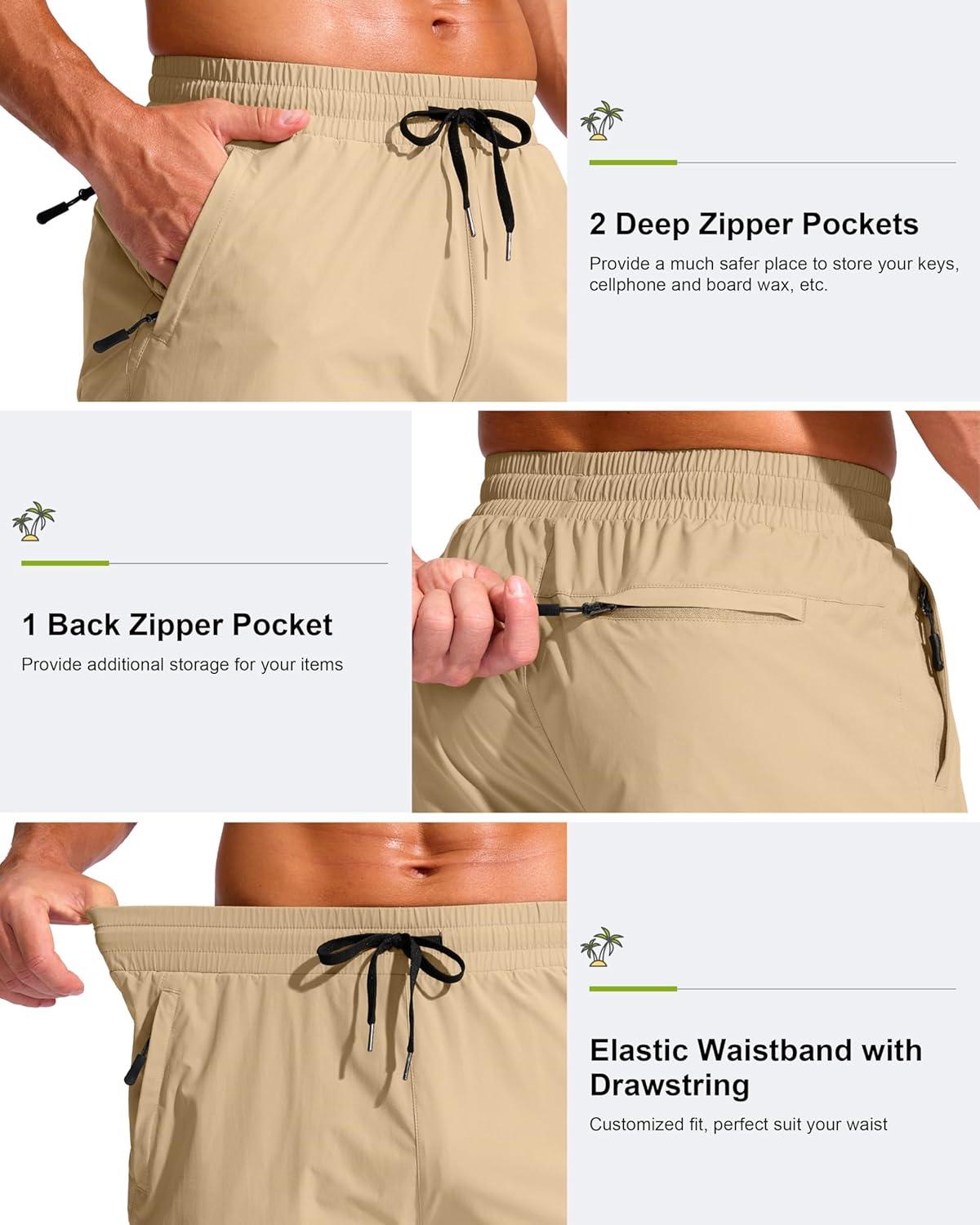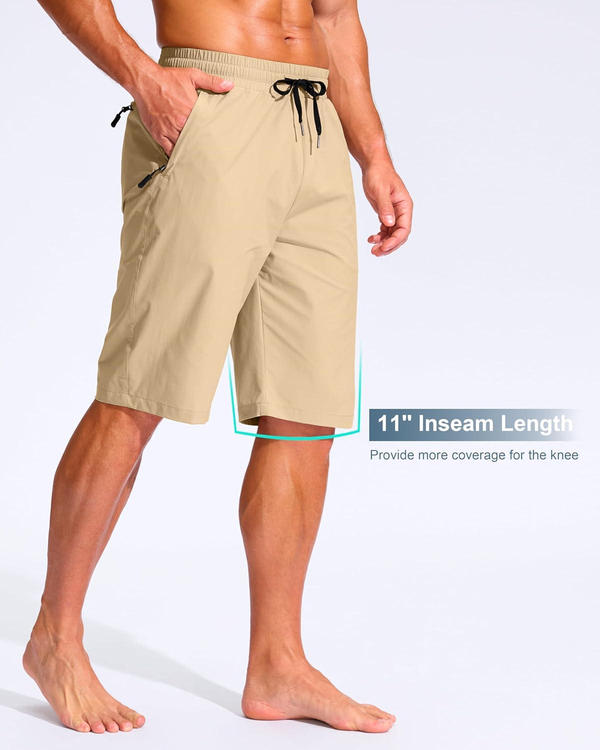 G Gradual Men’s 11″ Board Shorts with 3 Zipper Pockets Long Swim Trunks Quick Dry Bathing Suit Swimwear Beach Shorts No Liner(Khaki)