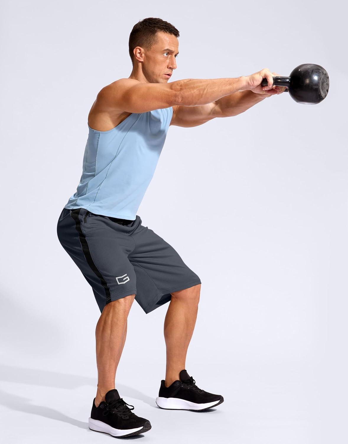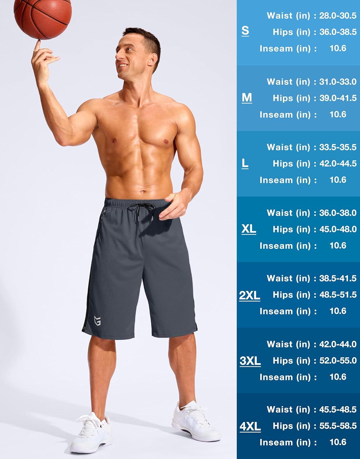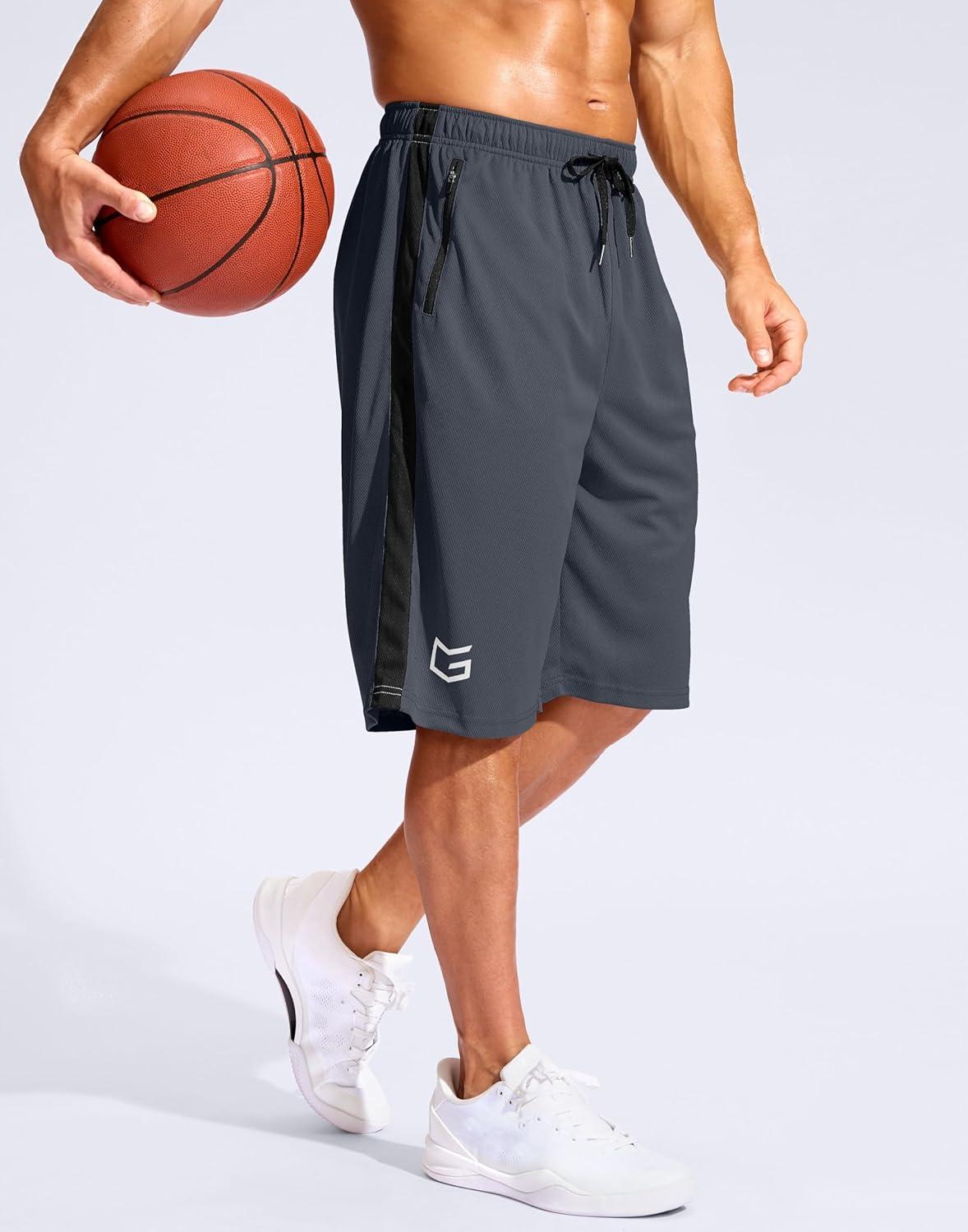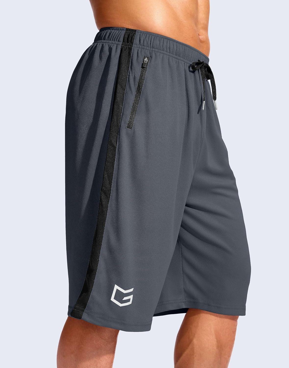G Gradual Men’s 11″ Long Basketball Shorts with Zipper Pockets Drawstring Mesh Lightweight Gym Athletic Shorts for Men(Dark Grey)