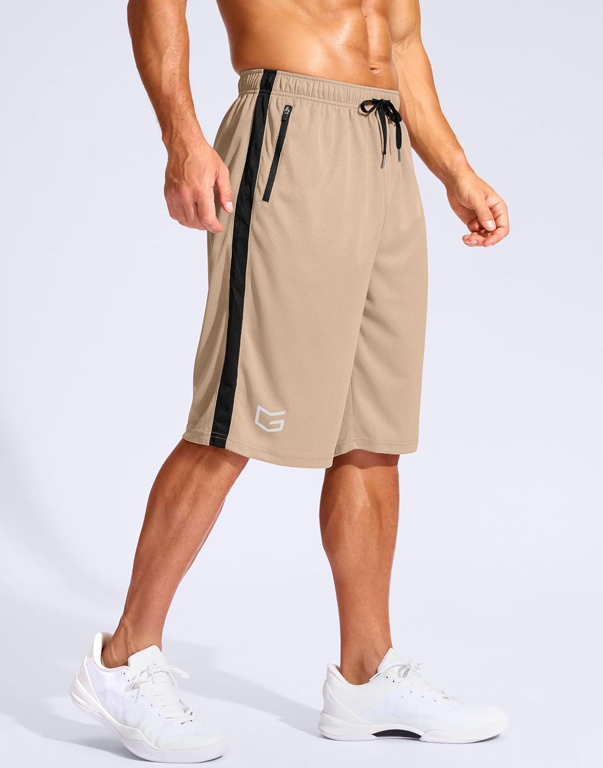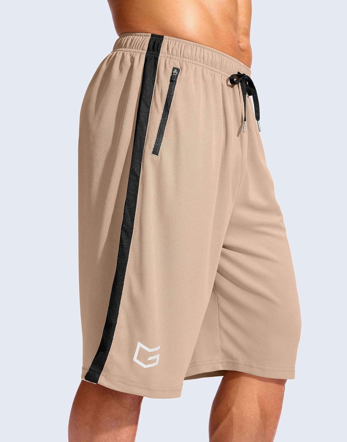 G Gradual Men's 11" Long Basketball Shorts with Zipper Pockets Mesh Quick Dry Lightweight Gym Athletic Shorts for Men(Khaki)