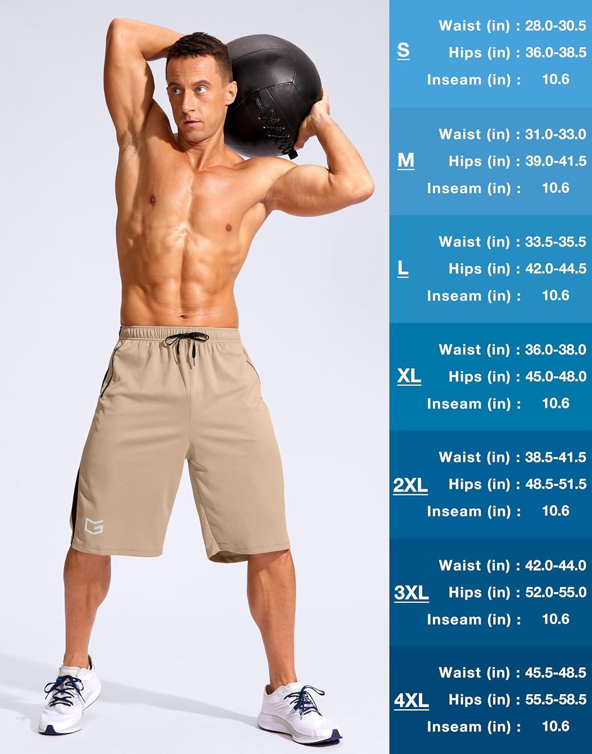 G Gradual Men’s 11″ Long Basketball Shorts with Zipper Pockets Mesh Quick Dry Lightweight Gym Athletic Shorts for Men(Khaki)