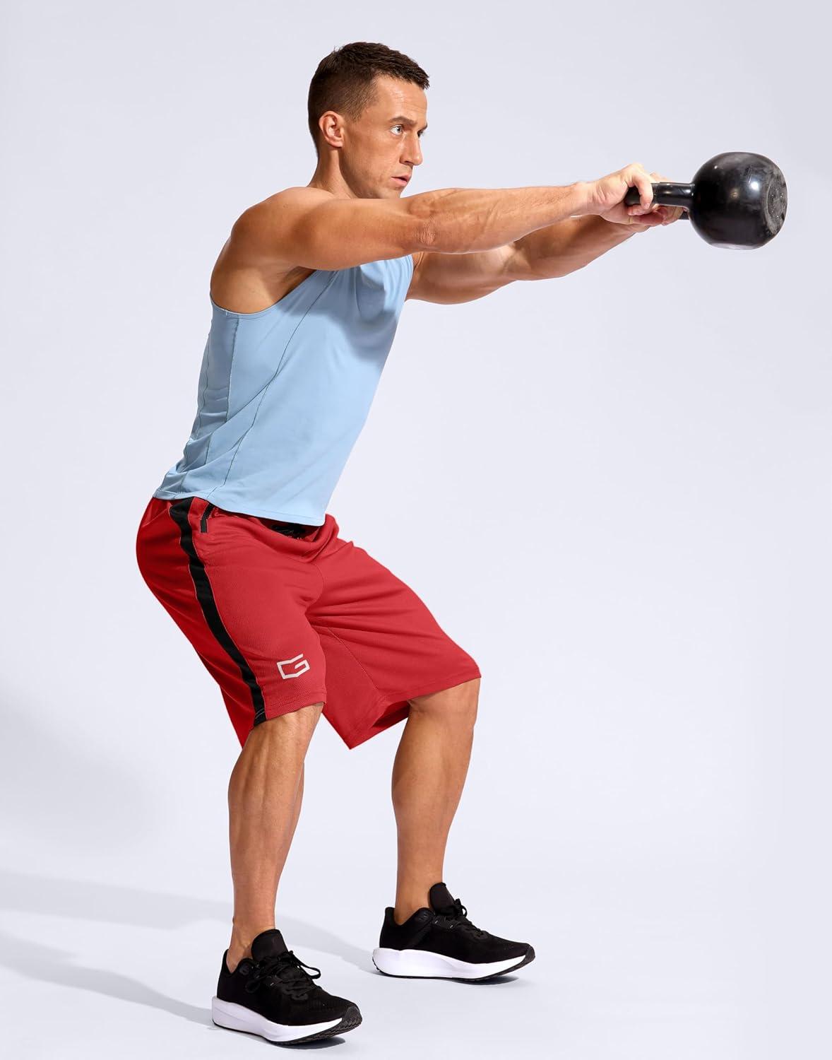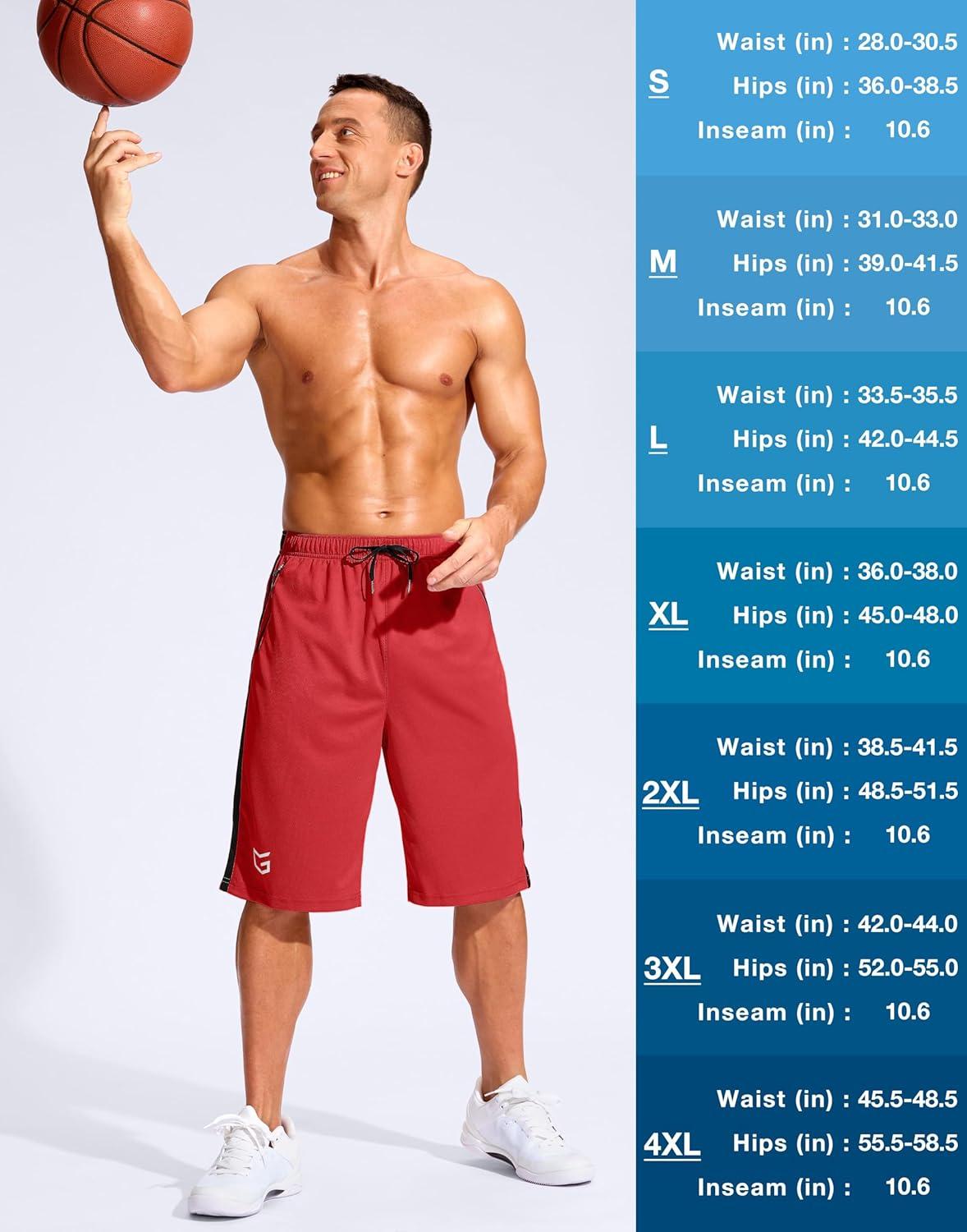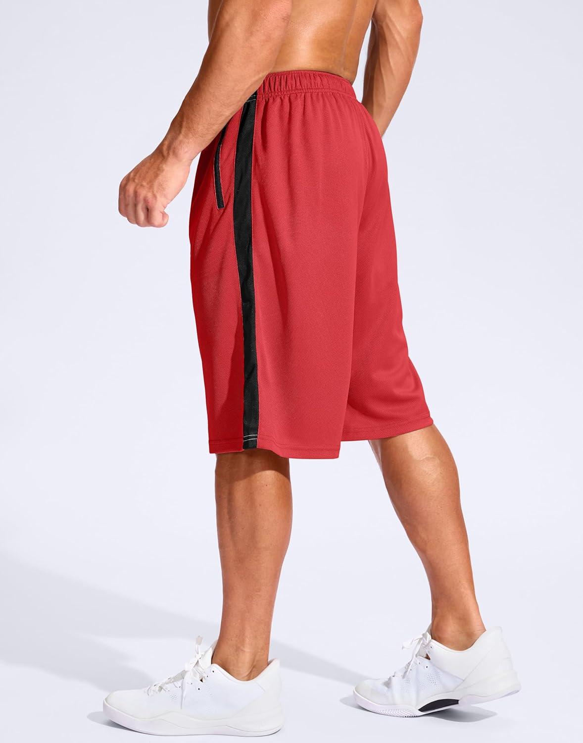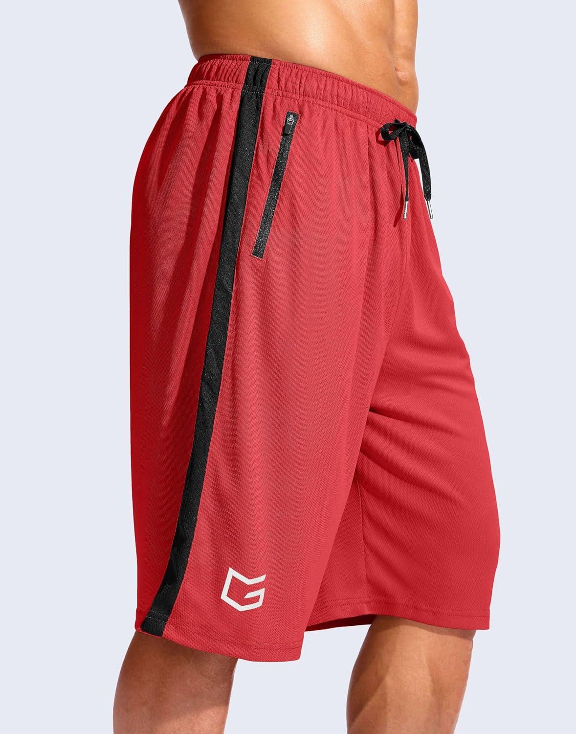 G Gradual Men's 11" Long Basketball Shorts with Zipper Pockets Mesh Quick Dry Lightweight Gym Athletic Shorts for Men(Red)