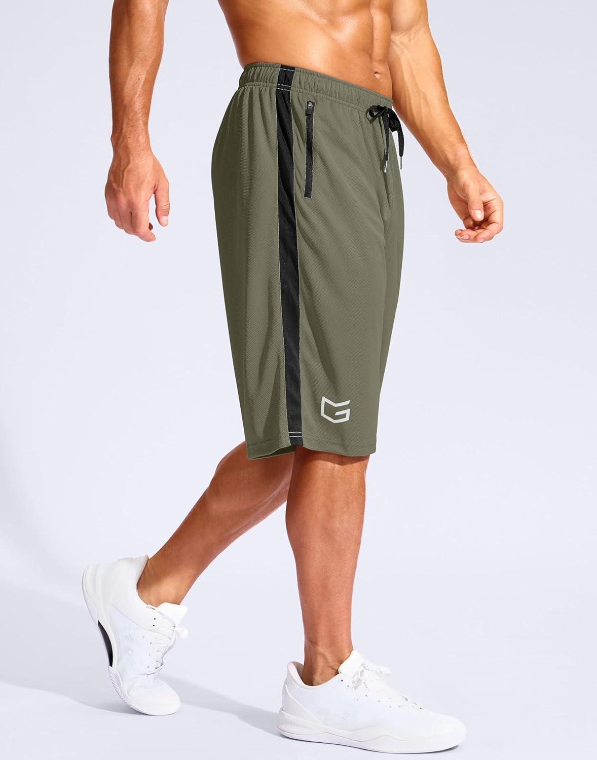 G Gradual Men's 11" Long Basketball Shorts with Zipper Pockets Mesh Quick Dry Lightweight Gym Athletic Shorts for Men(Sage)
