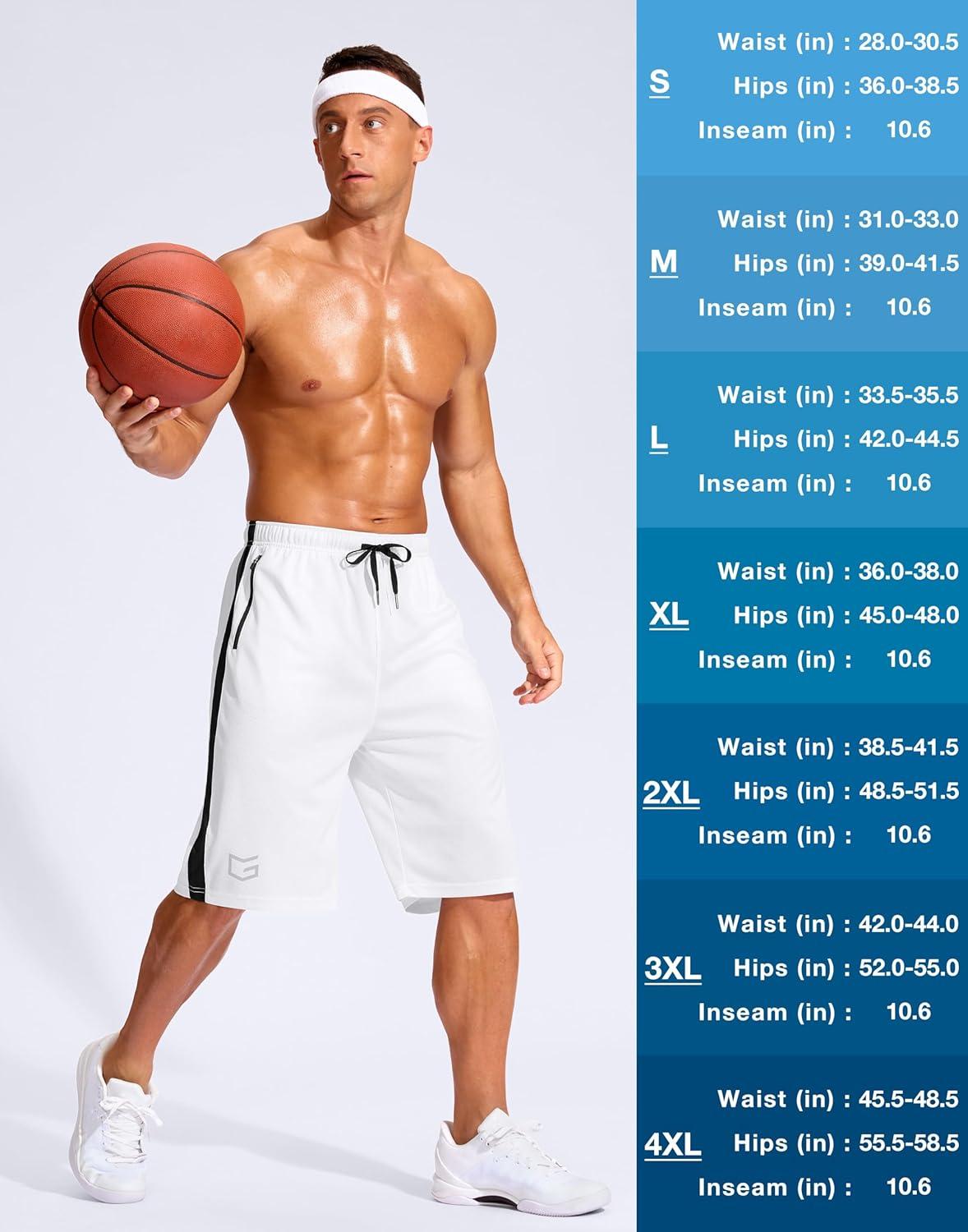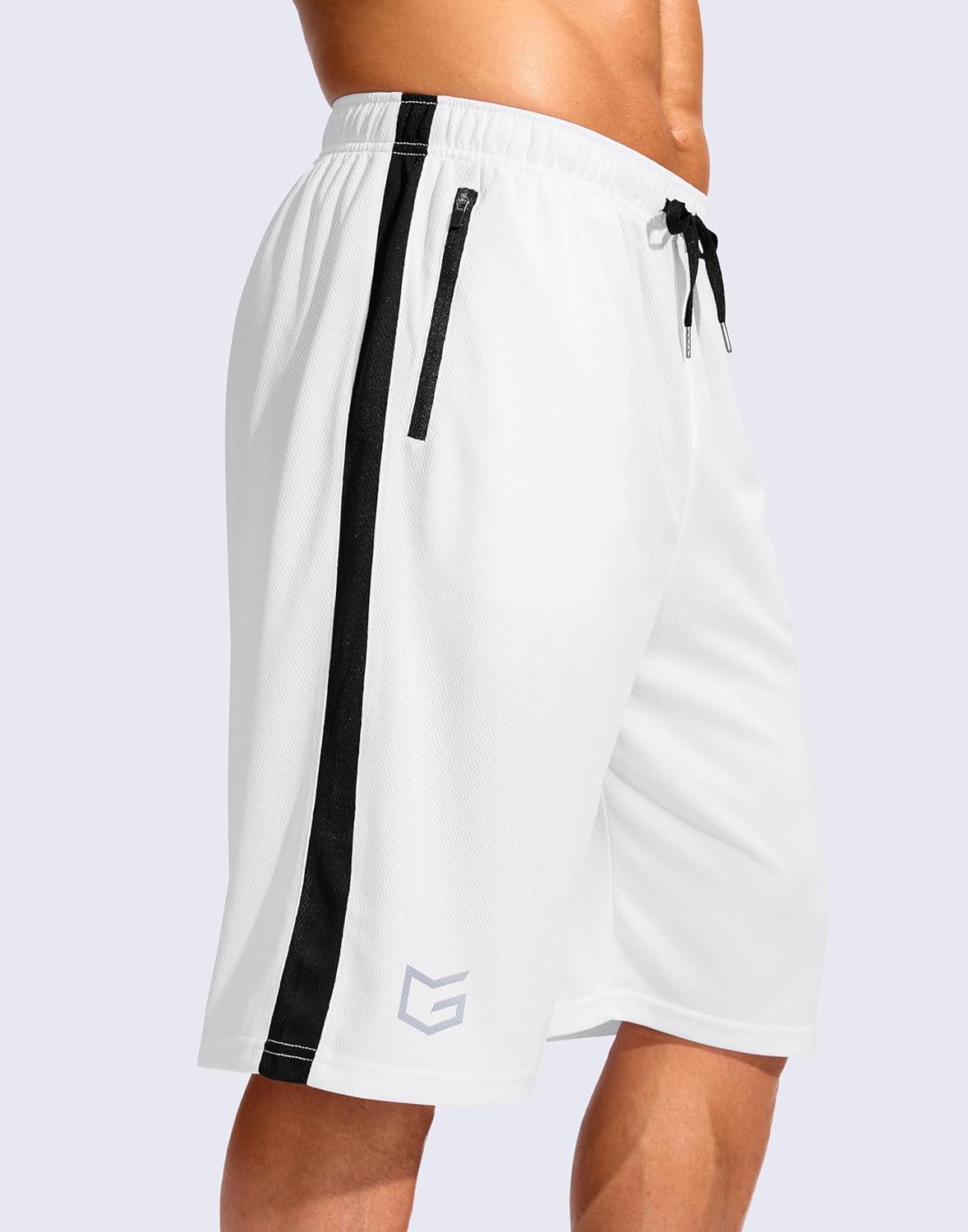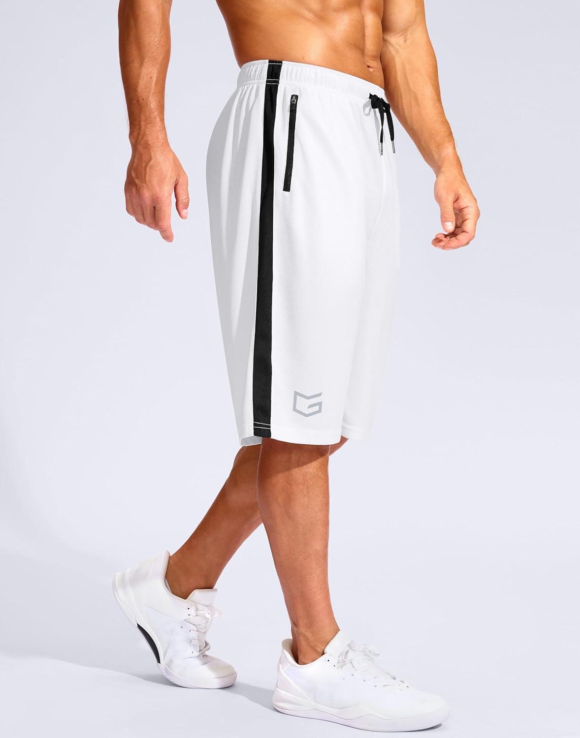 G Gradual Men's 11" Long Basketball Shorts with Zipper Pockets Mesh Quick Dry Lightweight Gym Athletic Shorts for Men(White)