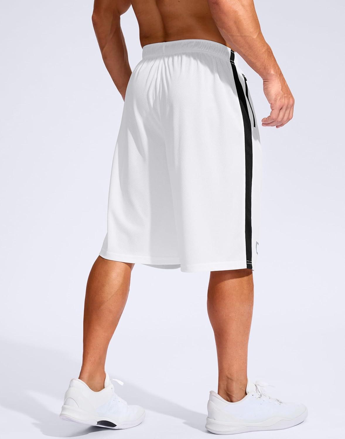 G Gradual Men’s 11″ Long Basketball Shorts with Zipper Pockets Mesh Quick Dry Lightweight Gym Athletic Shorts for Men(White)