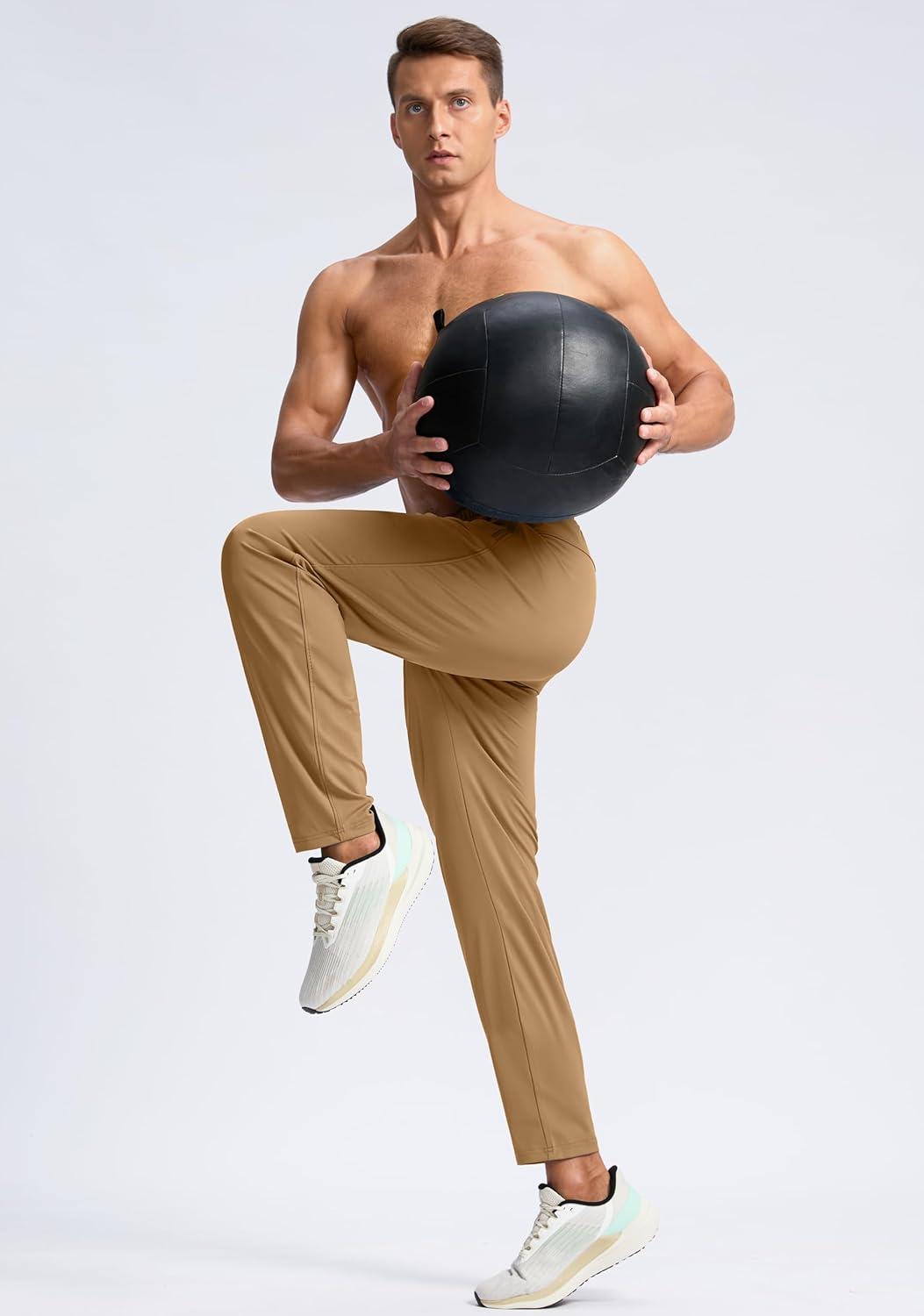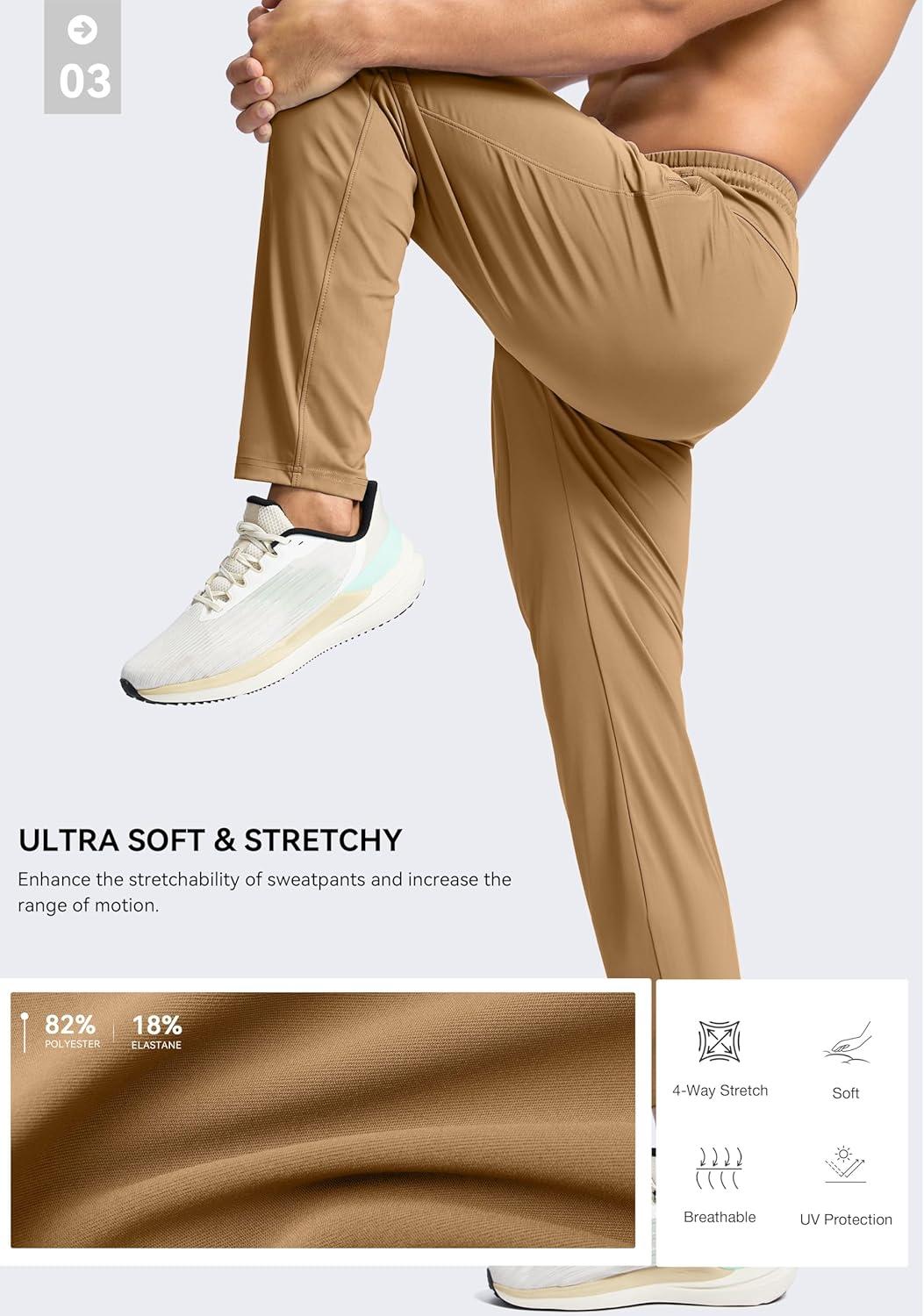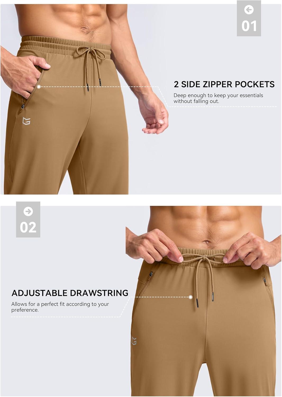 G Gradual Men's 30"/32"/34"/36" Inseam Tall Sweatpants with Zipper Pockets Stretch Long Joggers Athletic Workout Pants Men(Khaki)