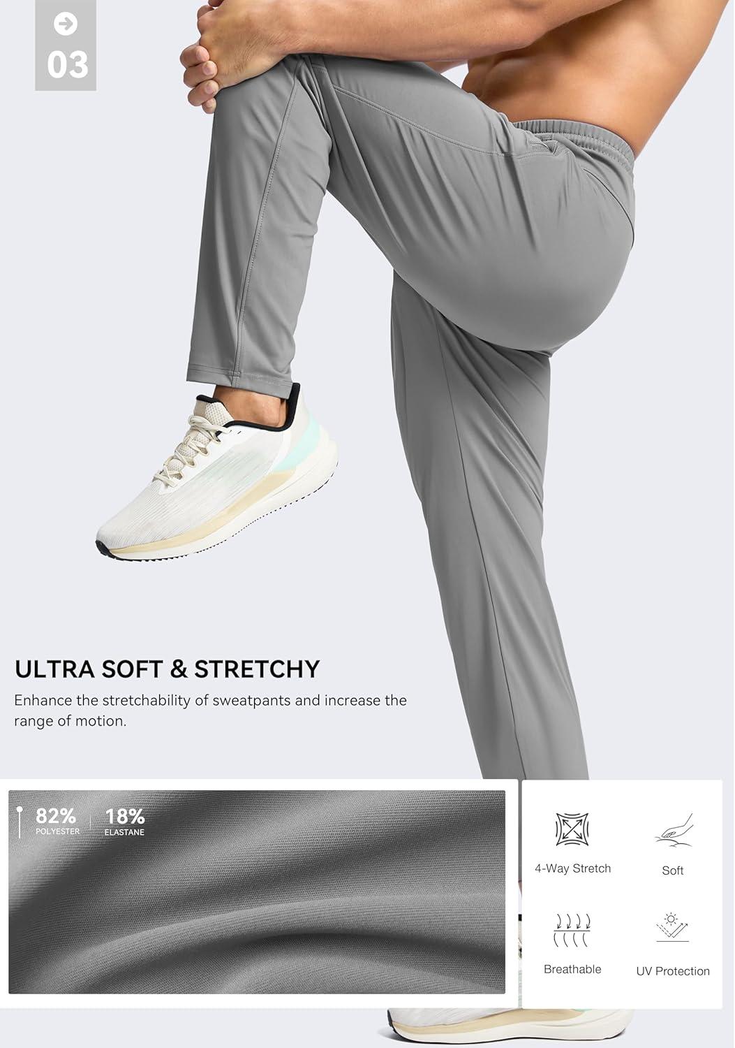 G Gradual Men's 30"/32"/34"/36" Inseam Tall Sweatpants with Zipper Pockets Stretch Long Joggers Athletic Workout Pants Men(Light Grey)