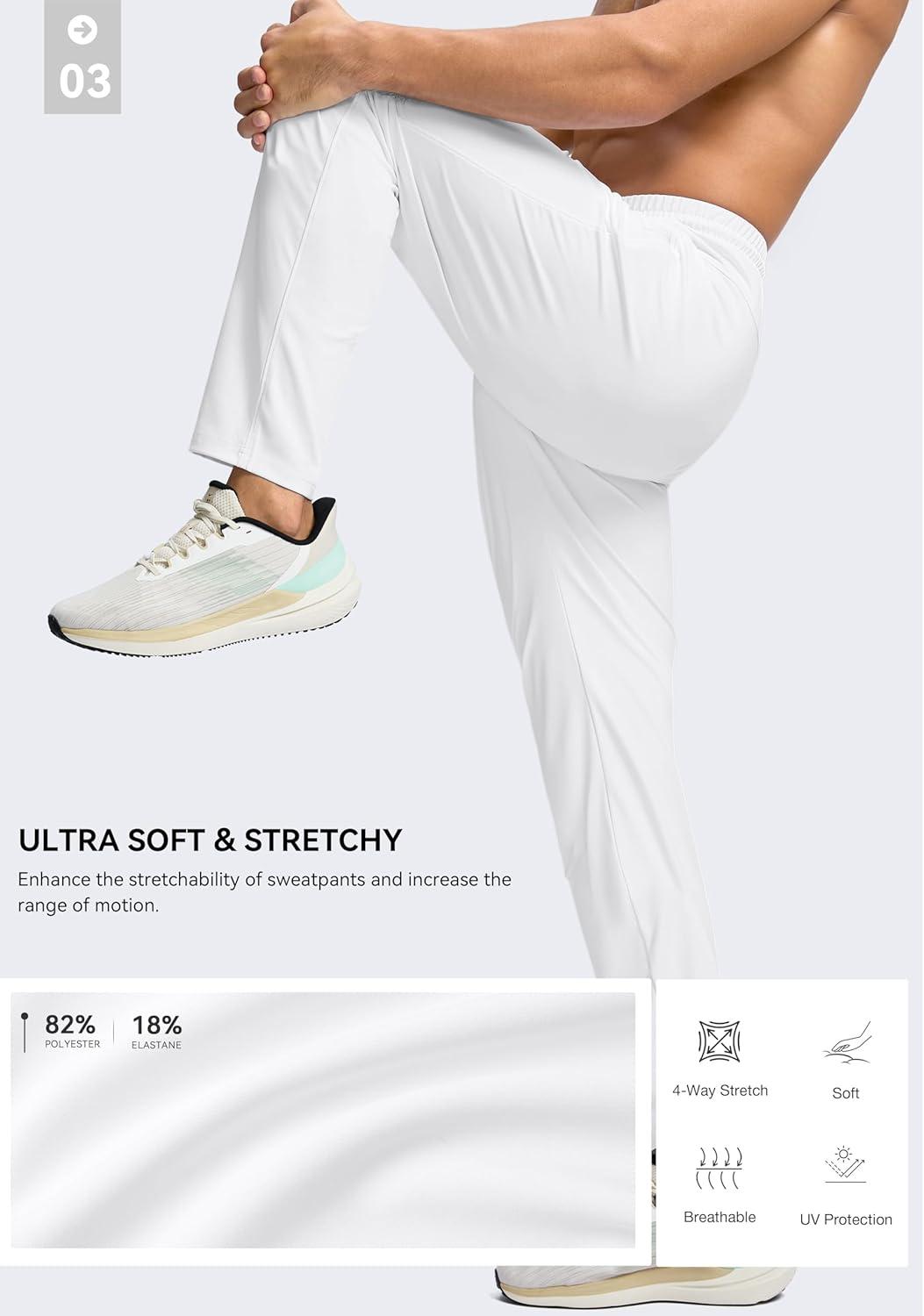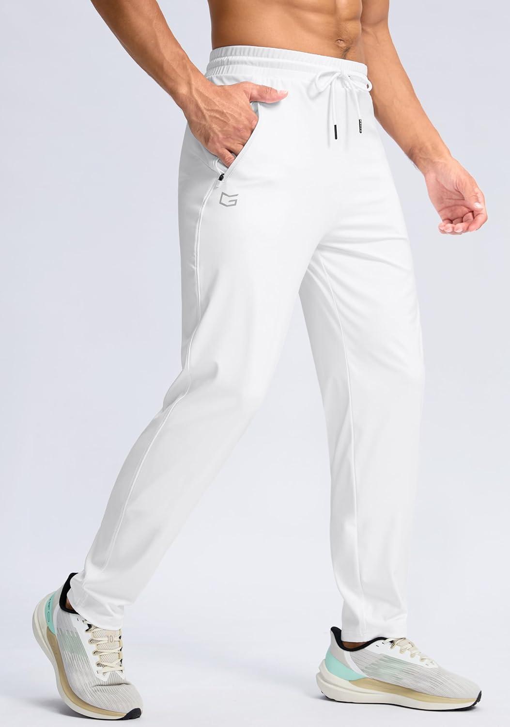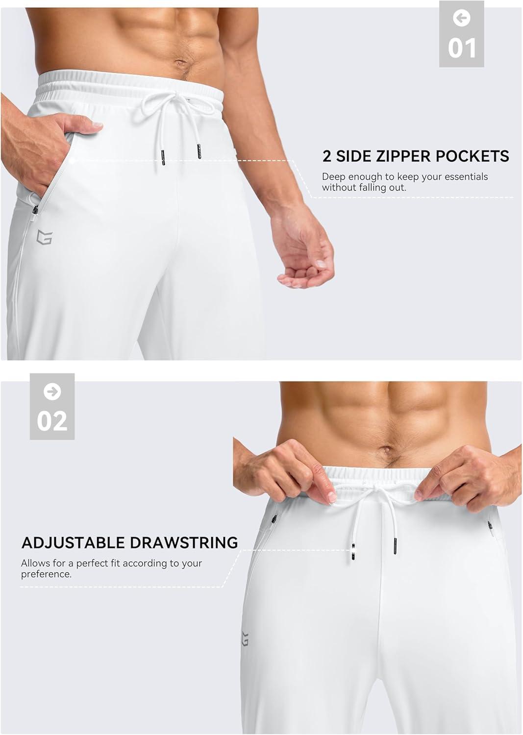 G Gradual Men’s 30″/32″/34″/36″ Inseam Tall Sweatpants with Zipper Pockets Stretch Long Joggers Athletic Workout Pants Men(White)