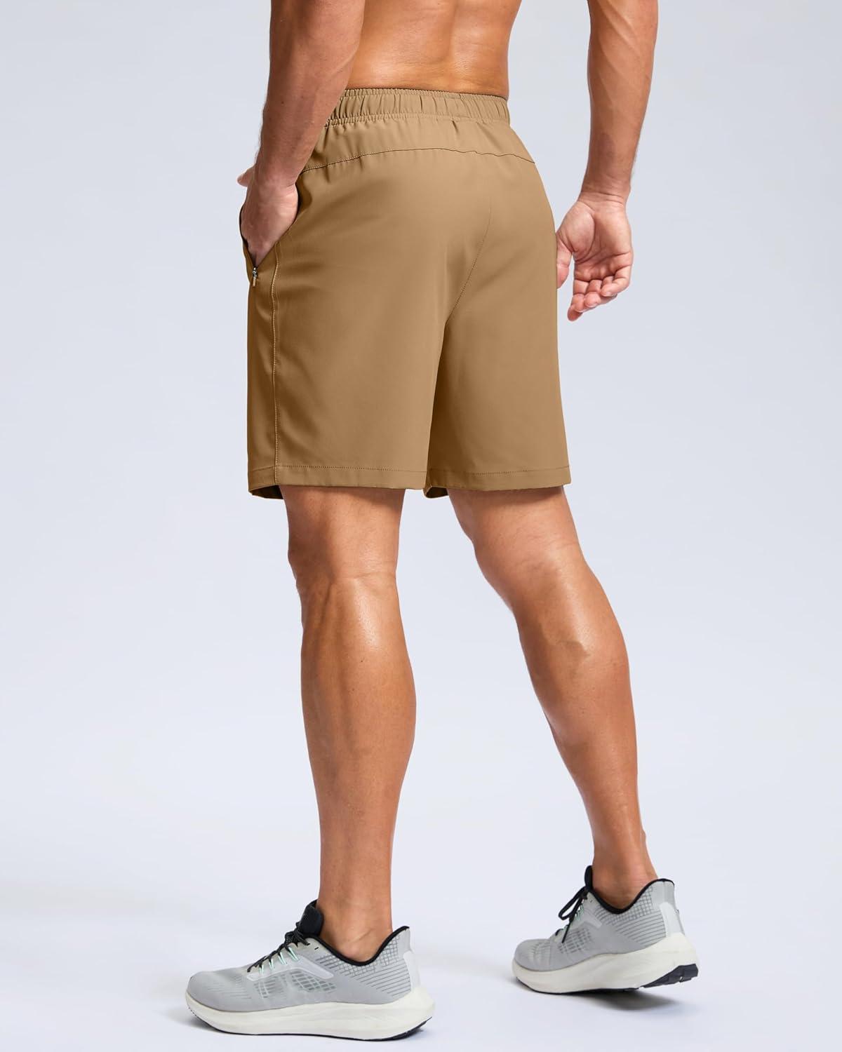 G Gradual Men's Athletic Running Shorts with Zipper Pockets Quick Dry 7"/ 5"/ 9" Workout Gym Shorts for Basketball Hiking(Dark Khaki)