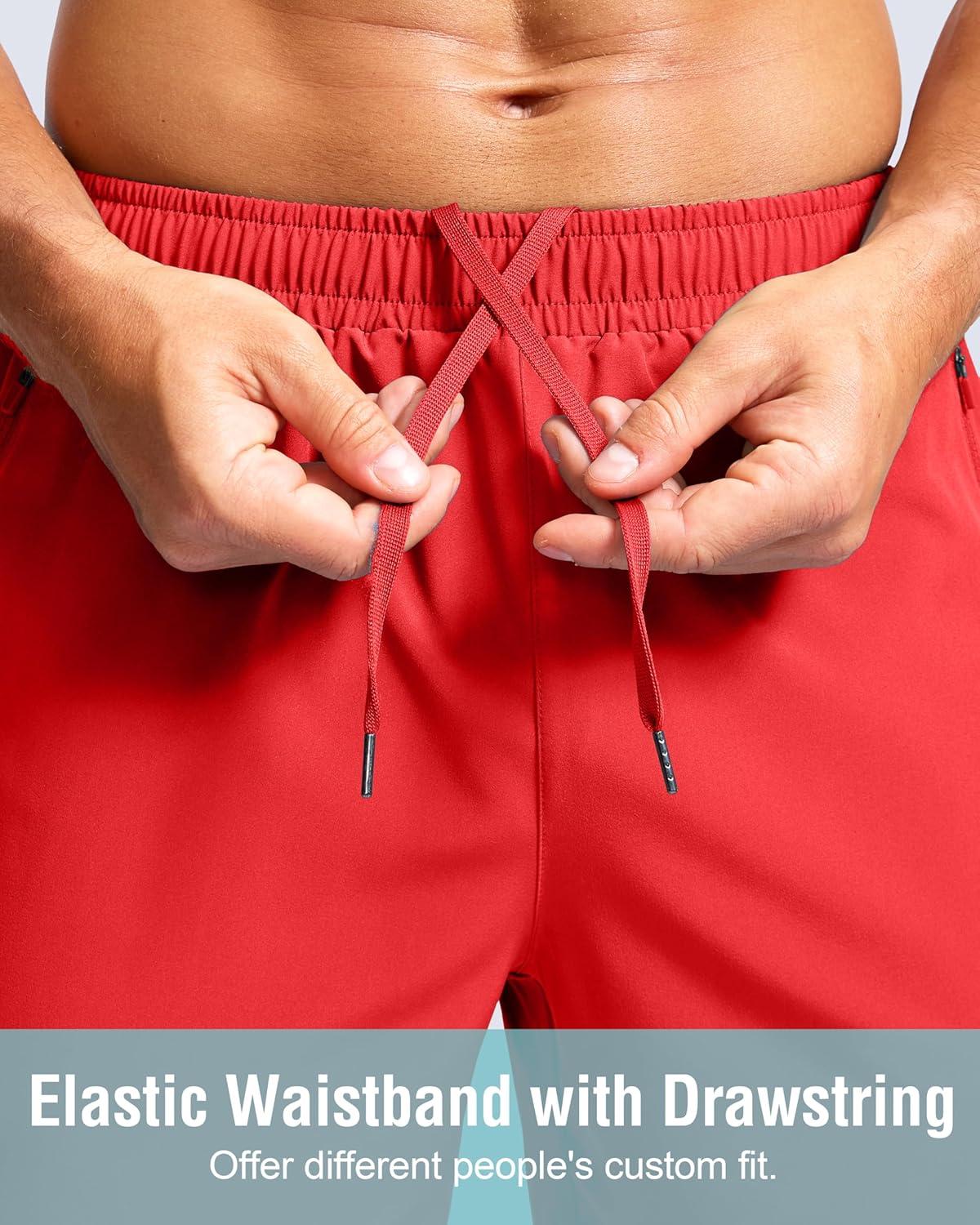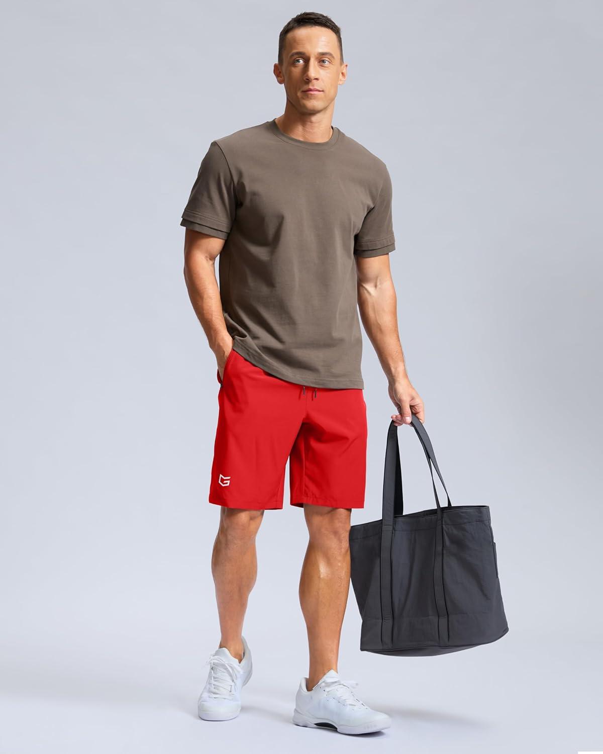 G Gradual Men's Athletic Running Shorts with Zipper Pockets Quick Dry 7"/ 5"/ 9" Workout Gym Shorts for Basketball Hiking(Deep Red)