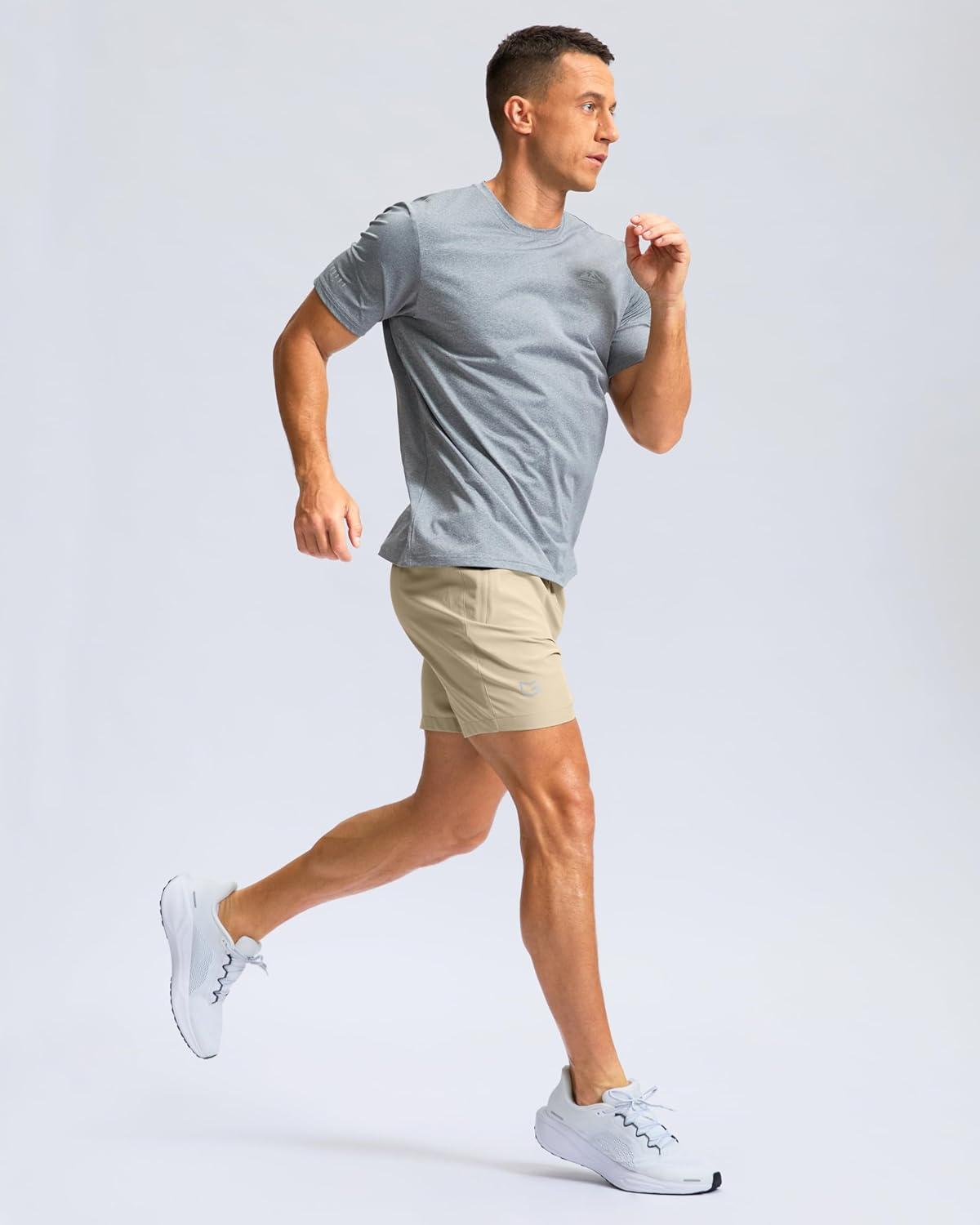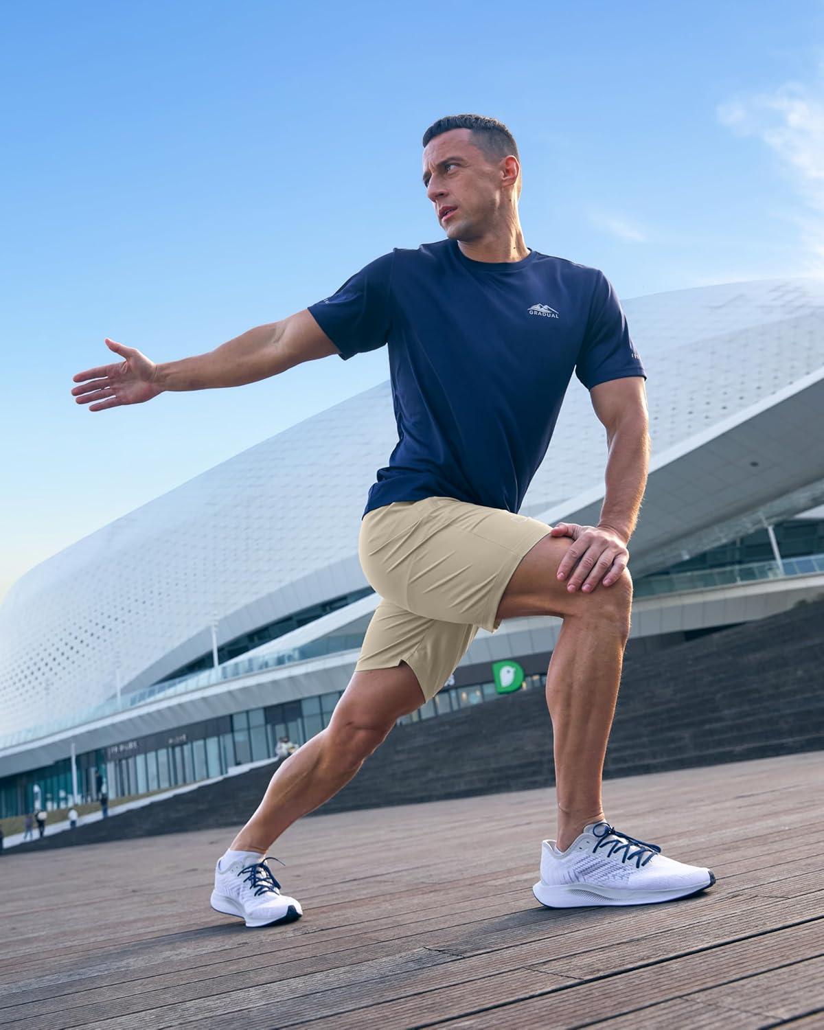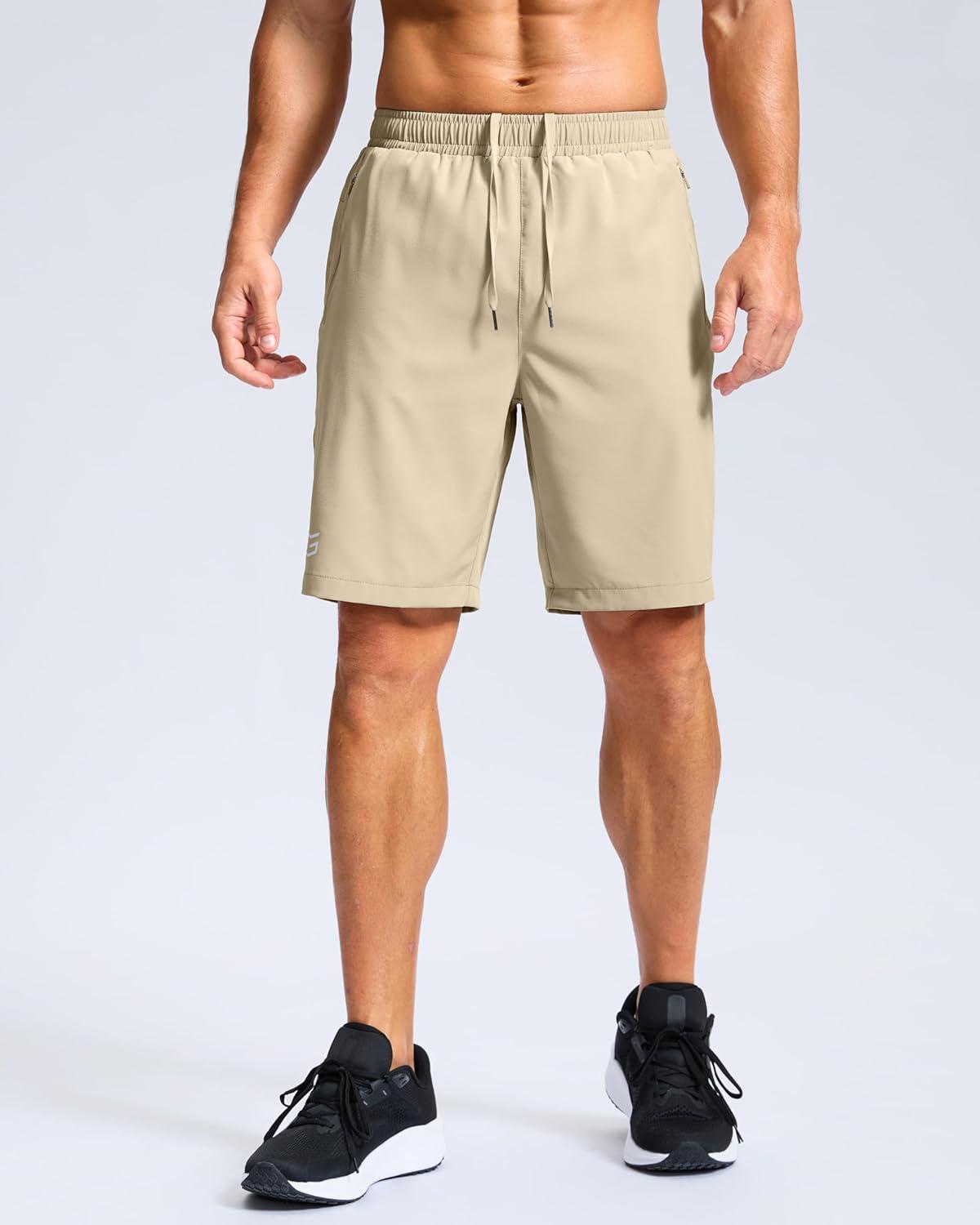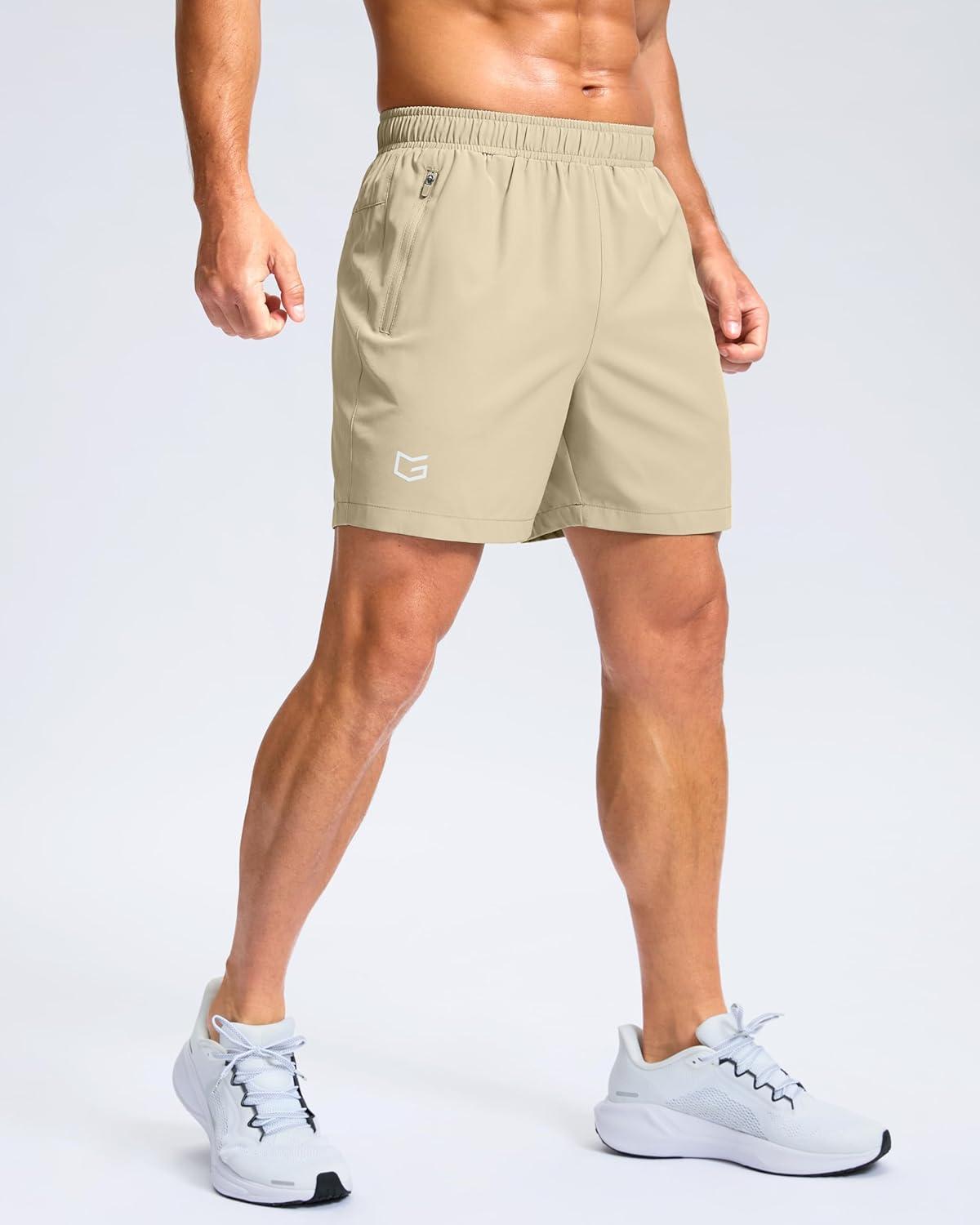 G Gradual Men’s Athletic Running Shorts with Zipper Pockets Quick Dry 7″/ 5″/ 9″ Workout Gym Shorts for Basketball Hiking(Khaki)