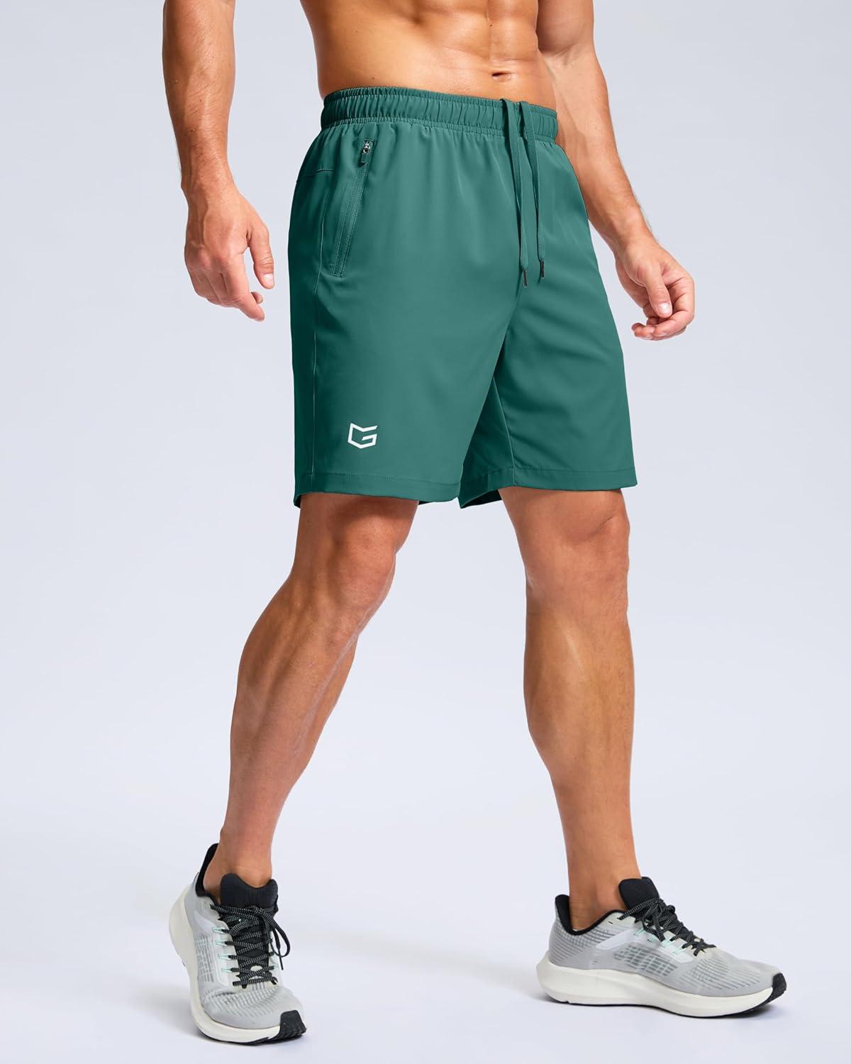 imageG Gradual Mens Athletic Running Shorts with Zipper Pockets Quick Dry 7quot 5quot 9quot Workout Gym Shorts for Basketball HikingRainforest Green