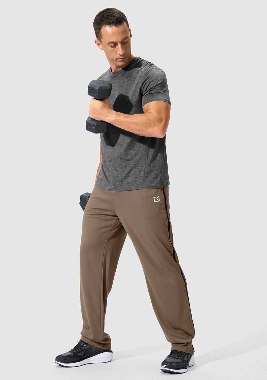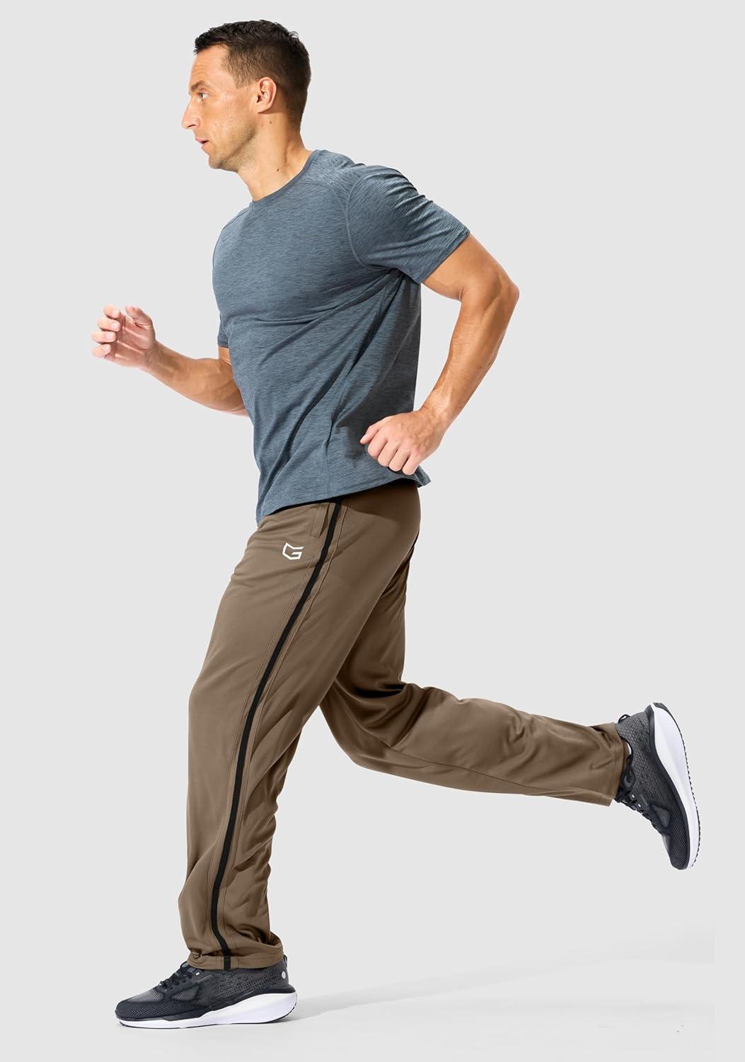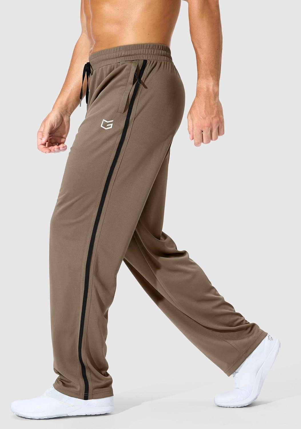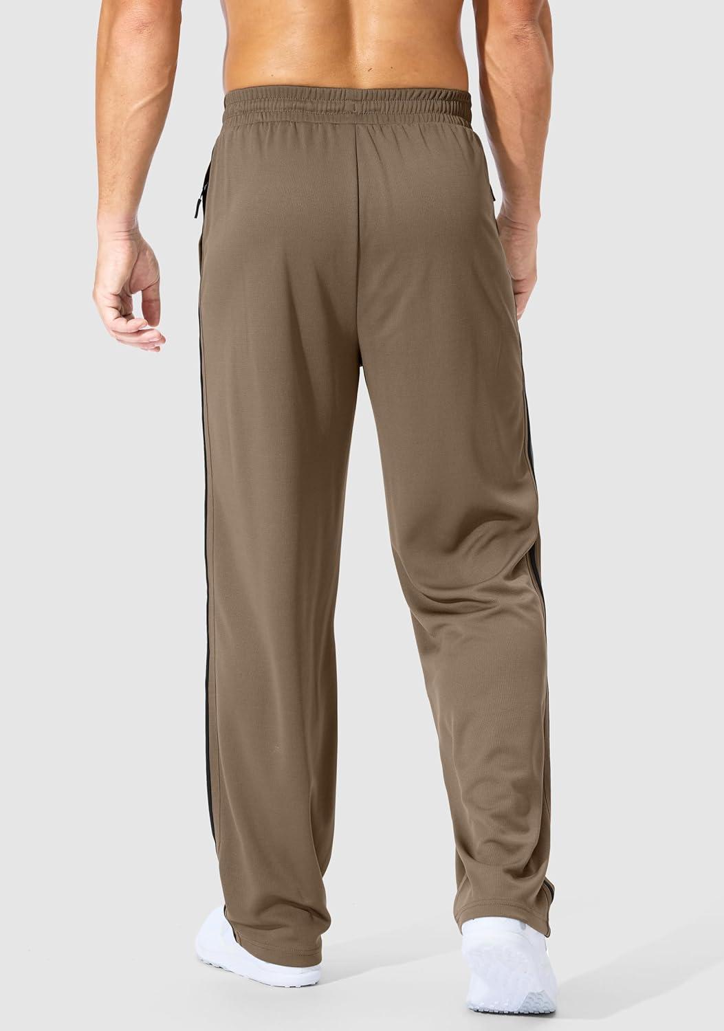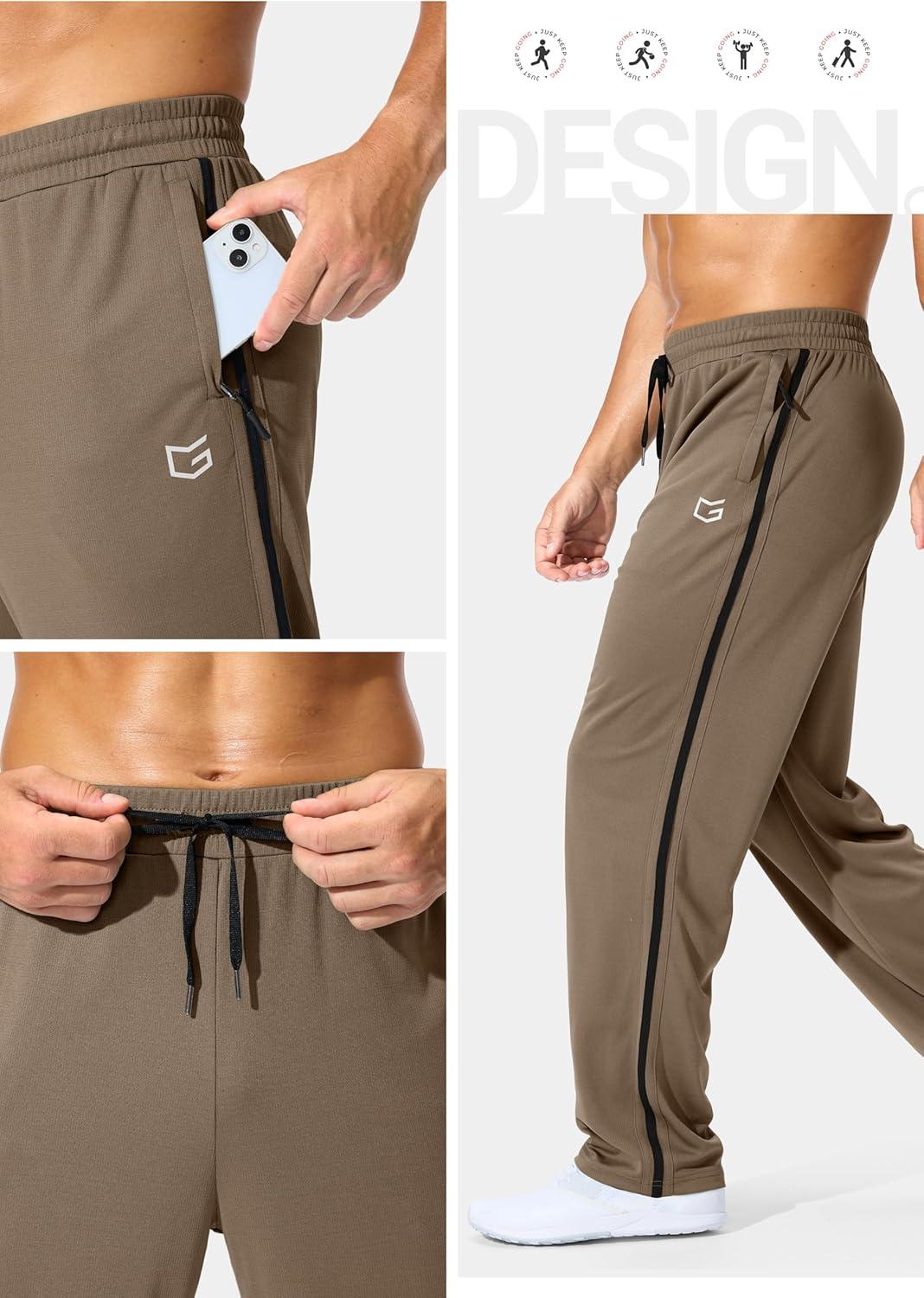 G Gradual Men’s Athletic Sweatpants with Zipper Pockets Lightweight Quick Dry Mesh Workout Pants Open Bottom for Casual(Brown)
