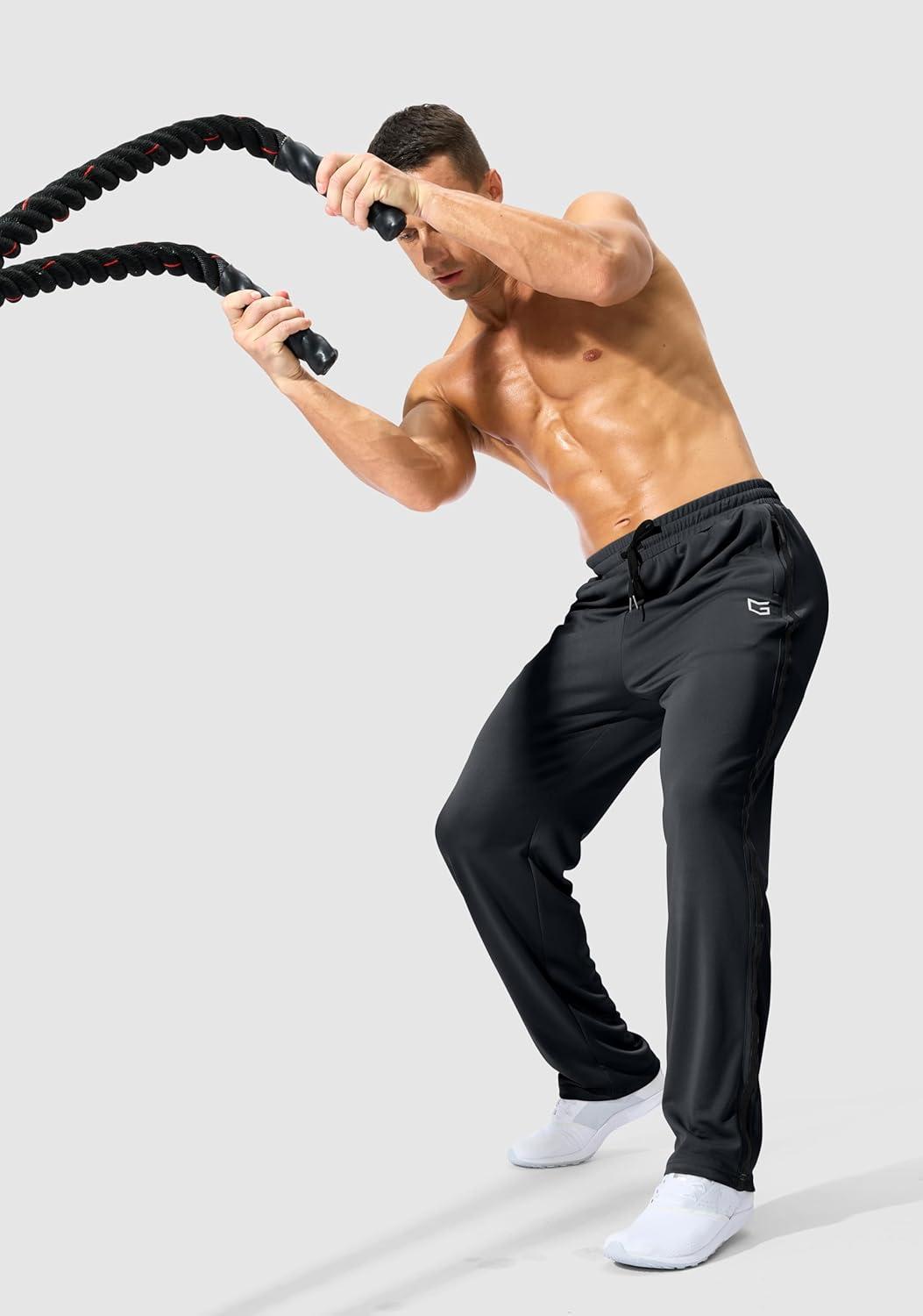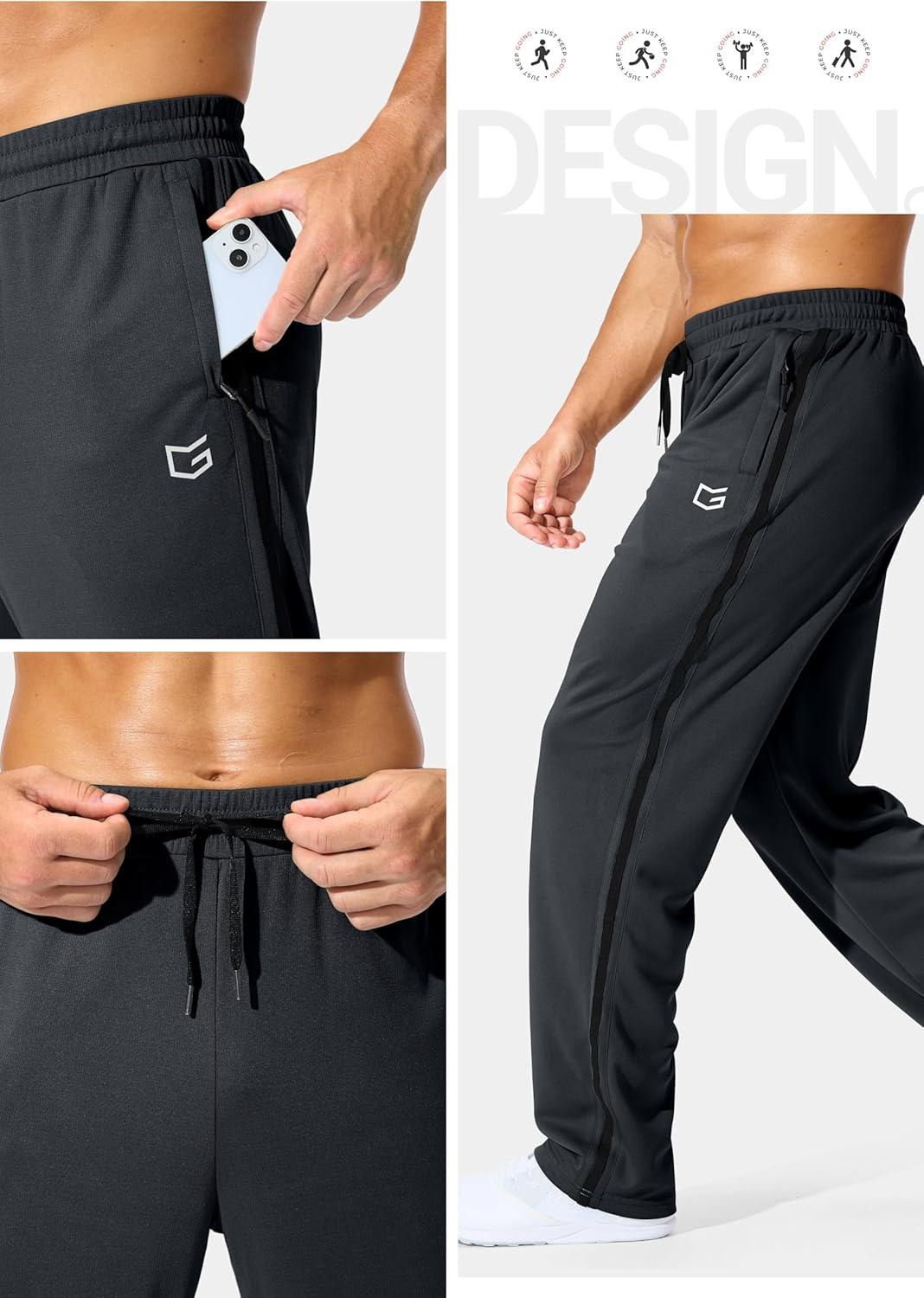 G Gradual Men’s Athletic Sweatpants with Zipper Pockets Lightweight Quick Dry Mesh Workout Pants Open Bottom for Casual(Charcoal)