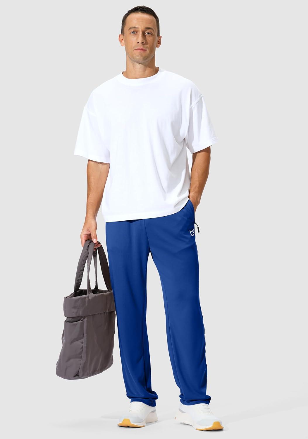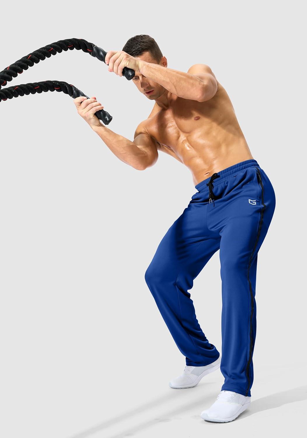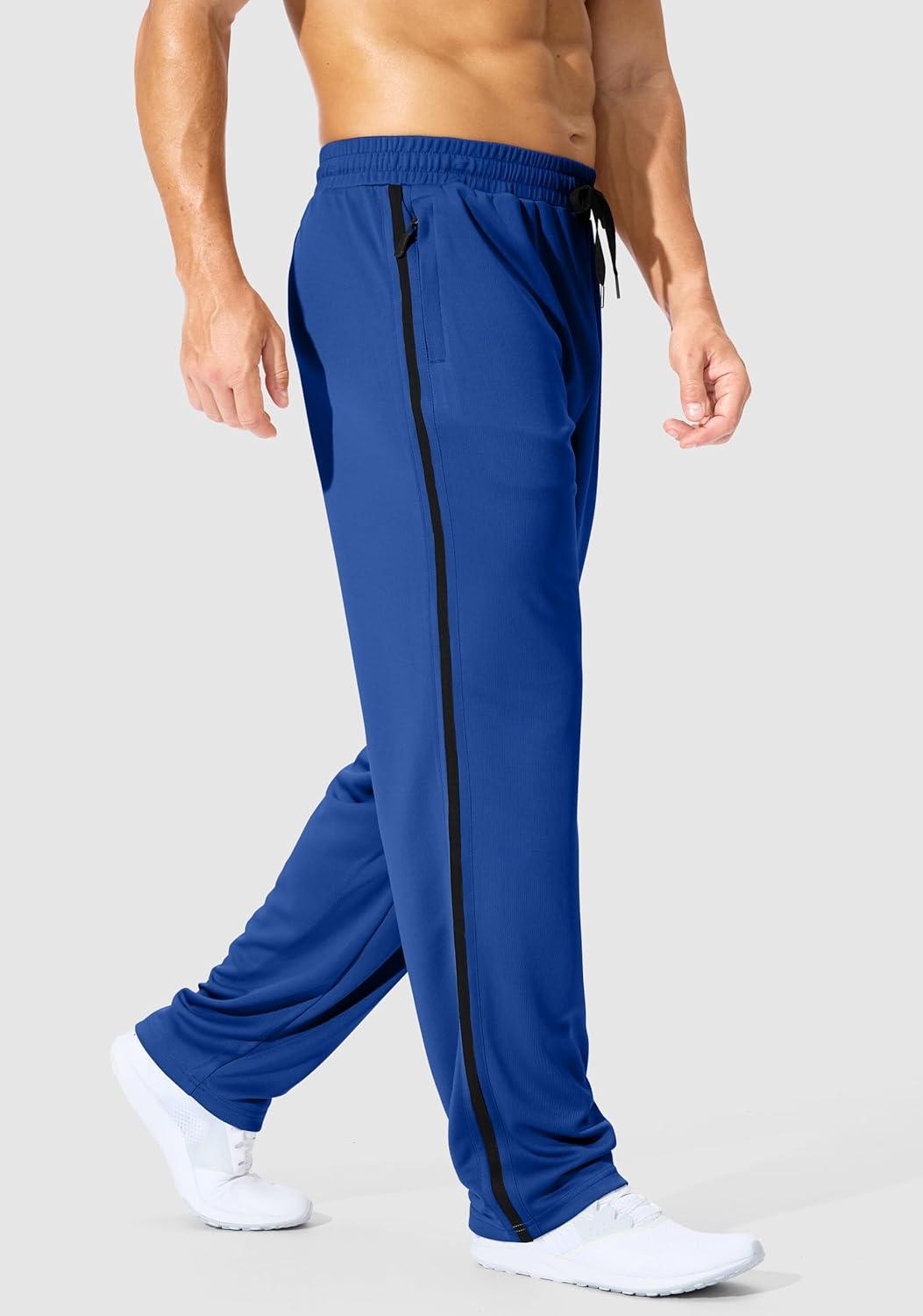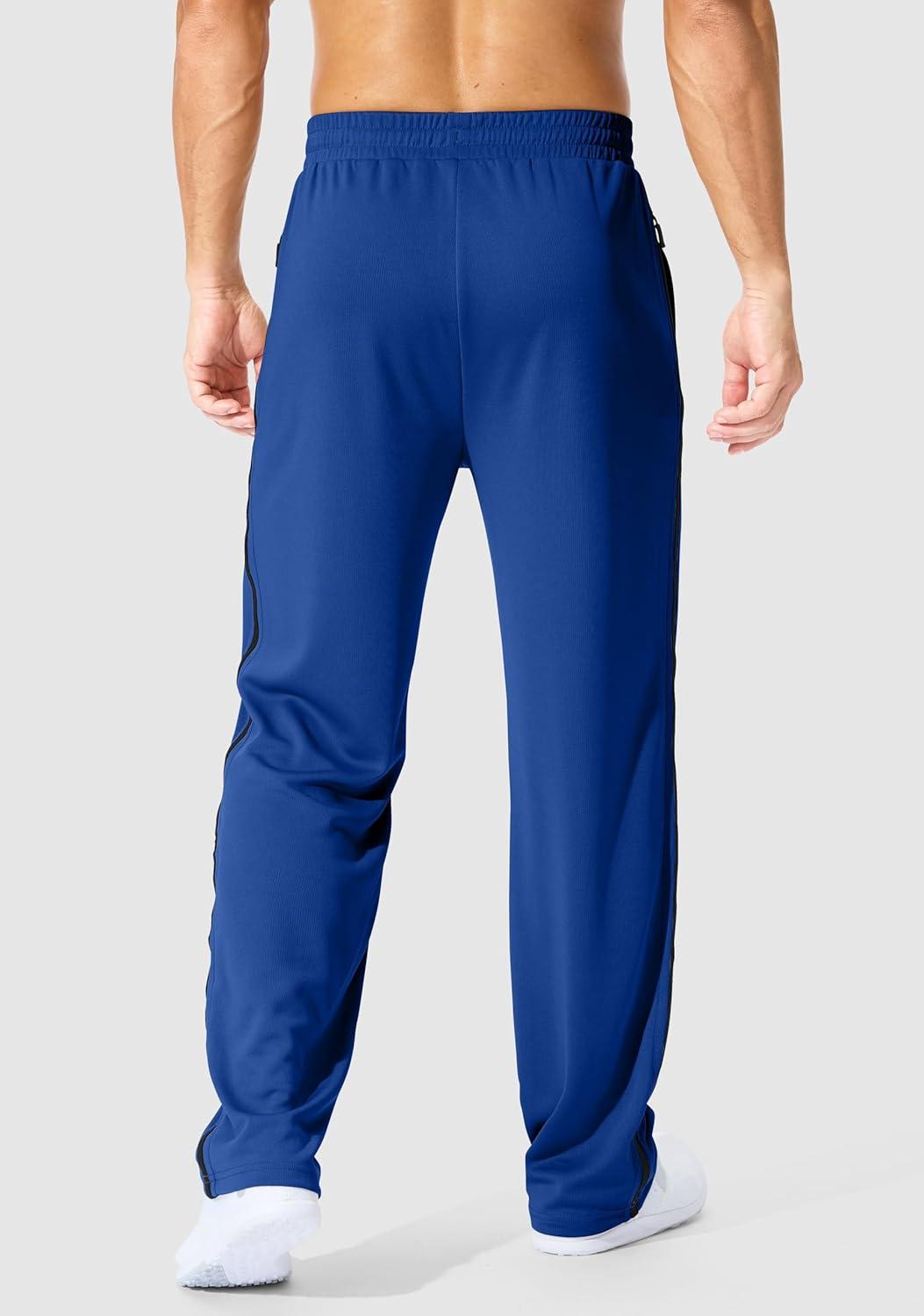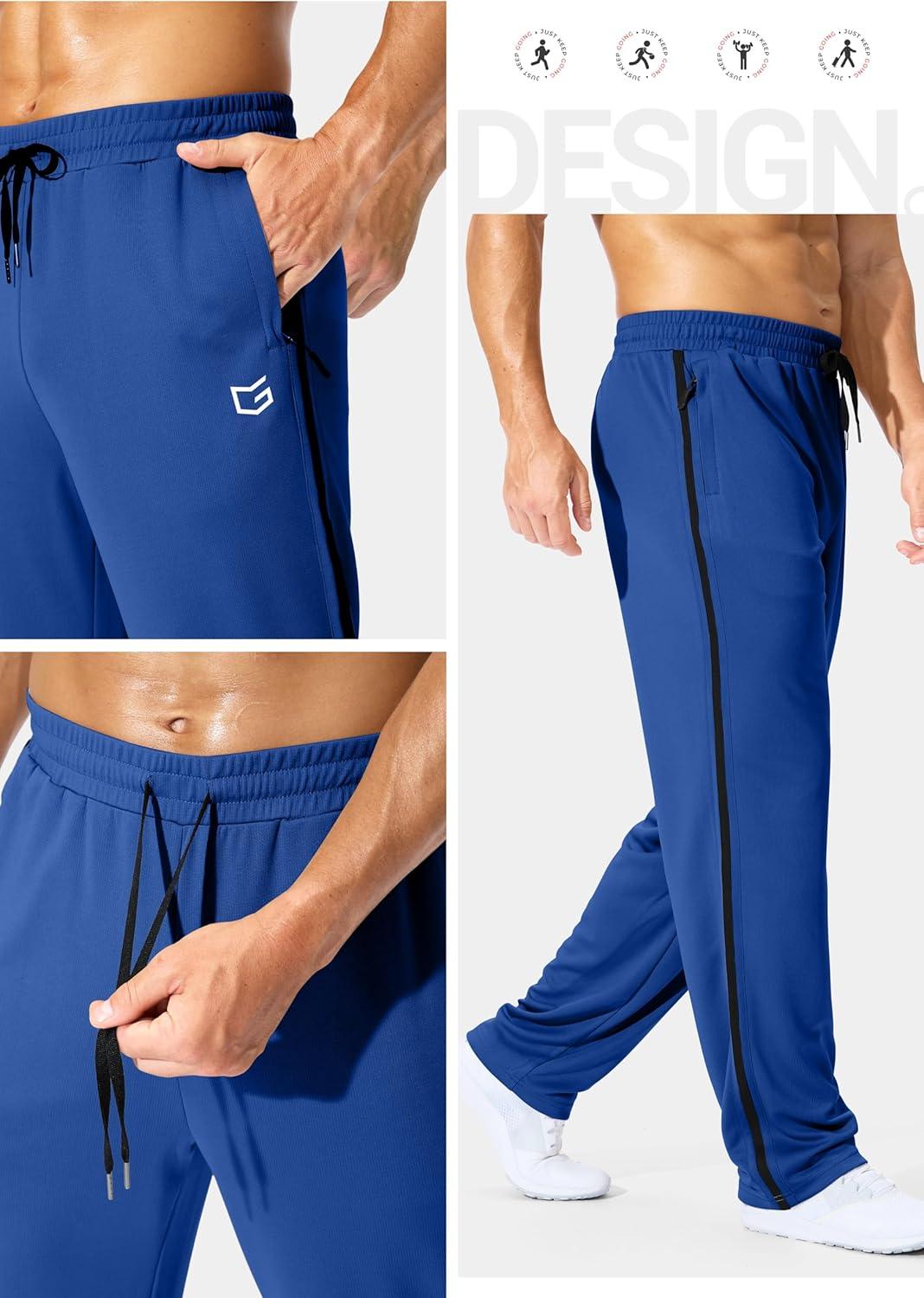 G Gradual Men's Athletic Sweatpants with Zipper Pockets Lightweight Quick Dry Mesh Workout Pants Open Bottom for Casual(Dark Blue)