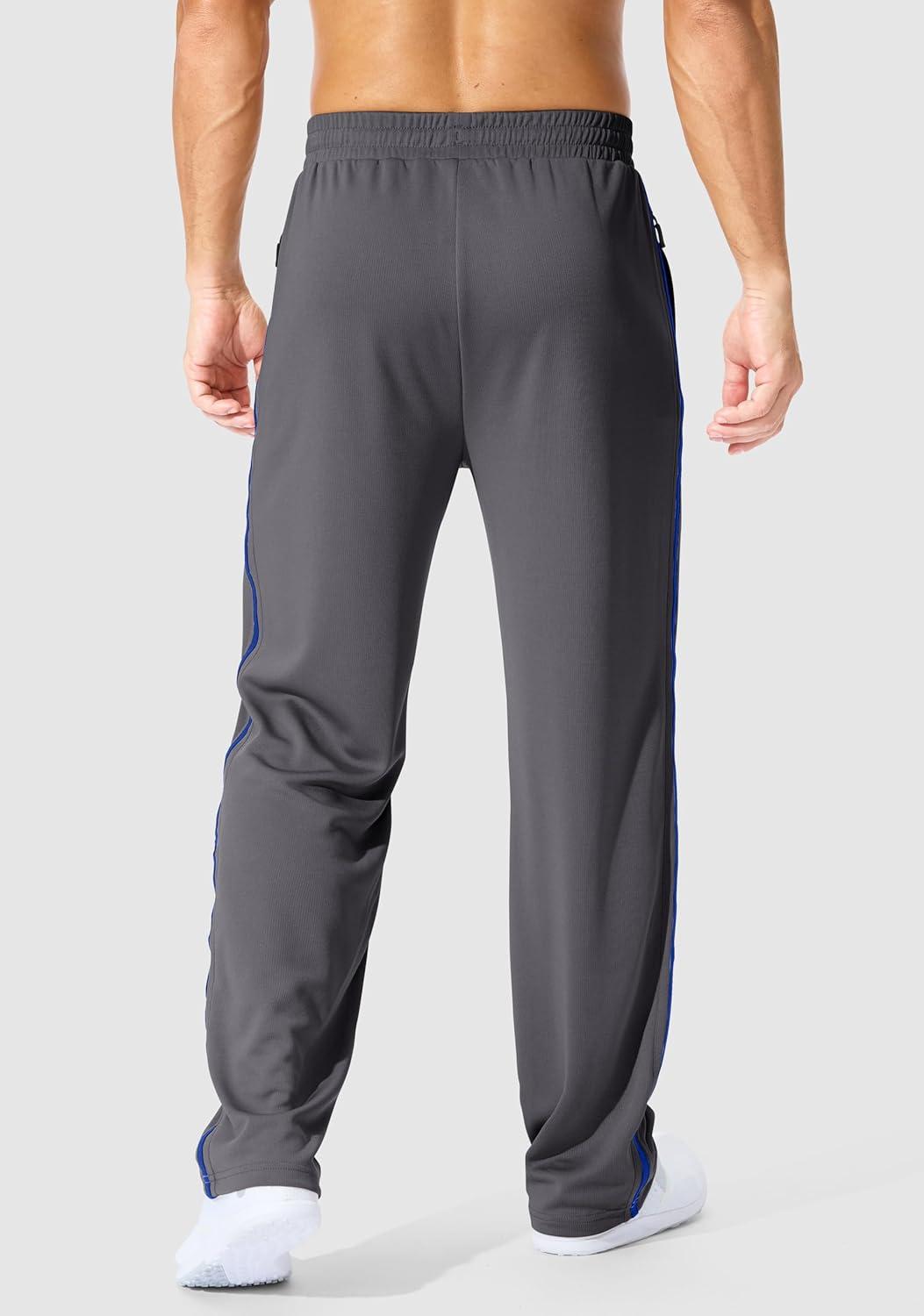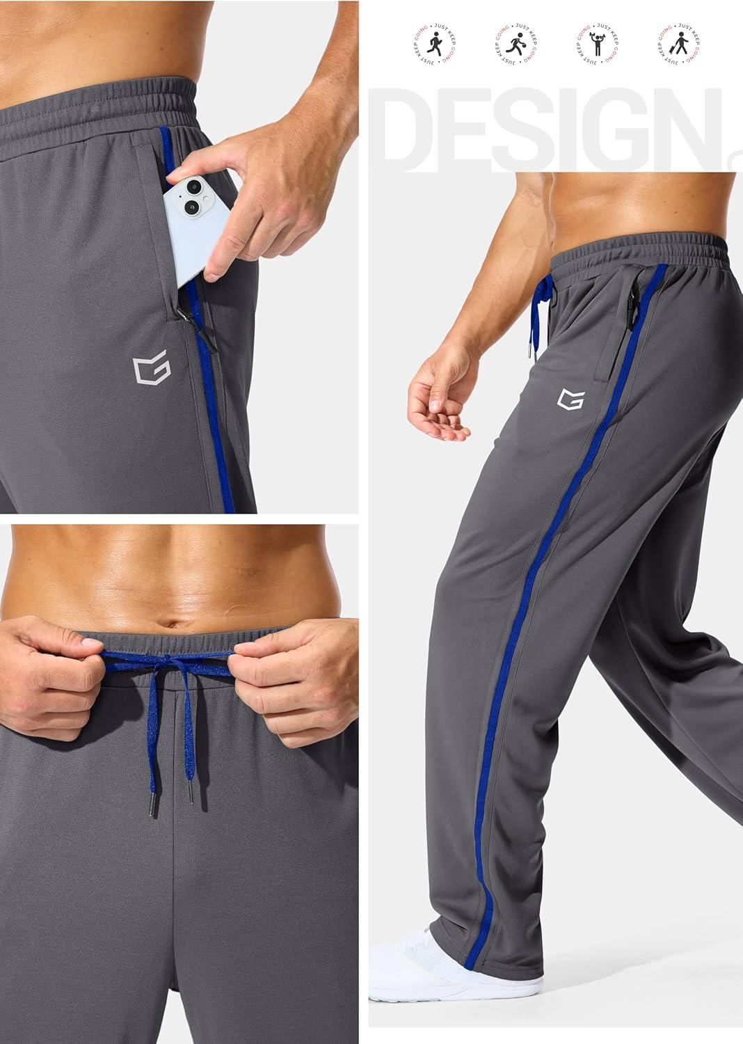 G Gradual Men's Athletic Sweatpants with Zipper Pockets Lightweight Quick Dry Mesh Workout Pants Open Bottom for Casual(Gray)