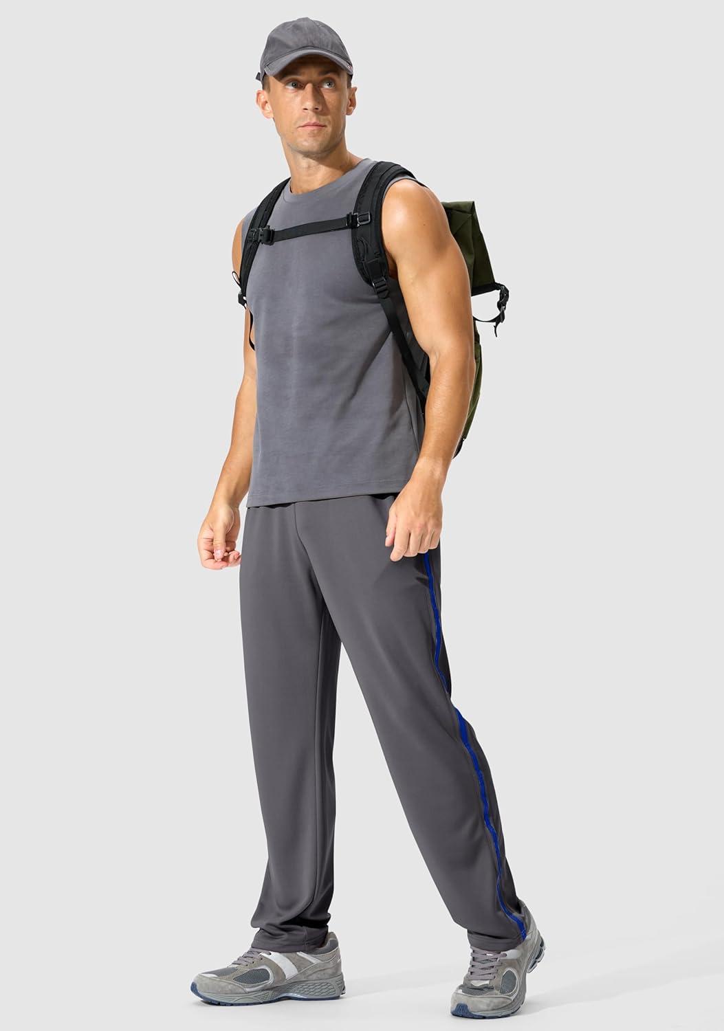 G Gradual Men’s Athletic Sweatpants with Zipper Pockets Lightweight Quick Dry Mesh Workout Pants Open Bottom for Casual(Gray)
