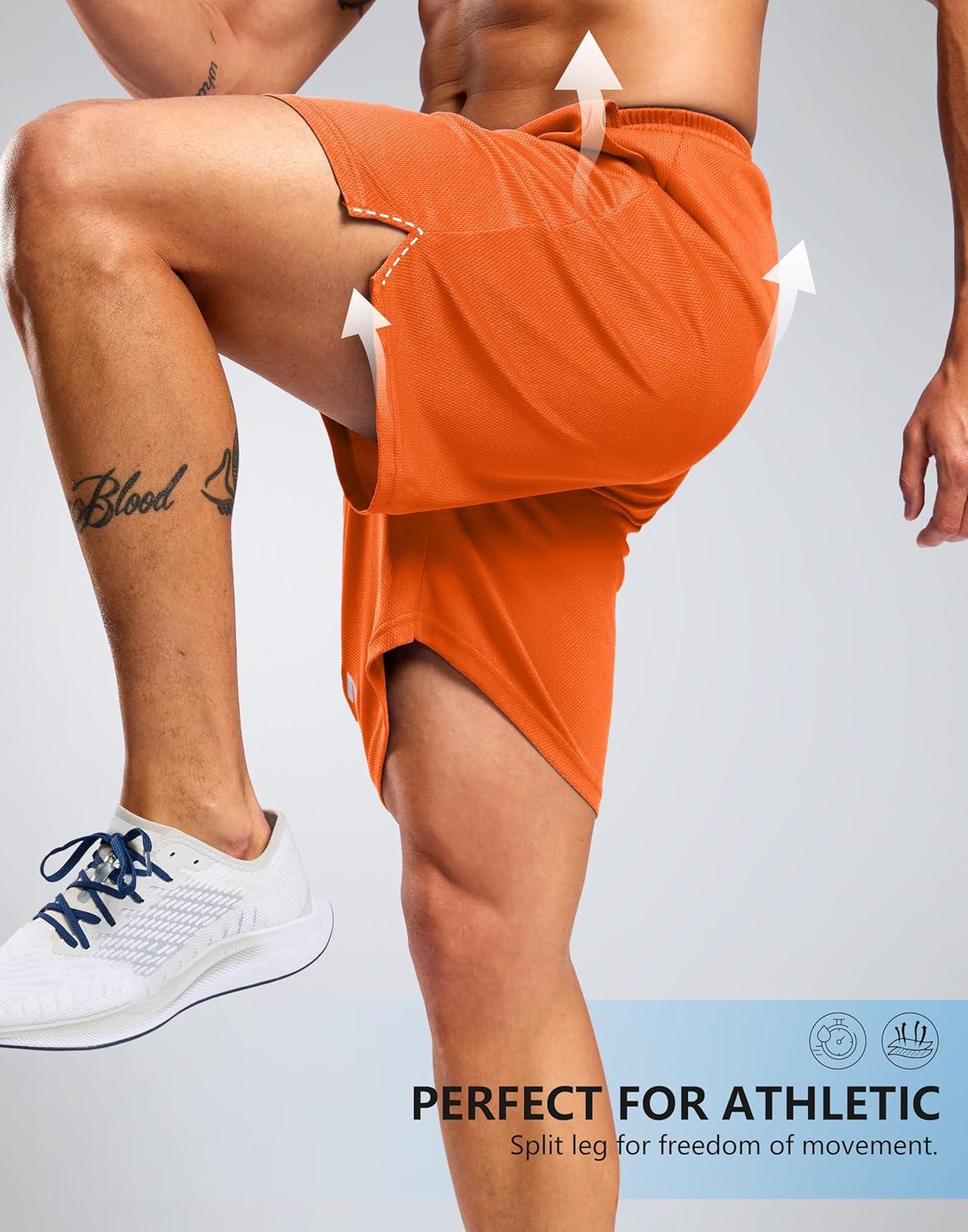 G Gradual Men's Athletic Workout Shorts with Pockets 5"/7"/9" Lightweight Quick Dry Gym Basketball Running Shorts for Men(Orange)