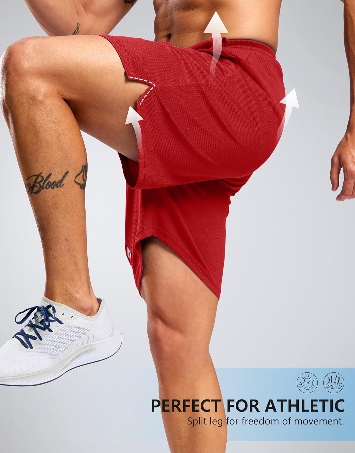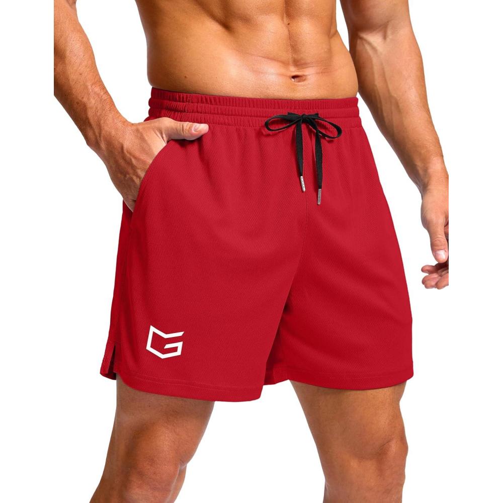 G Gradual Men’s Athletic Workout Shorts with Pockets 5″/7″/9″ Lightweight Quick Dry Gym Basketball Running Shorts for Men(Red)