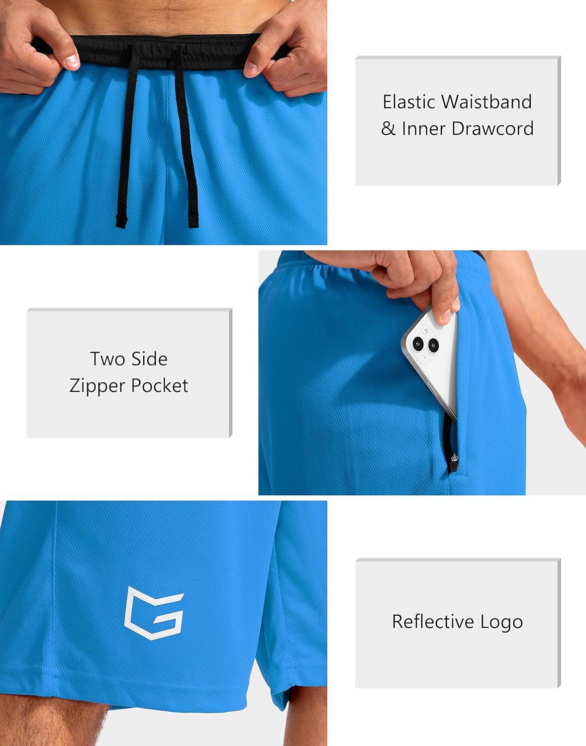 G Gradual Men’s Basketball Shorts with Zipper Pockets Lightweight Quick Dry 11″ Long Shorts for Men Athletic Gym(Blue)