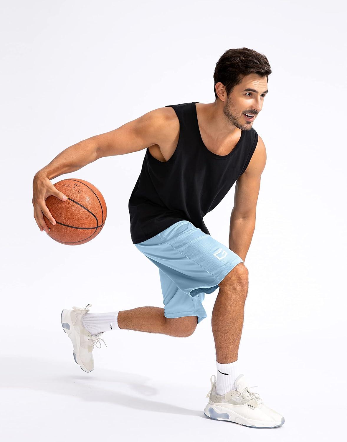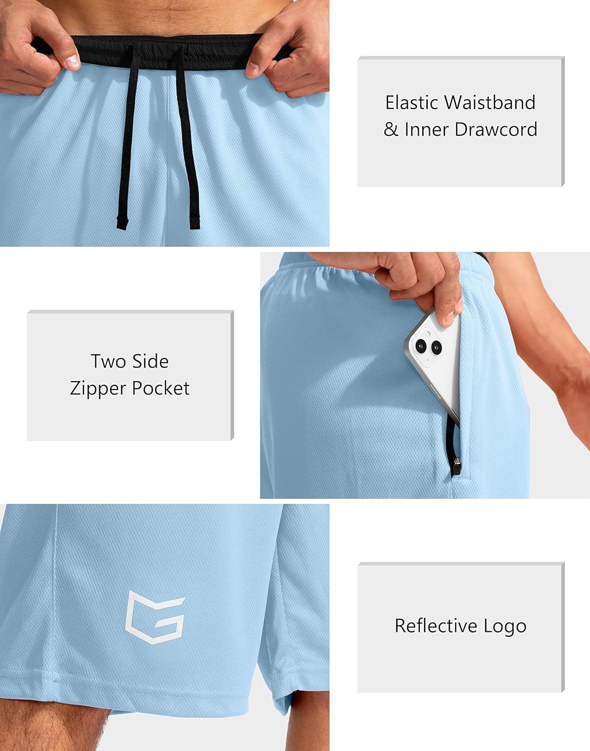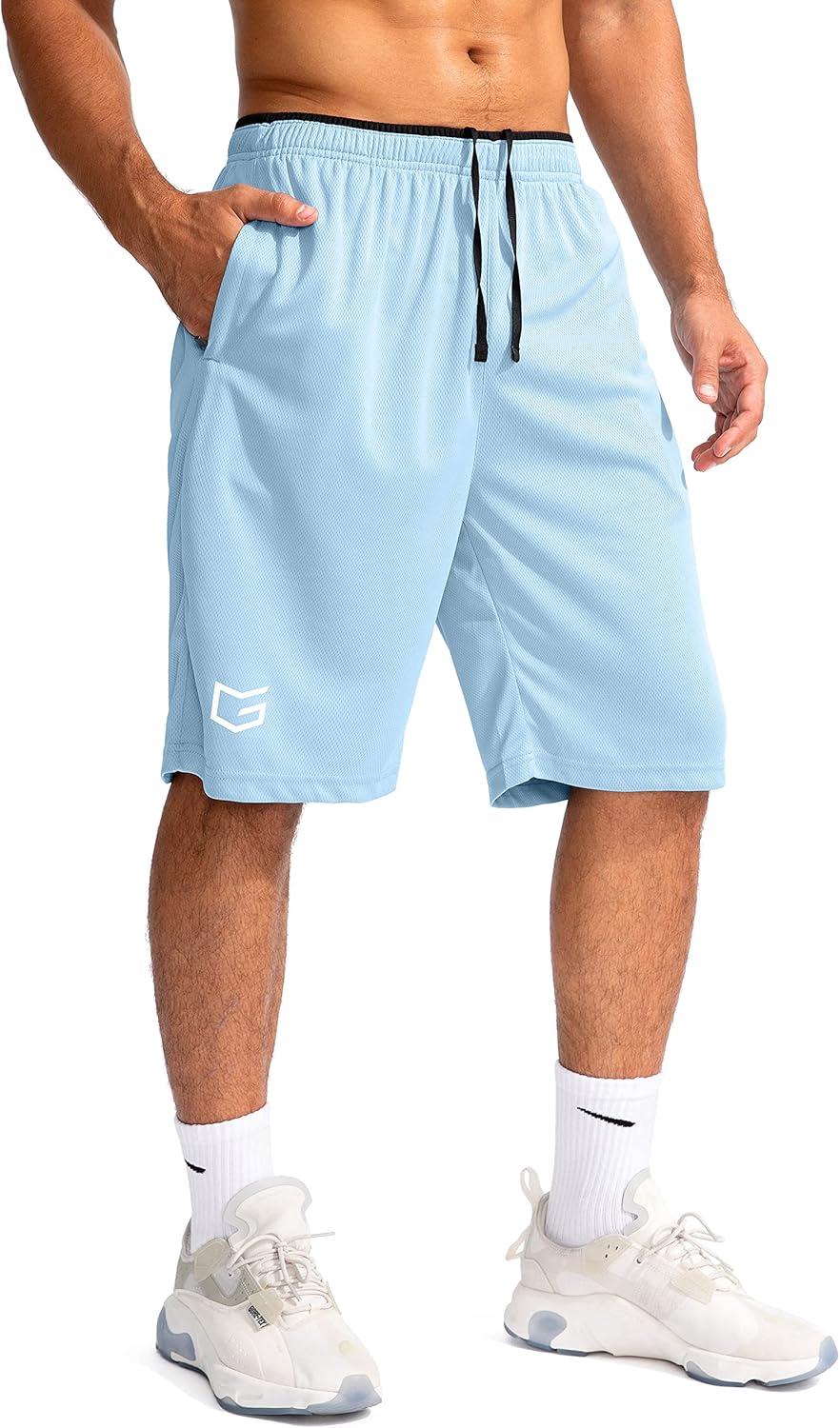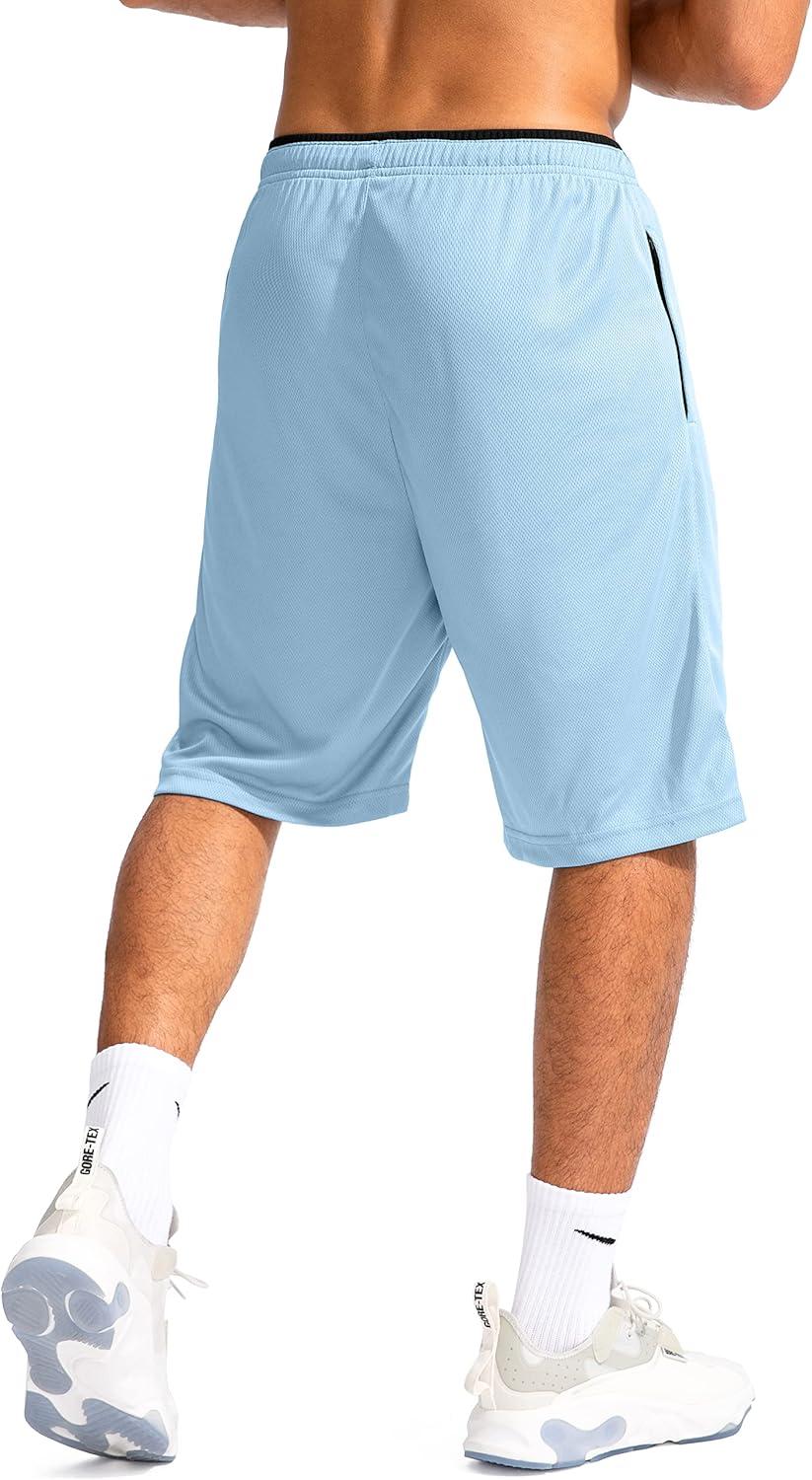 G Gradual Men’s Basketball Shorts with Zipper Pockets Lightweight Quick Dry 11″ Long Shorts for Men Athletic Gym(Light Blue)