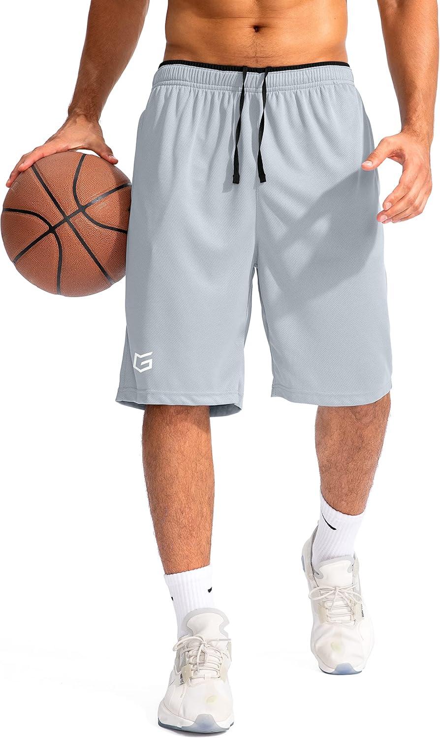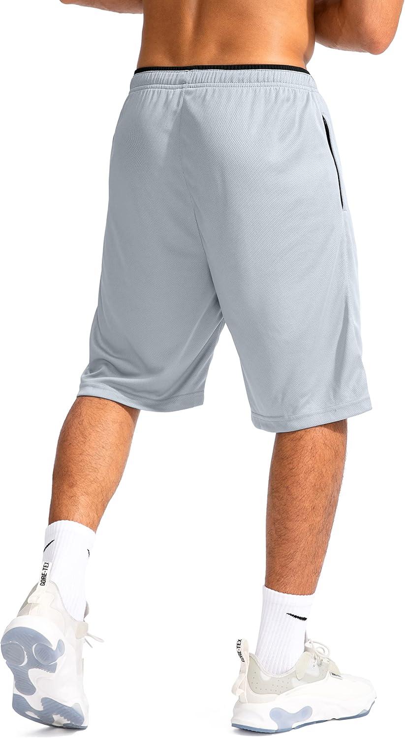G Gradual Men’s Basketball Shorts with Zipper Pockets Lightweight Quick Dry 11″ Long Shorts for Men Athletic Gym(Light Gray)