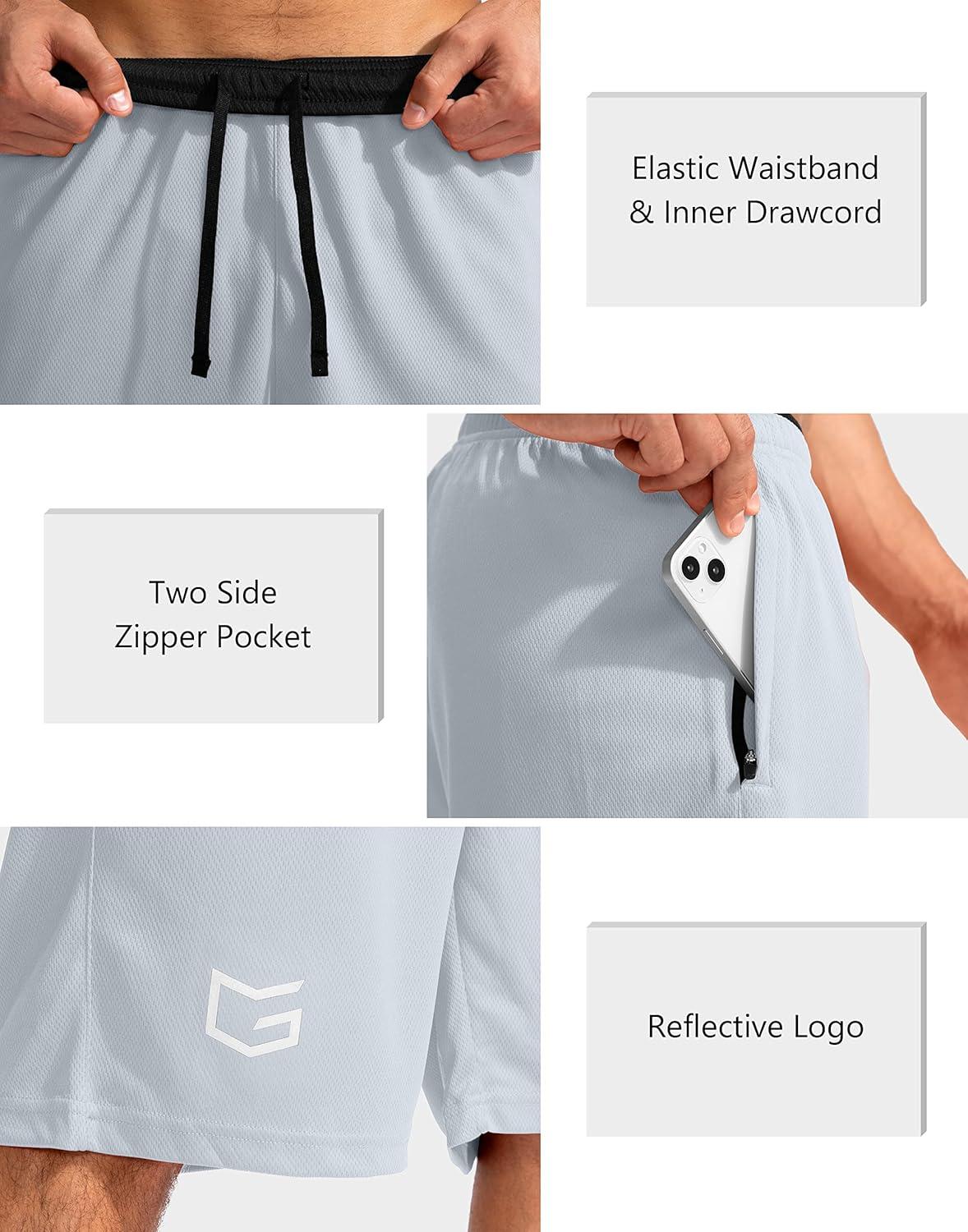 G Gradual Men’s Basketball Shorts with Zipper Pockets Lightweight Quick Dry 11″ Long Shorts for Men Athletic Gym(Light Blue)