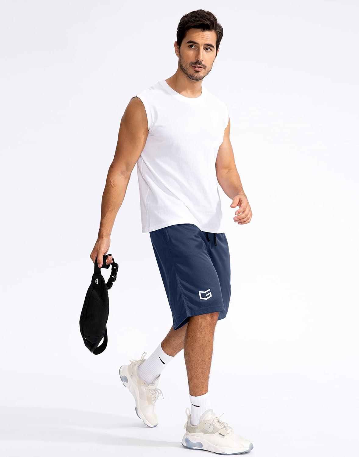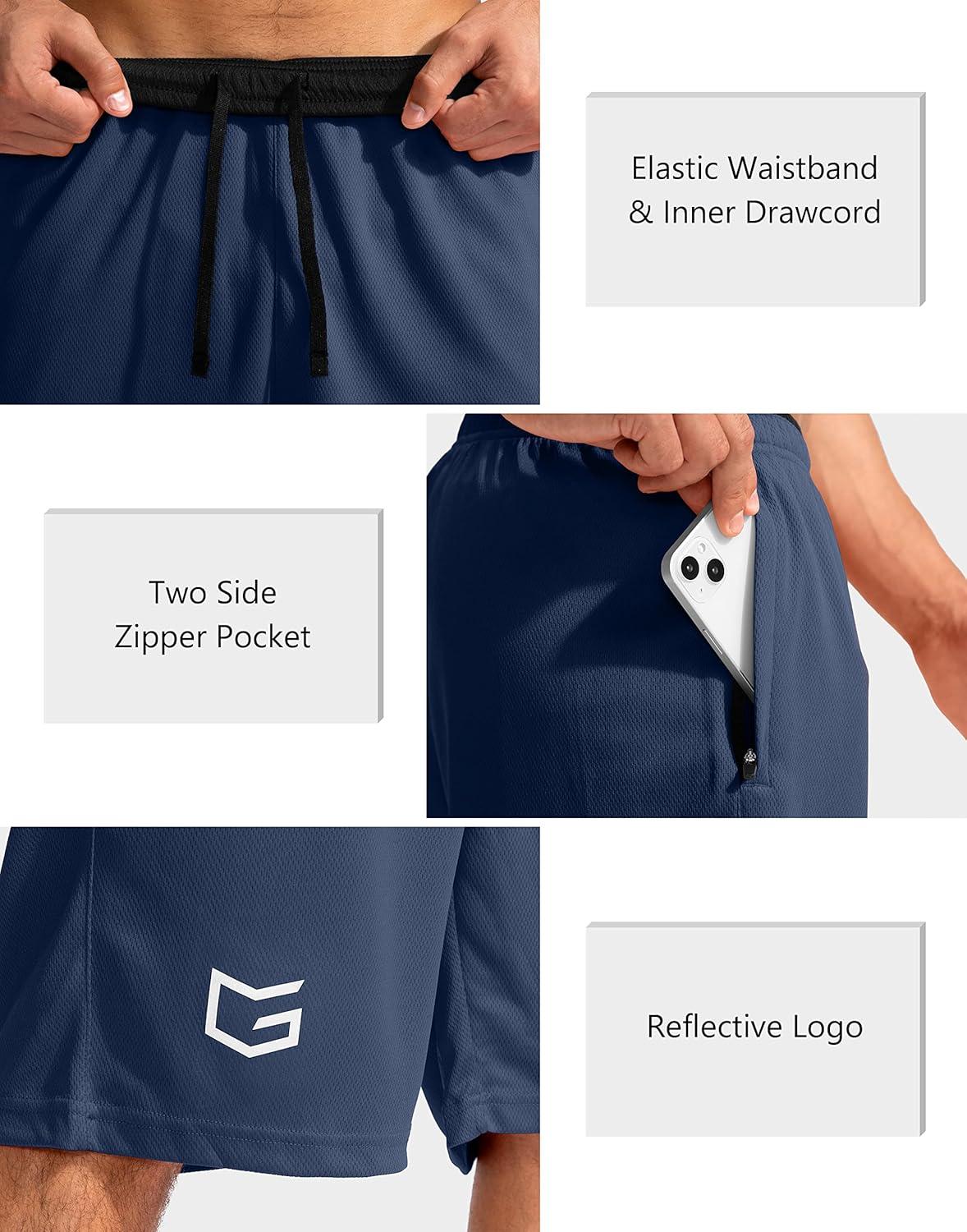 G Gradual Men’s Basketball Shorts with Zipper Pockets Lightweight Quick Dry 11″ Long Shorts for Men Athletic Gym(Navy)
