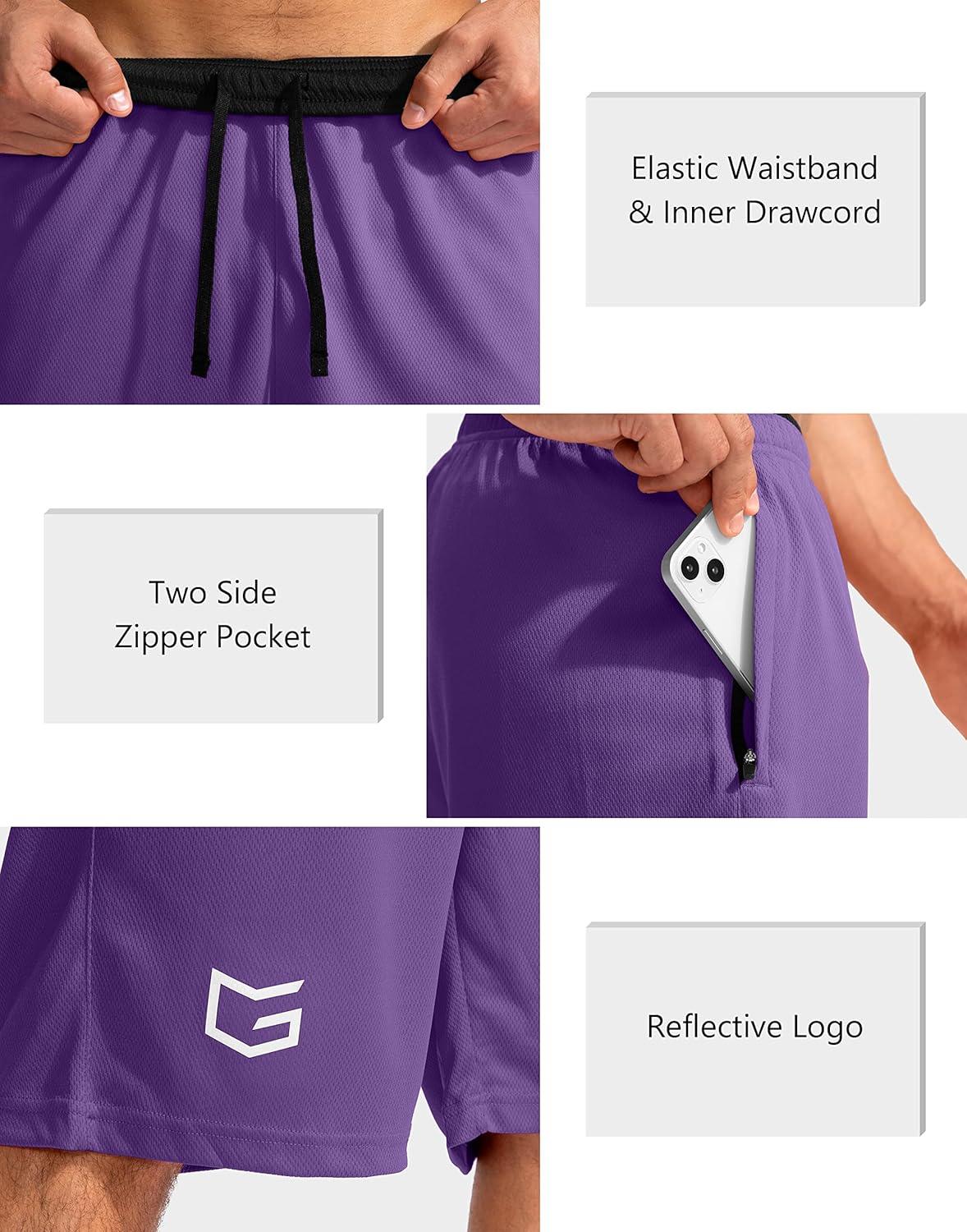 G Gradual Men’s Basketball Shorts with Zipper Pockets Lightweight Quick Dry 11″ Long Shorts for Men Athletic Gym(Purple)