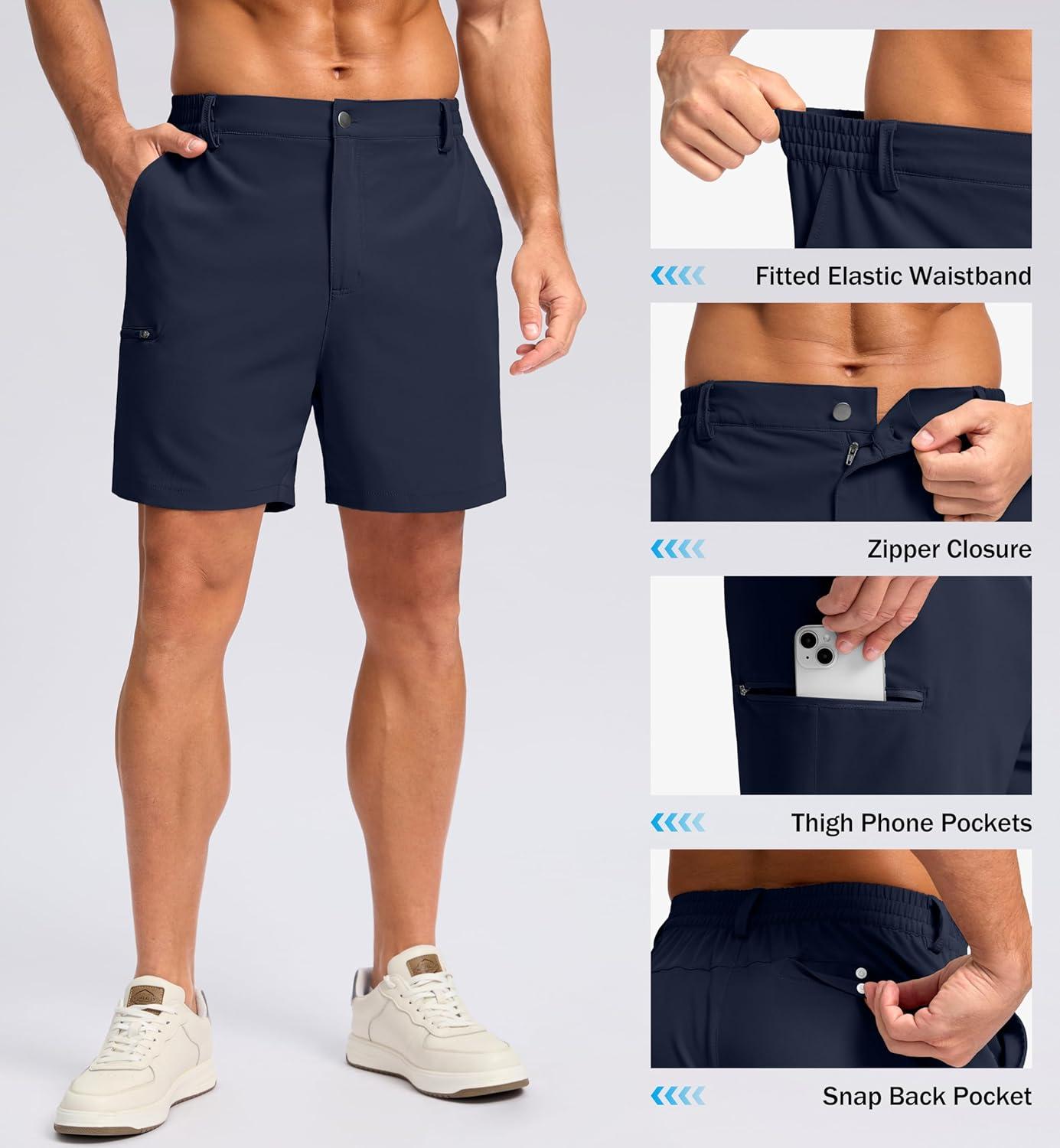 G Gradual Men’s Casual Shorts 7″/ 9″/ 5″ Lightweight 4 Pockets Stretch Quick-Dry Summer Shorts for Golf Work Hiking Trips(Navy)
