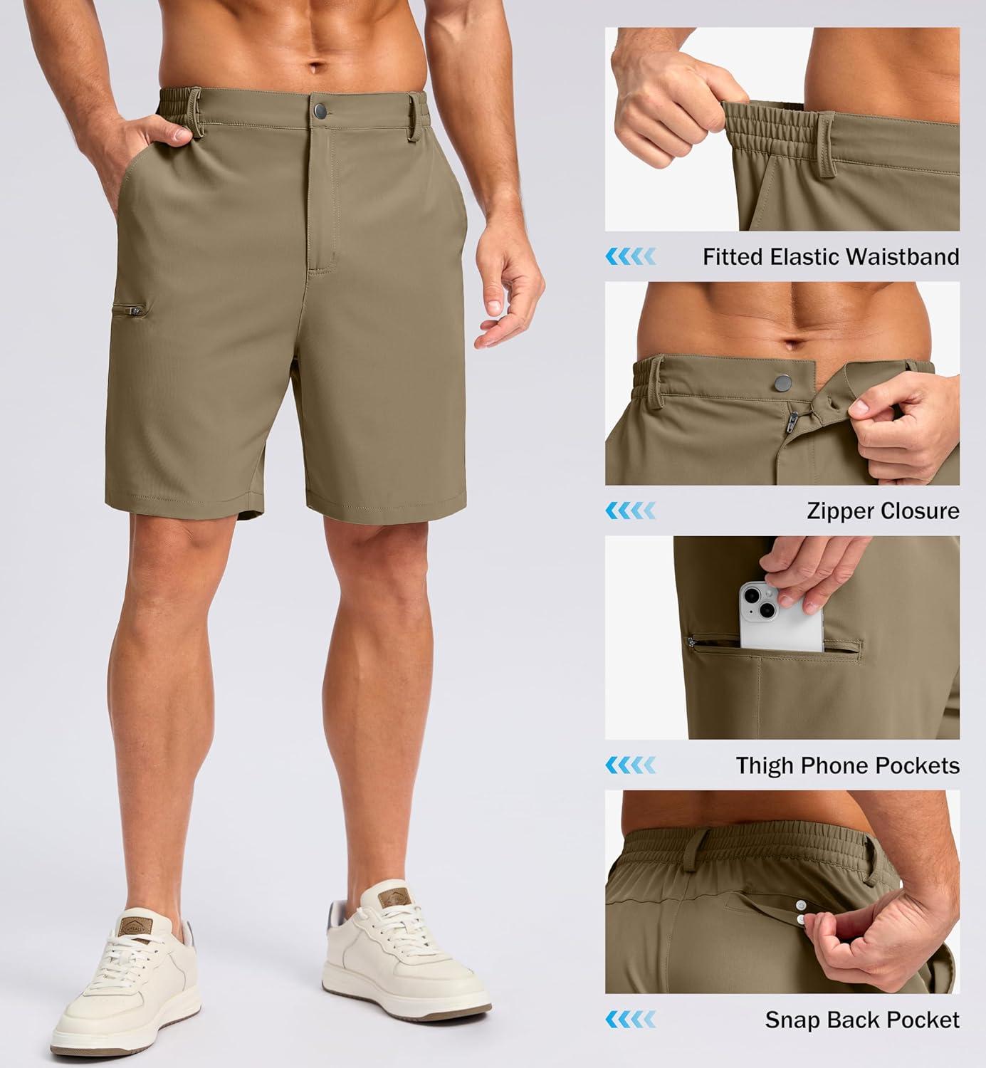 G Gradual Men’s Casual Shorts 7″/ 9″ Lightweight 4 Pockets Stretch Quick-Dry Summer Shorts for Golf Work Hiking Trips(Medium Khaki)