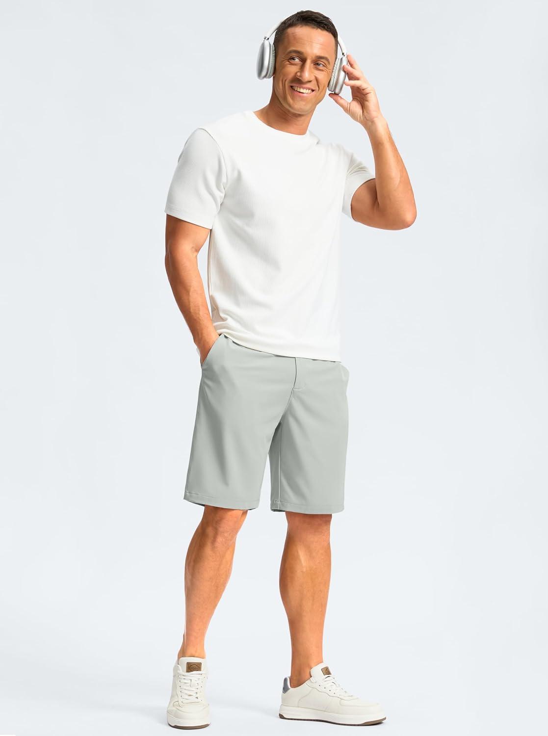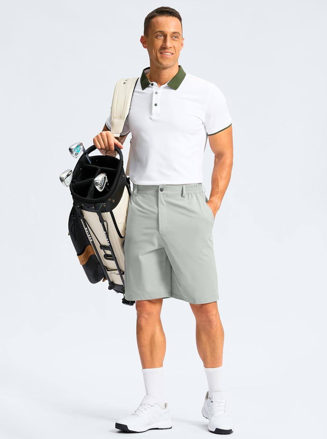 G Gradual Men's Casual Shorts 9" Lightweight Golf Shorts for Men Stretch with 3 Pockets Quick Dry Breathable Work Shorts(Bright Gray)