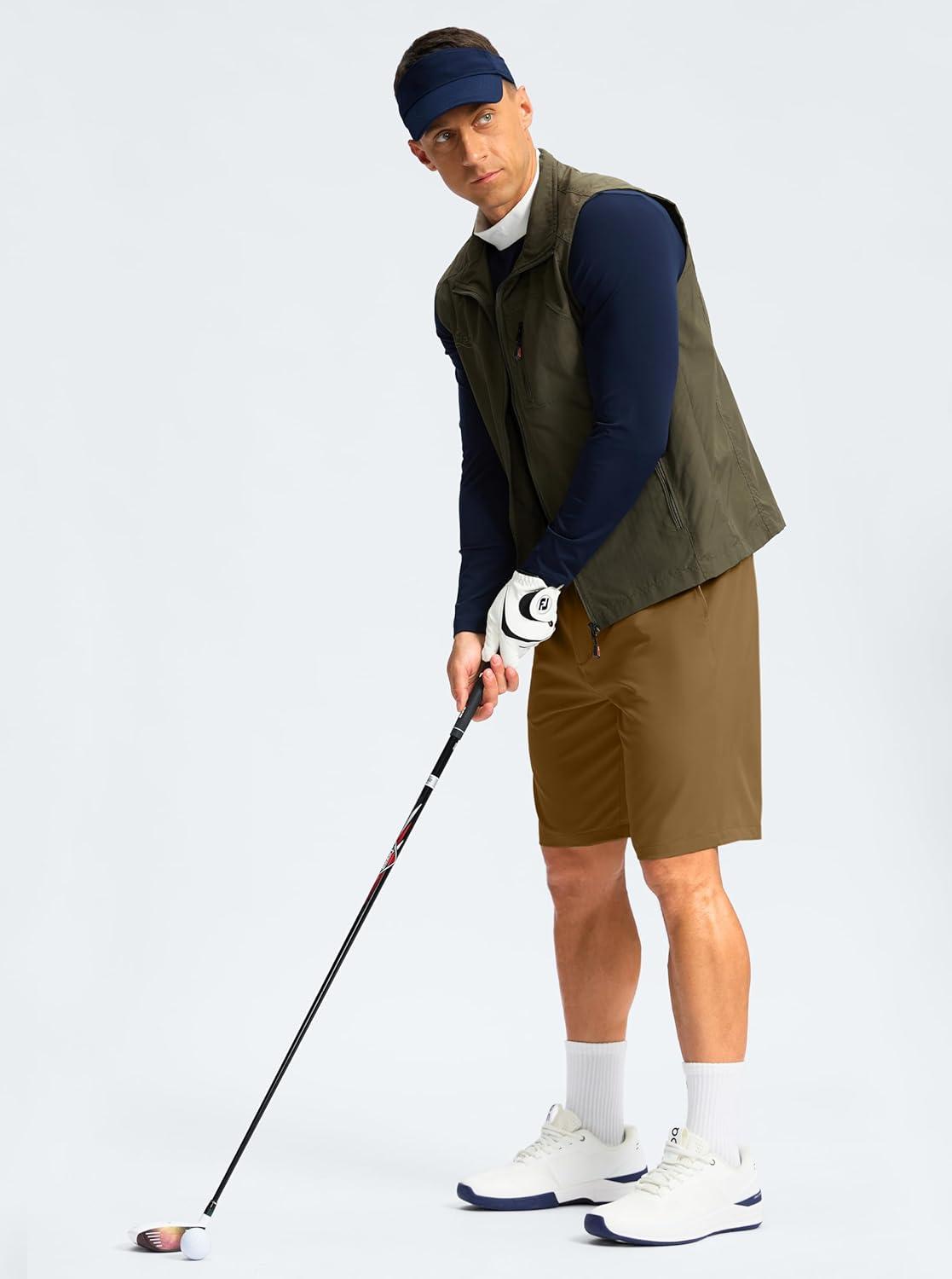 G Gradual Men’s Casual Shorts 9″ Lightweight Golf Shorts for Men Stretch with 3 Pockets Quick Dry Breathable Work Shorts(Dark Khaki)