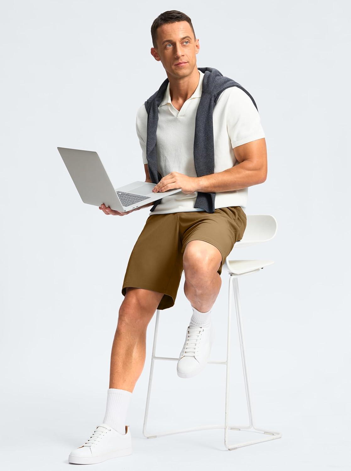 G Gradual Men's Casual Shorts 9" Lightweight Golf Shorts for Men Stretch with 3 Pockets Quick Dry Breathable Work Shorts(Brown)