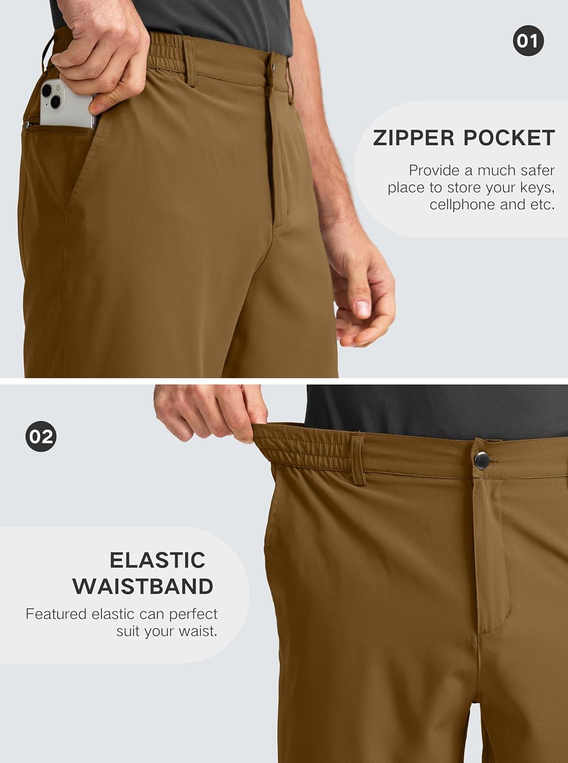 G Gradual Men’s Casual Shorts 9″ Lightweight Golf Shorts for Men Stretch with 3 Pockets Quick Dry Breathable Work Shorts(Brown)