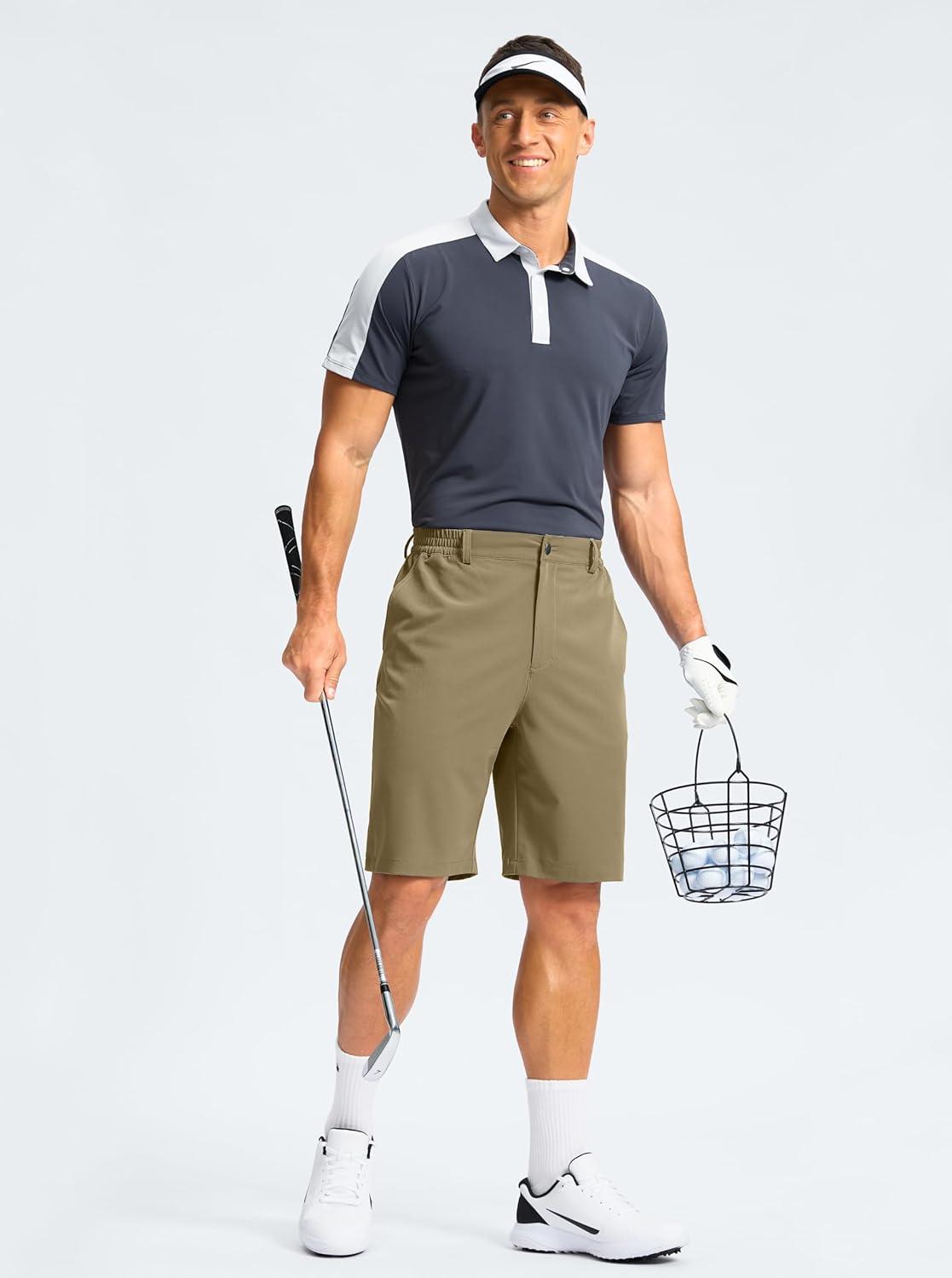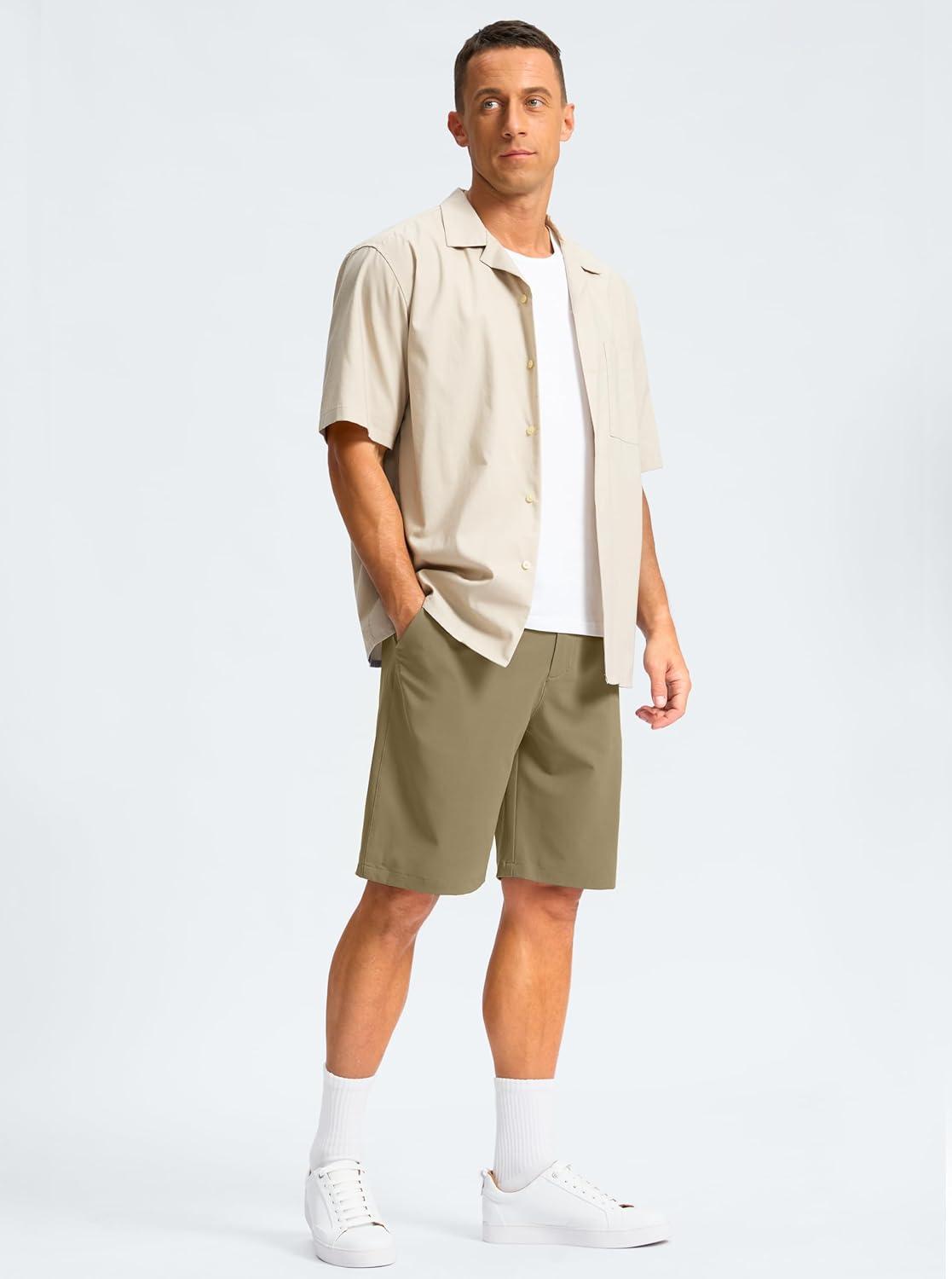 G Gradual Men's Casual Shorts 9" Lightweight Golf Shorts for Men Stretch with 3 Pockets Quick Dry Breathable Work Shorts(Dusty Khaki)