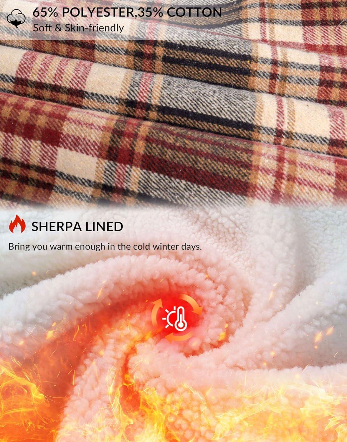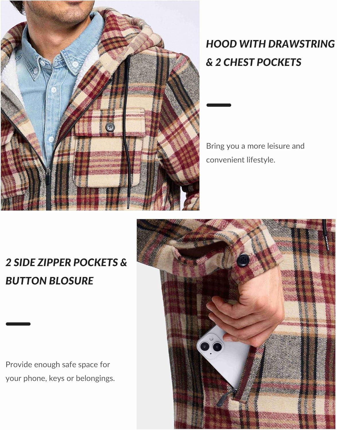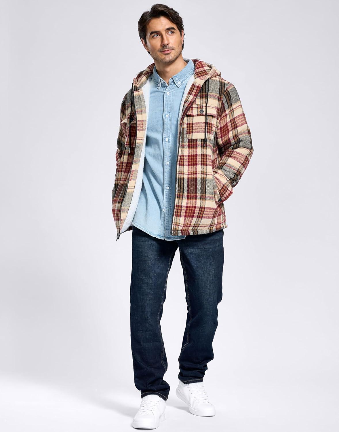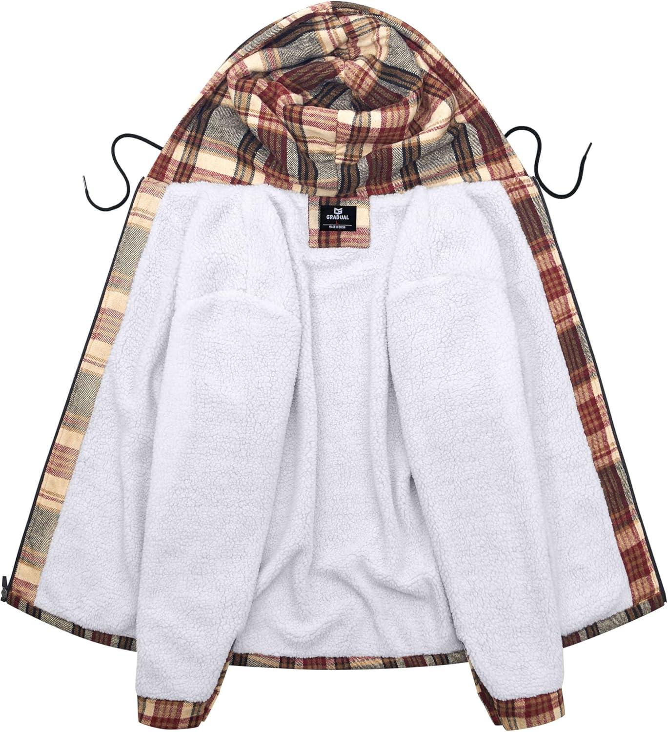 G Gradual Men’s Flannel Jacket Fleece Sherpa Lined Hoodies Zip Up Plaid Shirt Warm Winter Jackets for Men with Zipper Pockets(Shale)