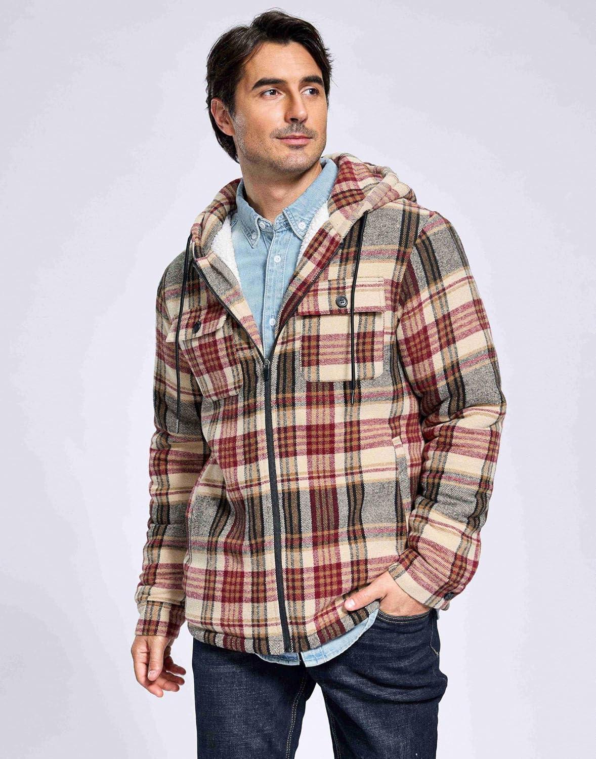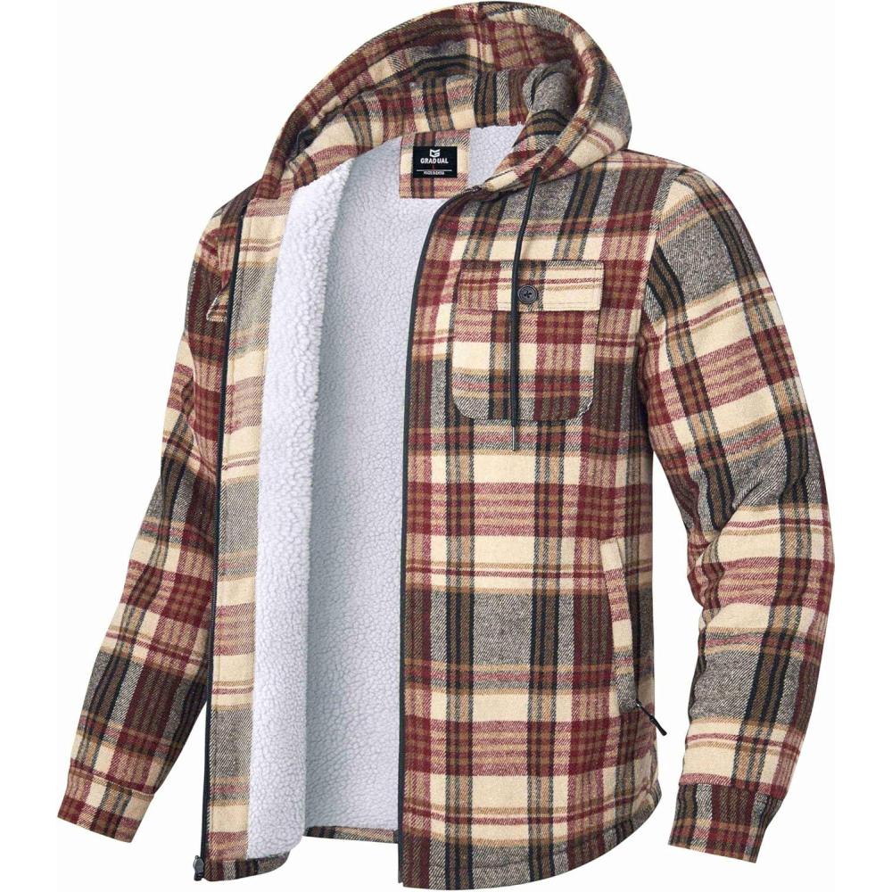 G Gradual Men's Flannel Jacket Fleece Sherpa Lined Hoodies Zip Up Plaid Shirt Warm Winter Jackets for Men with Zipper Pockets(Shale)