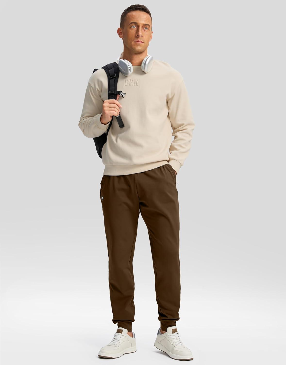 G Gradual Men's Fleece Joggers with Zipper Pockets Winter Warm Pants Water Resistant Athletic Workout Gym Sweatpants for Men(Brown)