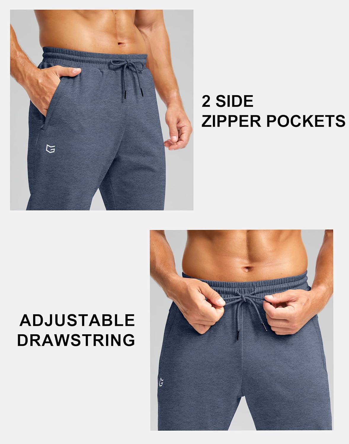 G Gradual Men’s Fleece Joggers with Zipper Pockets Winter Warm Pants Water Resistant Athletic Workout Gym Sweatpants for Men(Heather Dusty Blue)
