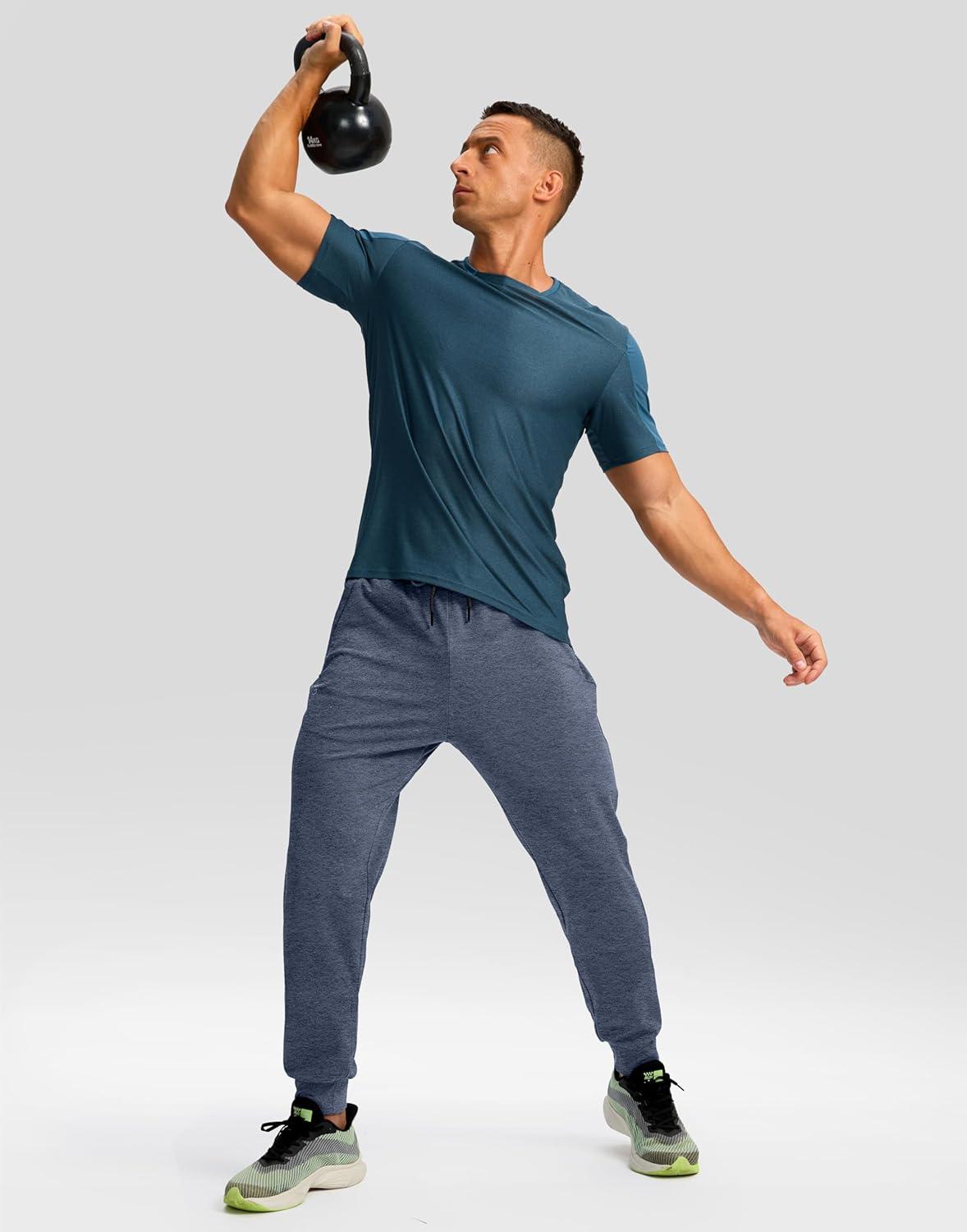 G Gradual Men's Fleece Joggers with Zipper Pockets Winter Warm Pants Water Resistant Athletic Workout Gym Sweatpants for Men(Heather Dusty Blue)