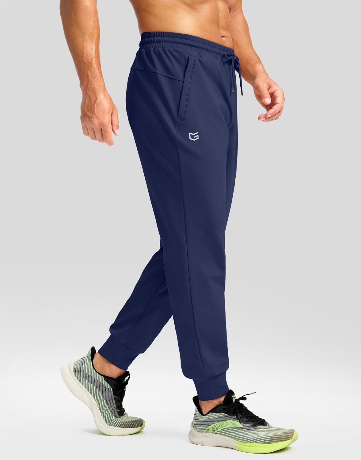 G Gradual Men’s Fleece Joggers with Zipper Pockets Winter Warm Pants Water Resistant Athletic Workout Gym Sweatpants for Men(Navy)