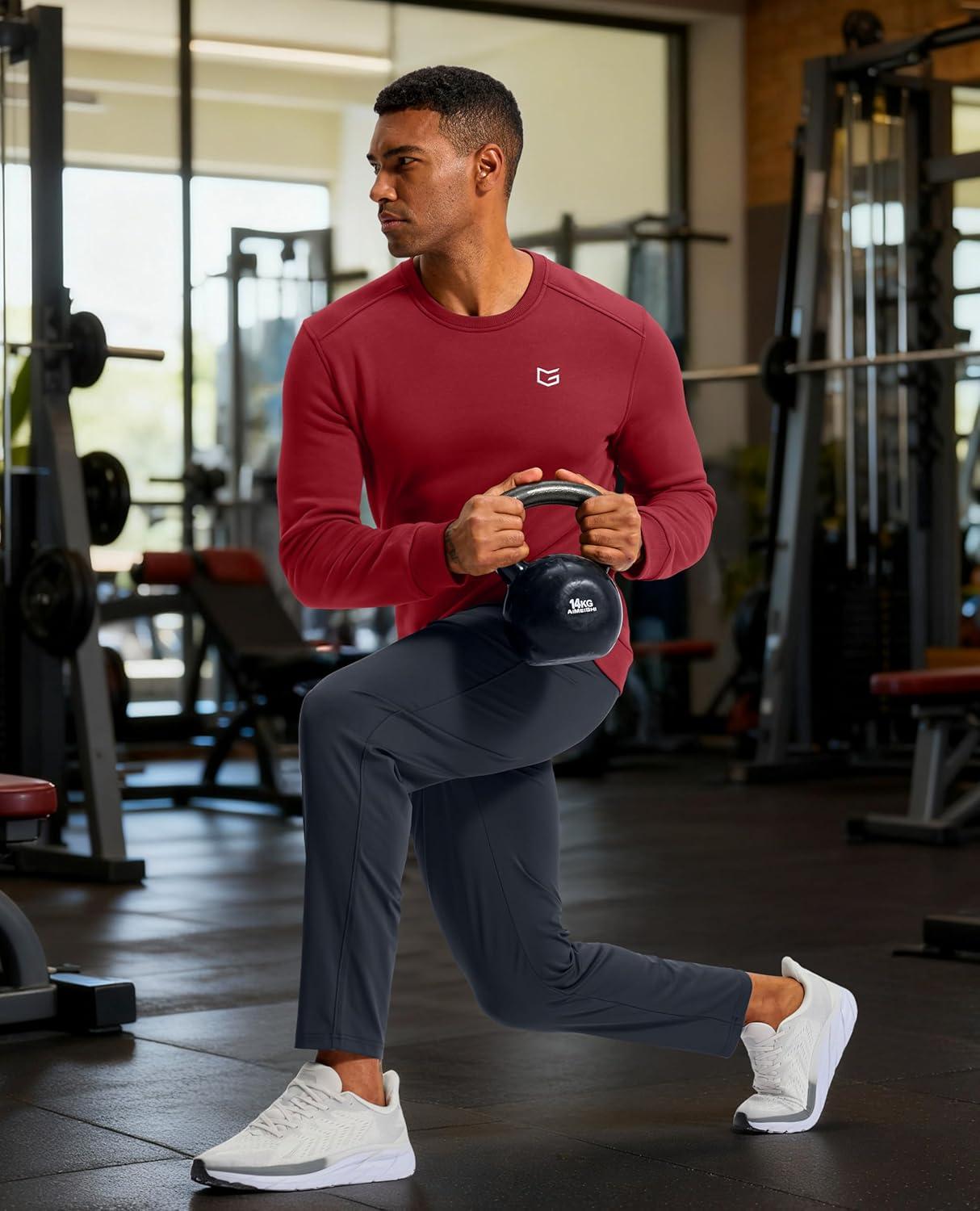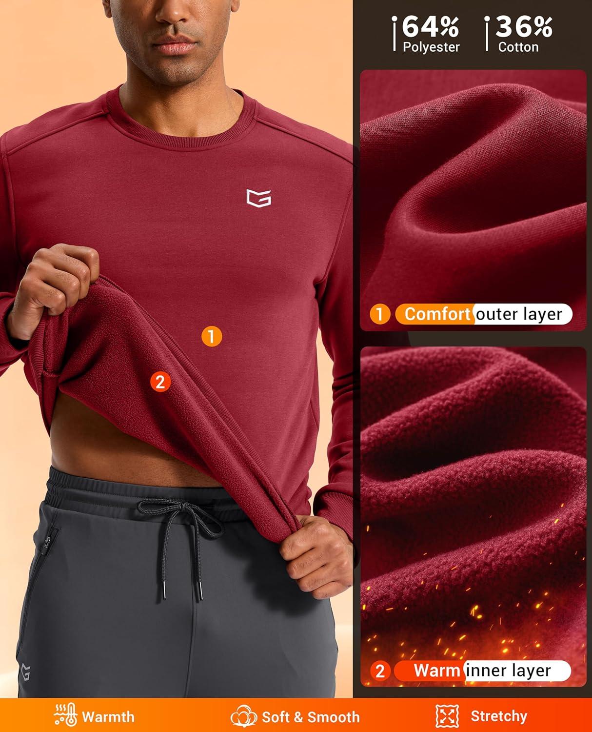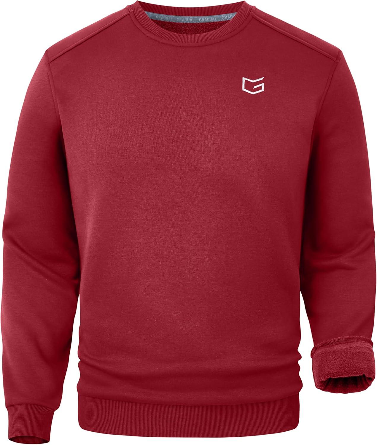 G Gradual Men’s Fleece Lined Crewneck Sweatshirt Midweight Regular Fit Athletic Workout Warm Pullover Sweater Shirts(Red)